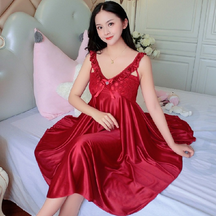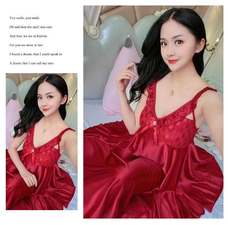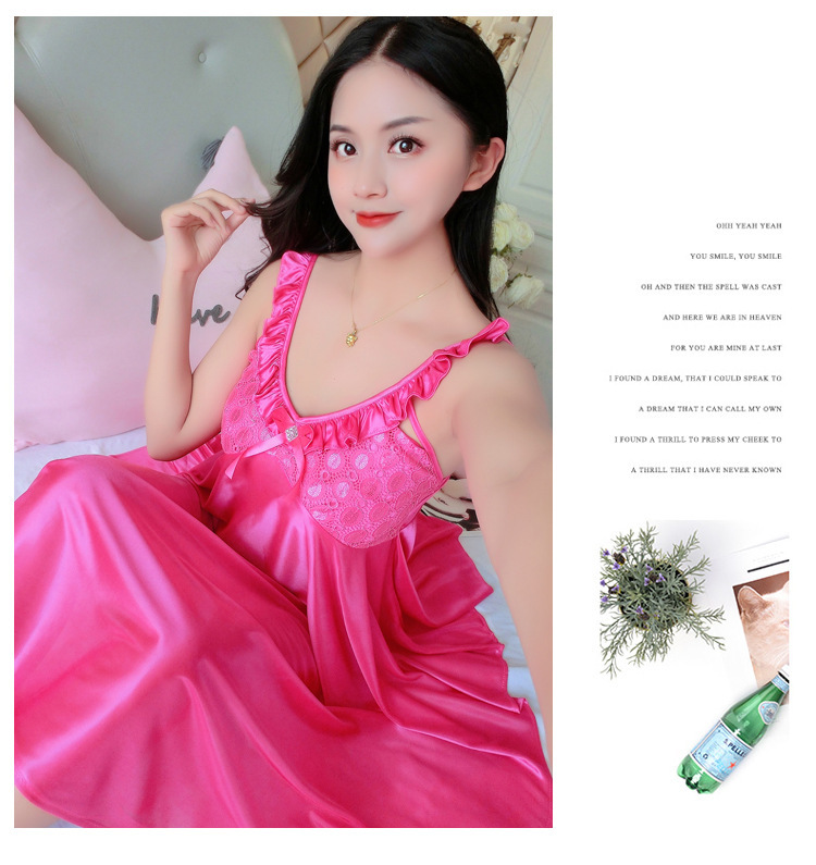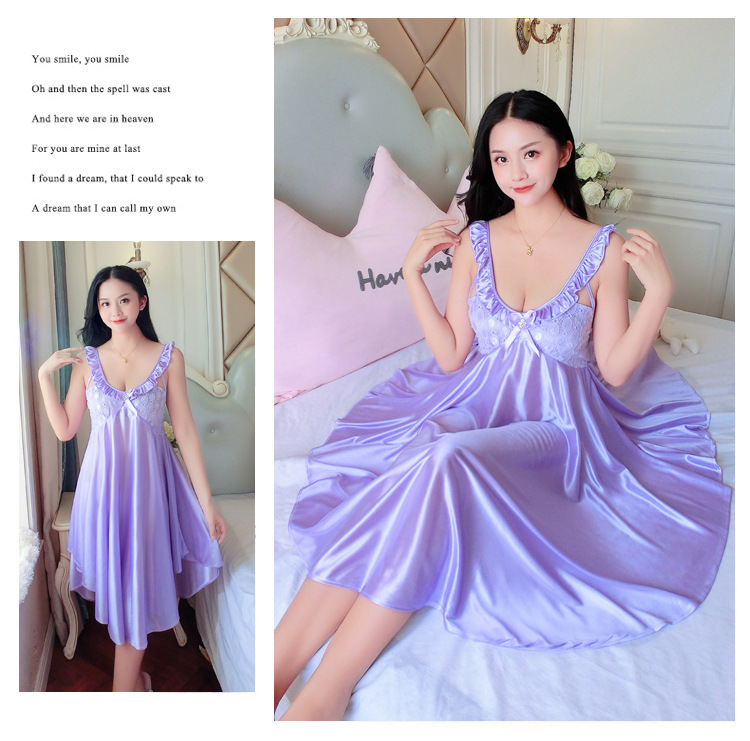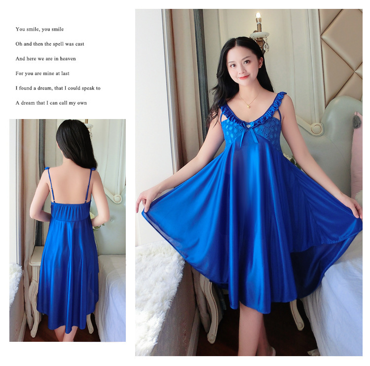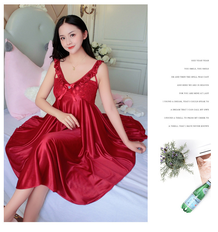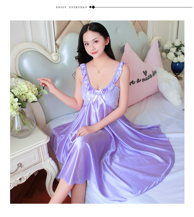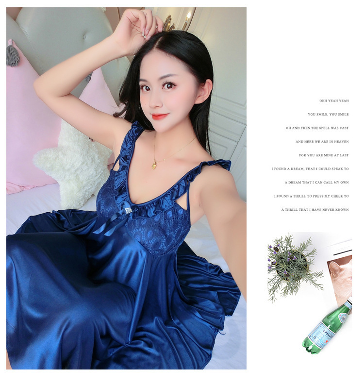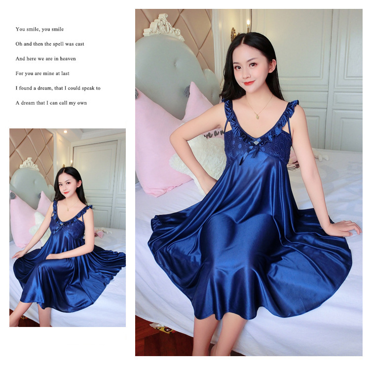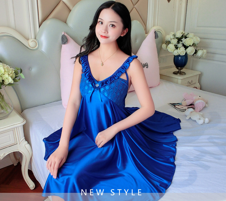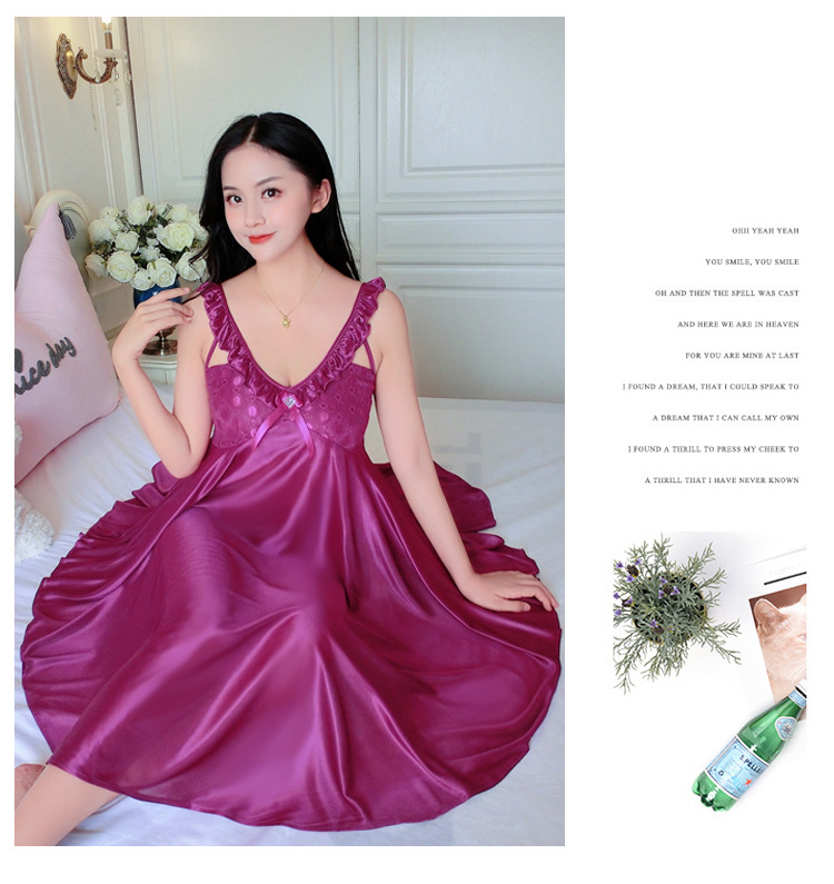 여름 여자의 잠옷 섹시한 V-넥 아이스 실크 슬링 잠옷 여자의 모조 실크 가정 옷 도매스토어 가기