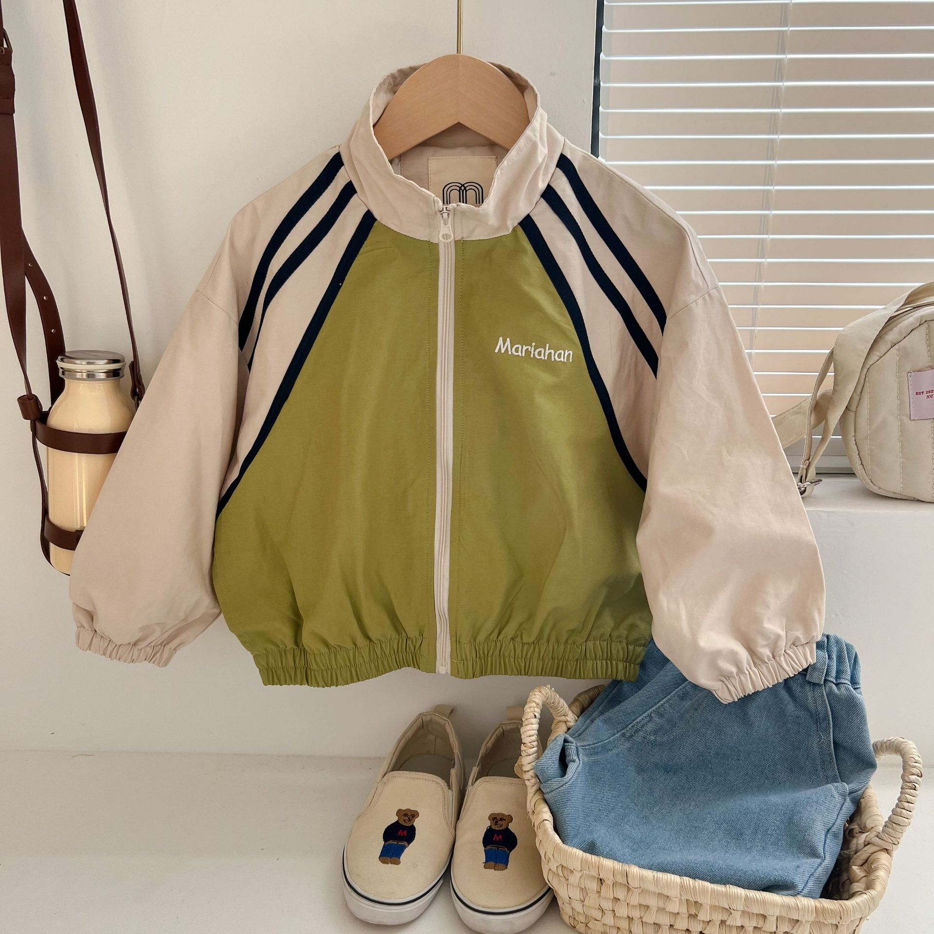 밀 필드 시즌 2023 봄 새로운 가을 한국 스타일 어린이 러쉬 의류 지퍼 코트 소년 소녀 컬러 블록 재킷스토어 가기