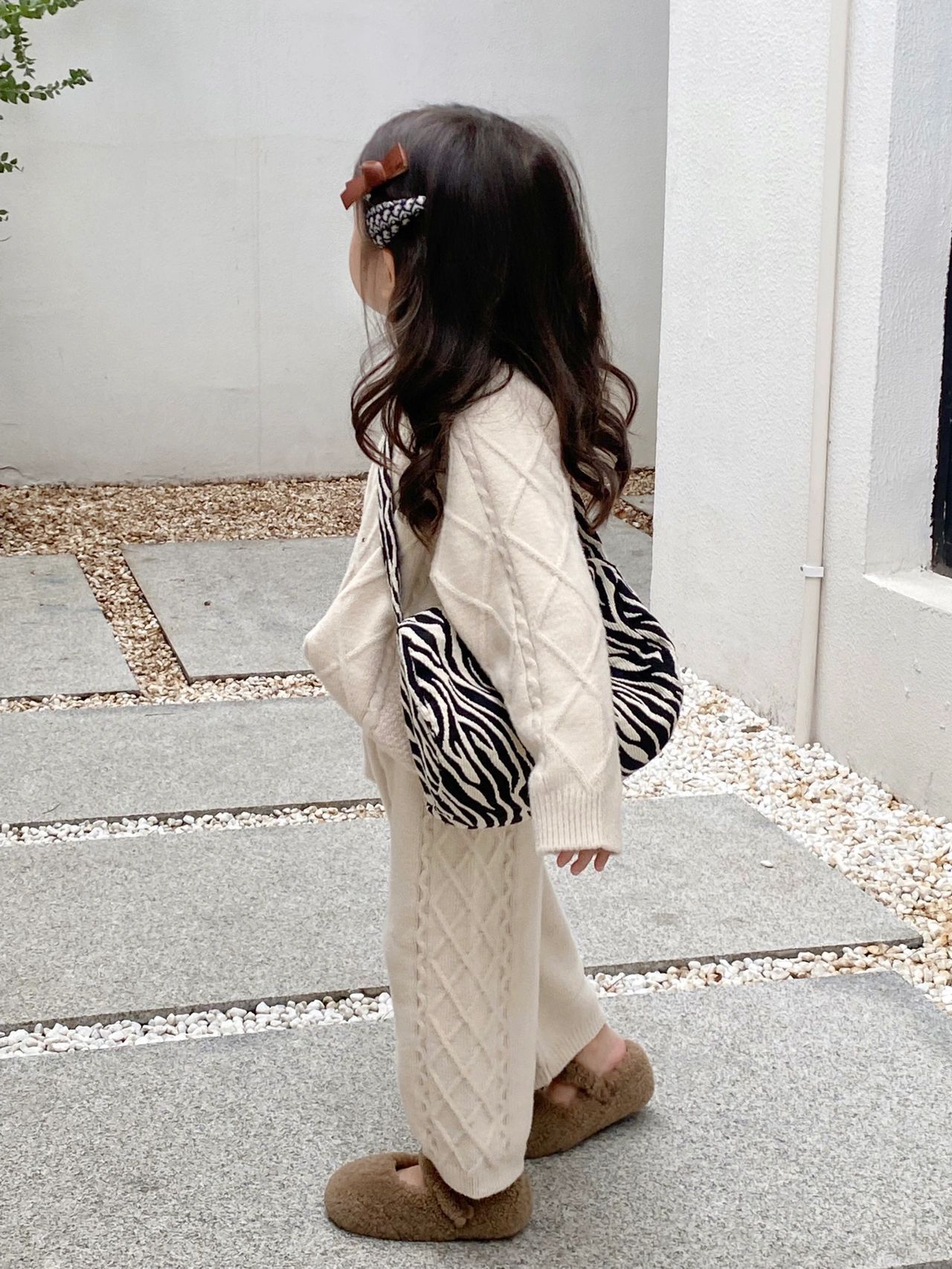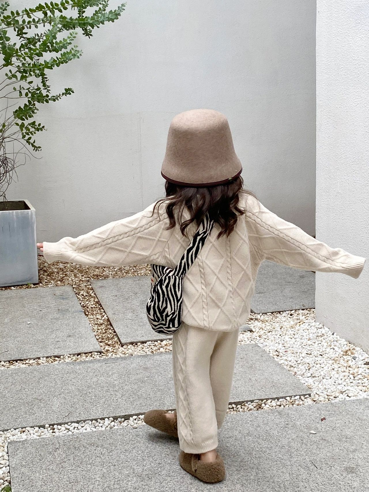 2023 봄과 가을 한국 스타일 소녀의 레트로 트위스트 울 니트 세트 아기 소녀의 스웨터와 바지 캐주얼 투피스 세트스토어 가기