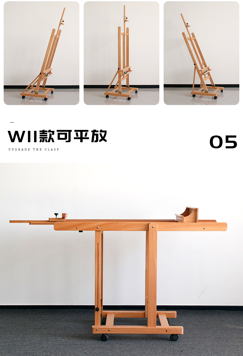 너도밤 나무 이젤 사다리꼴 텔레스코픽 조정 전방 틸팅 바닥 드로잉 보드 이젤 광고 디스플레이 스탠드 미술 학생을위한 전용