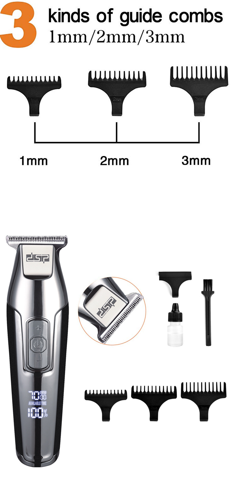 配件:一个适配器;一个USB充电线;3把梳套;一个毛刷;一个油瓶