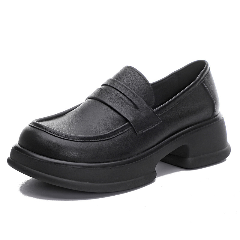 Ma Suism 2024 새로운 영국 스타일 작은 가죽 신발 두꺼운 두꺼운 밑바닥 로퍼 여성 최고 레이어 카우보이 싱글 레이어 신발 올매치스토어 가기