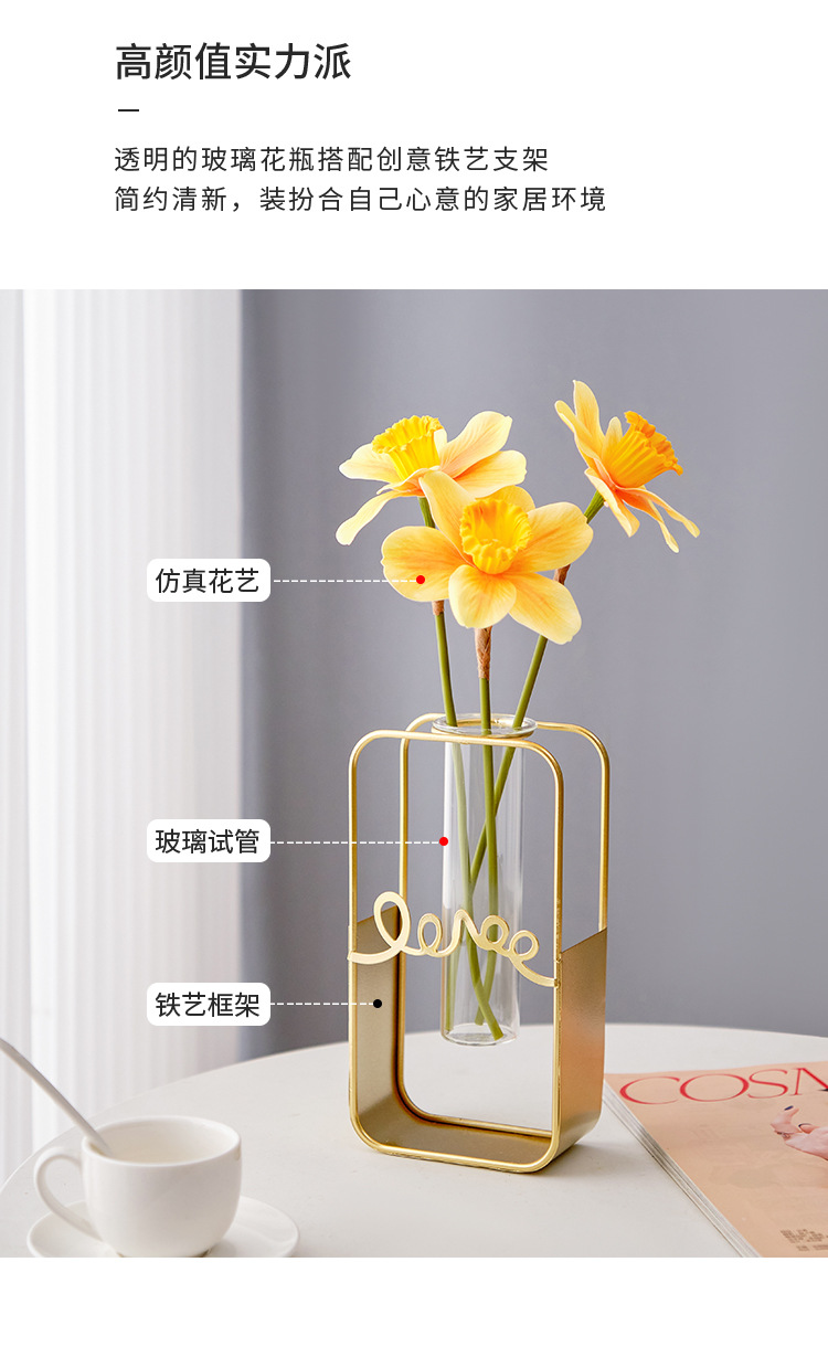 장식용 꽃병, 와인 캐비닛 꽃꽂이, 거실 테이블 장식, 철제 수제 수경재배 유럽 스타일