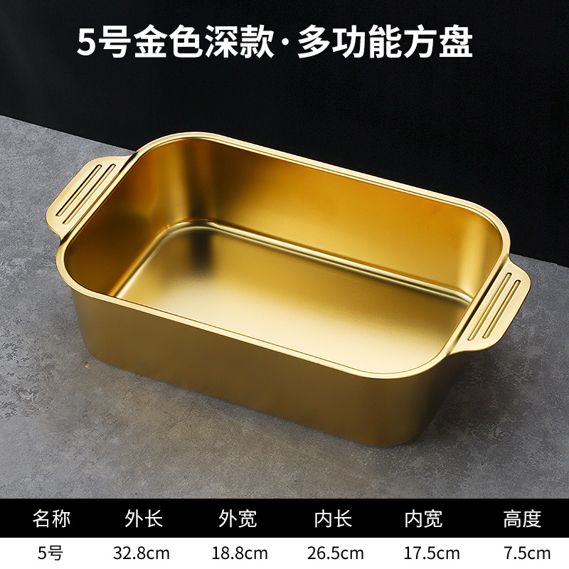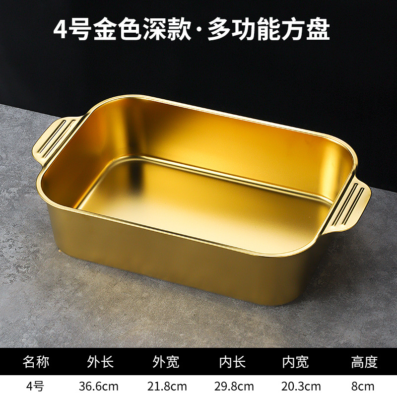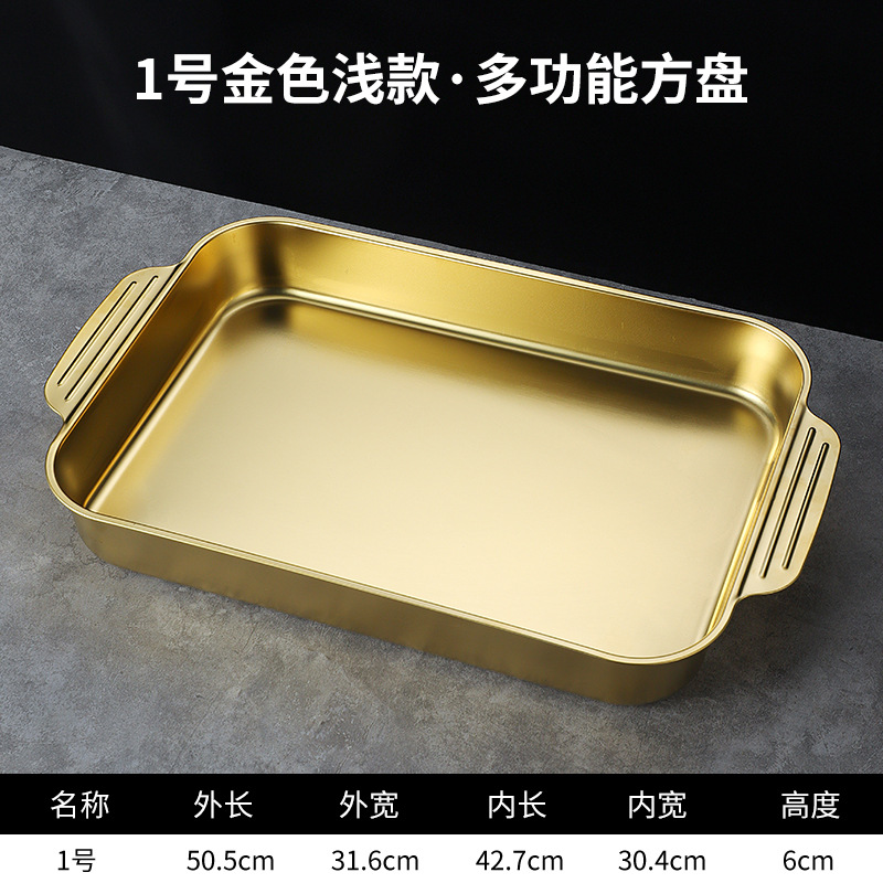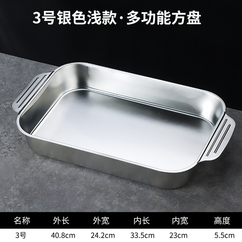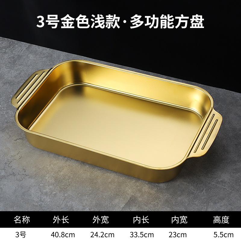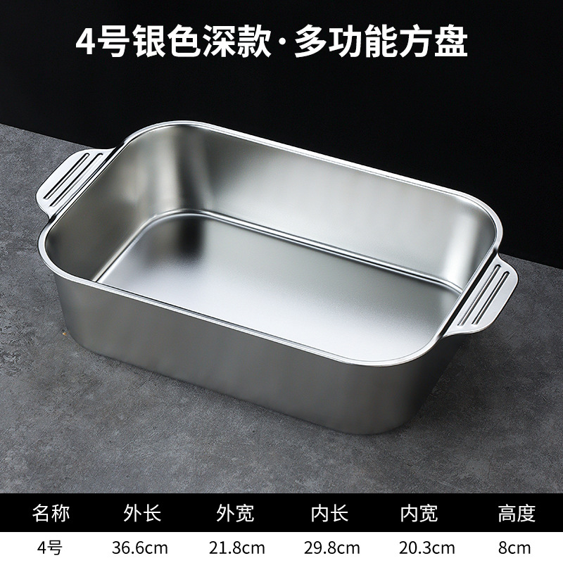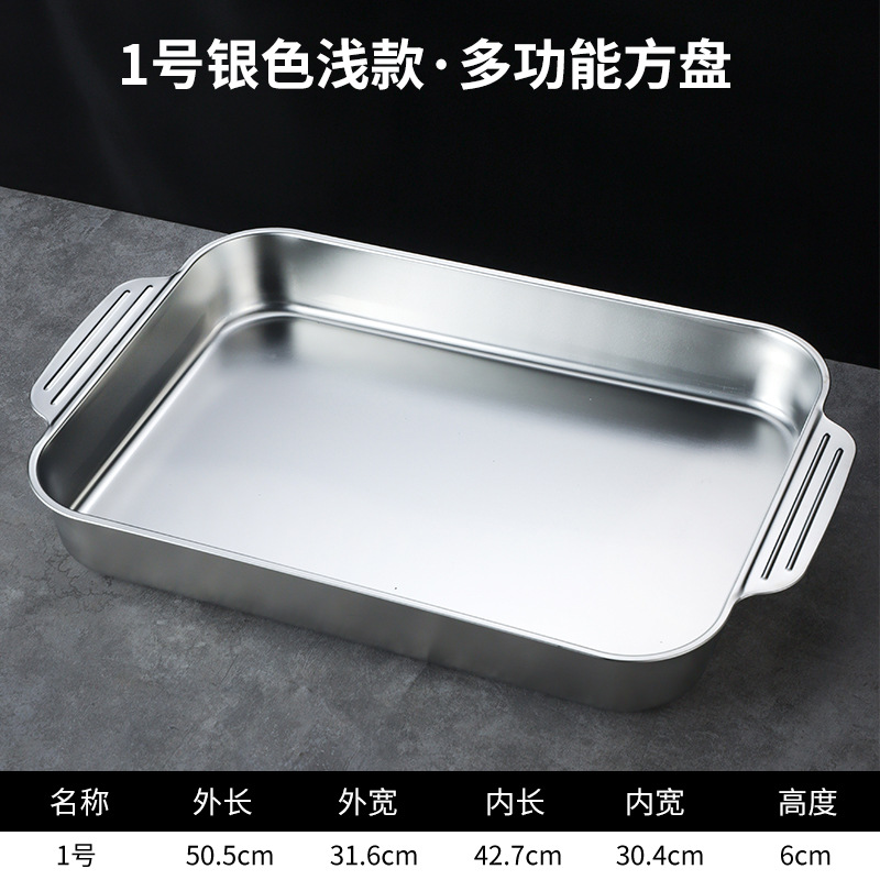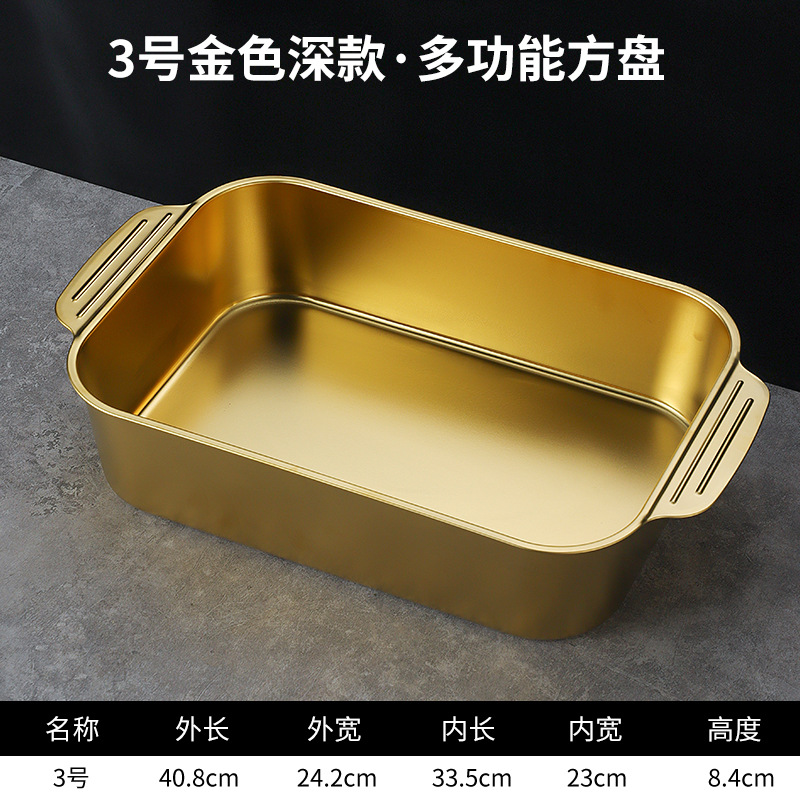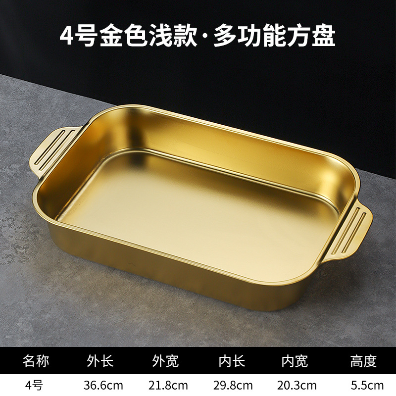 스테인레스 스틸 평평한 바닥 두꺼운 구운 생선 트레이 상업용 직사각형 그릴 트레이 황금 냄비 분지 디너 플레이트 쌀 플레이트스토어 가기