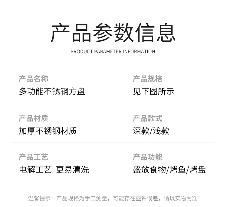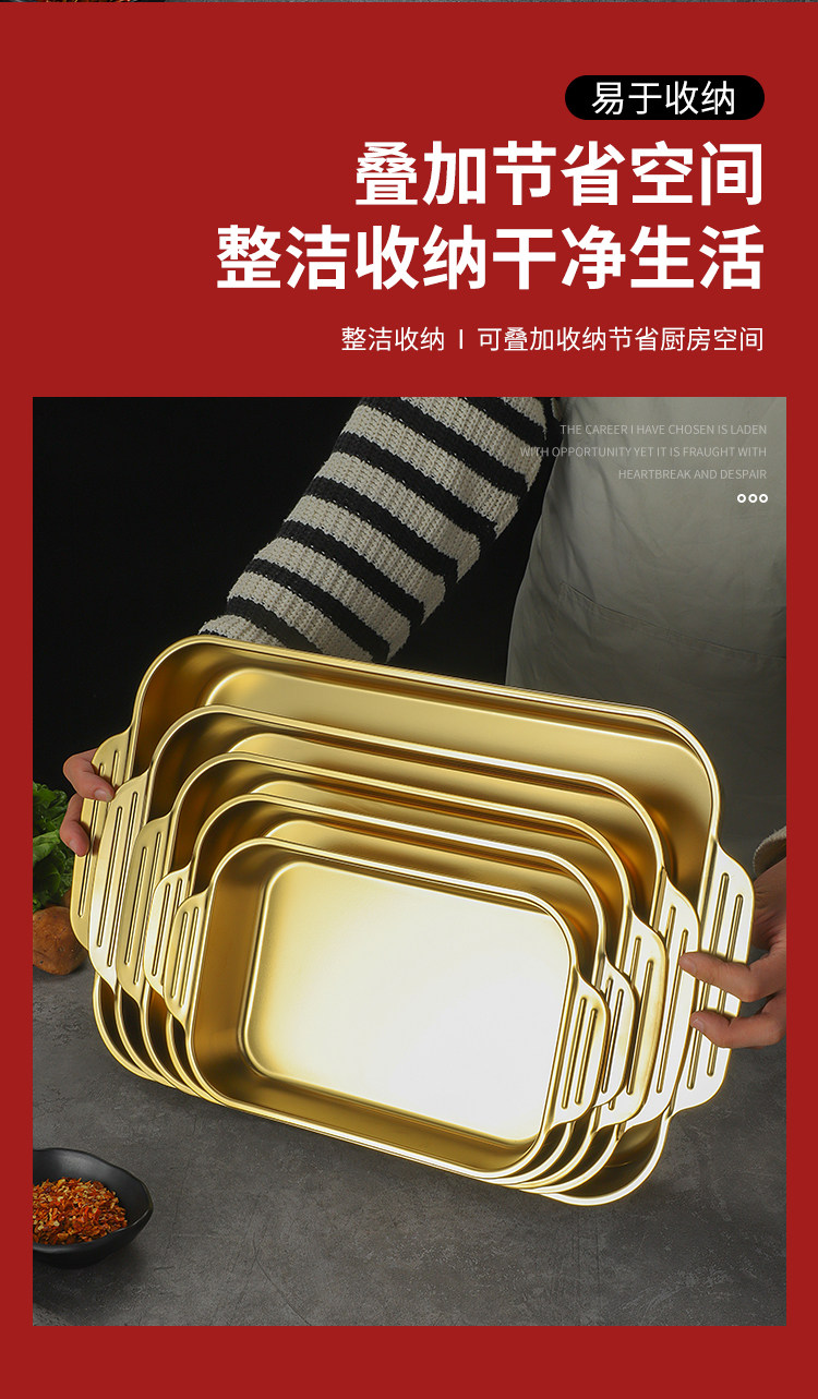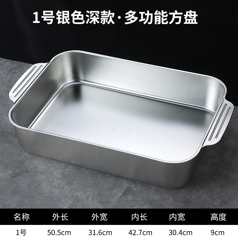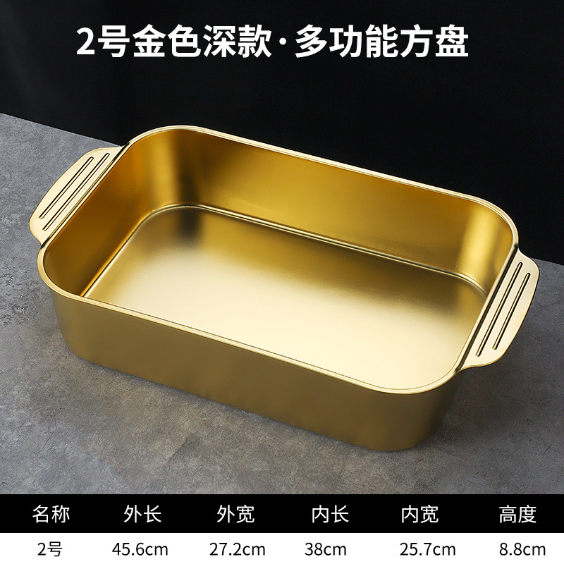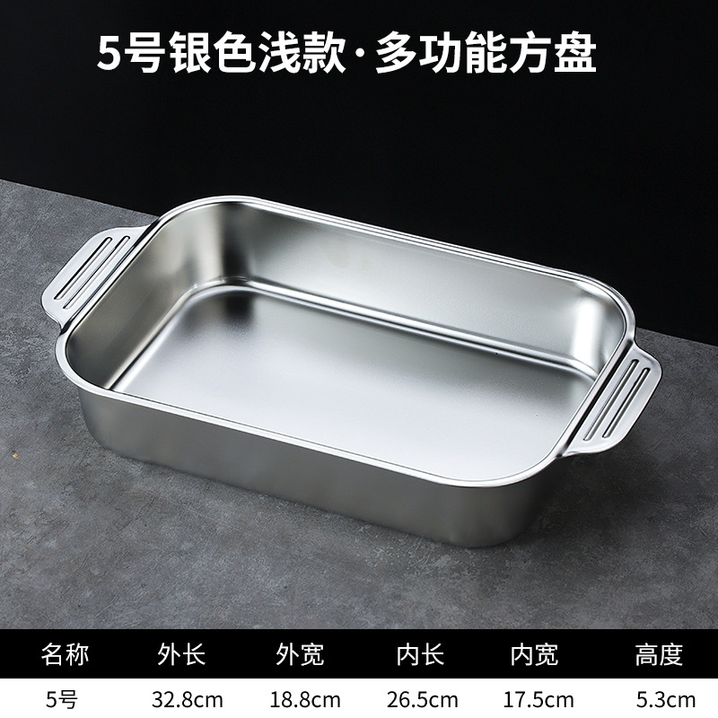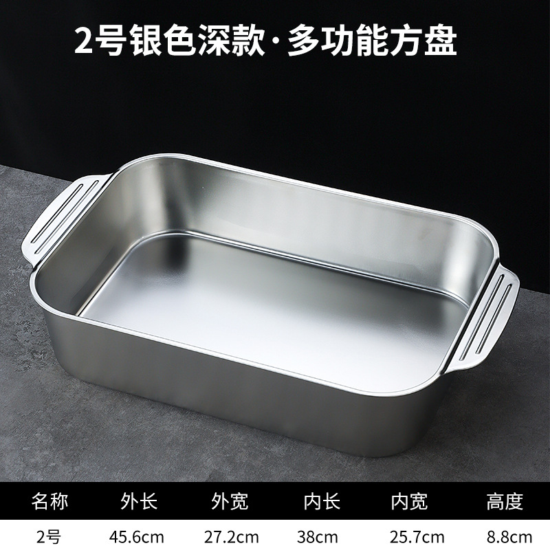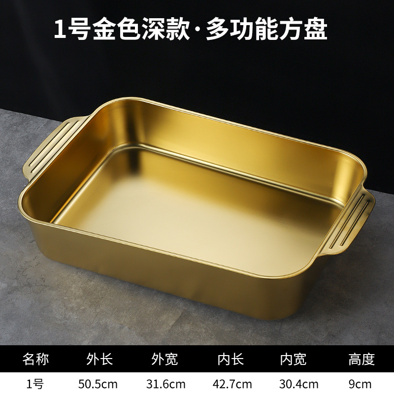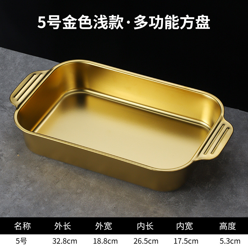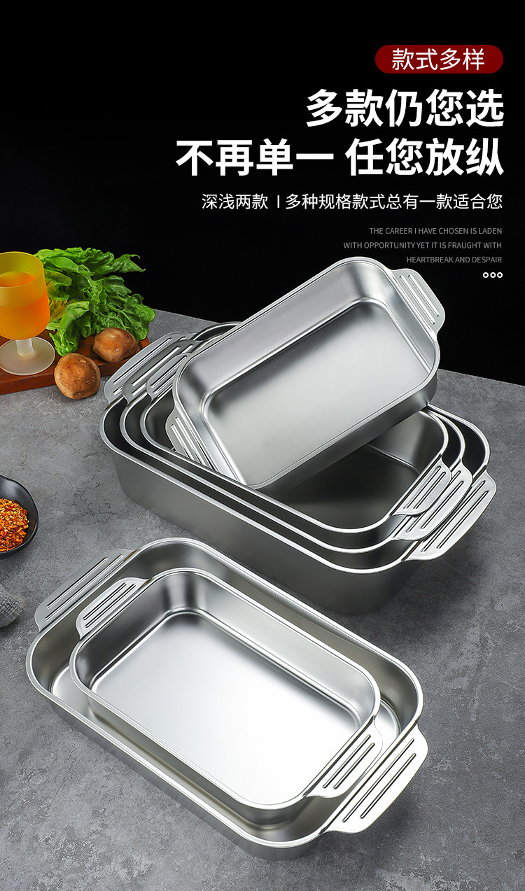 스테인레스 스틸 평평한 바닥 두꺼운 구운 생선 트레이 상업용 직사각형 그릴 트레이 황금 냄비 분지 디너 플레이트 쌀 플레이트스토어 가기