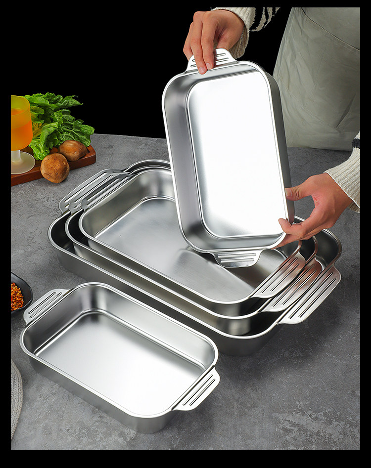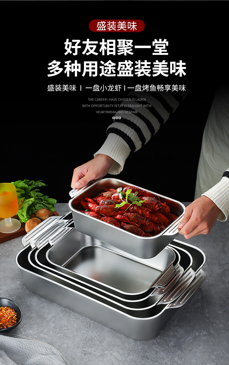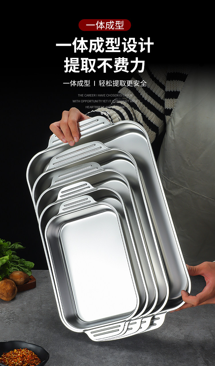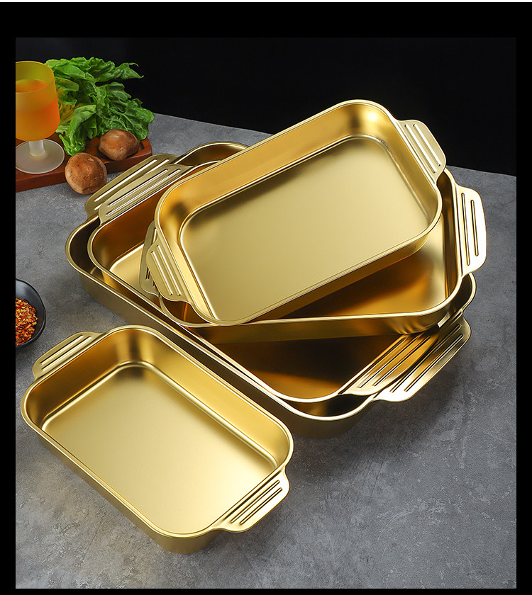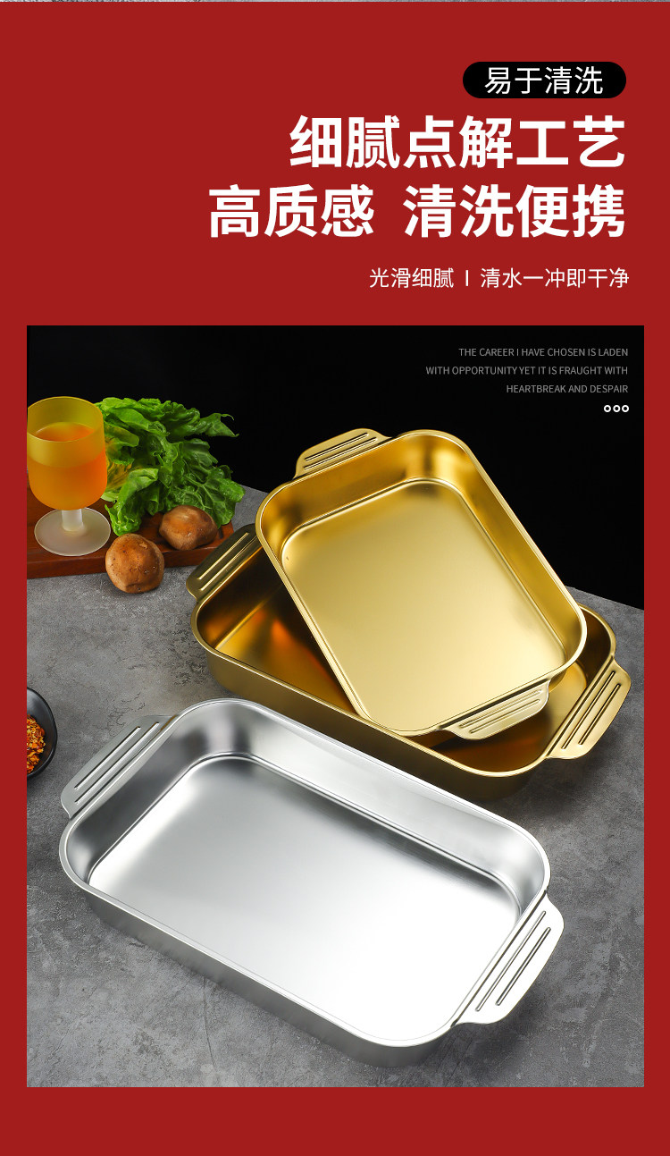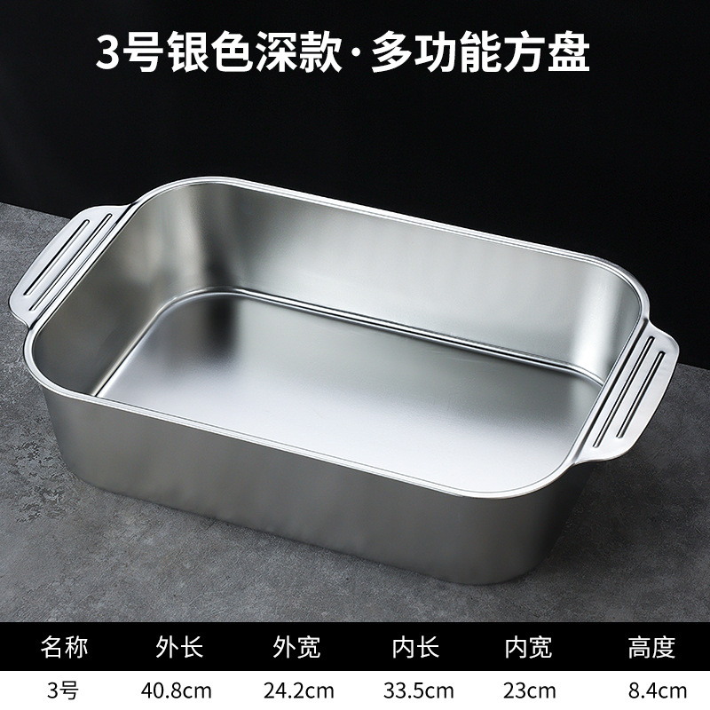 스테인레스 스틸 평평한 바닥 두꺼운 구운 생선 트레이 상업용 직사각형 그릴 트레이 황금 냄비 분지 디너 플레이트 쌀 플레이트