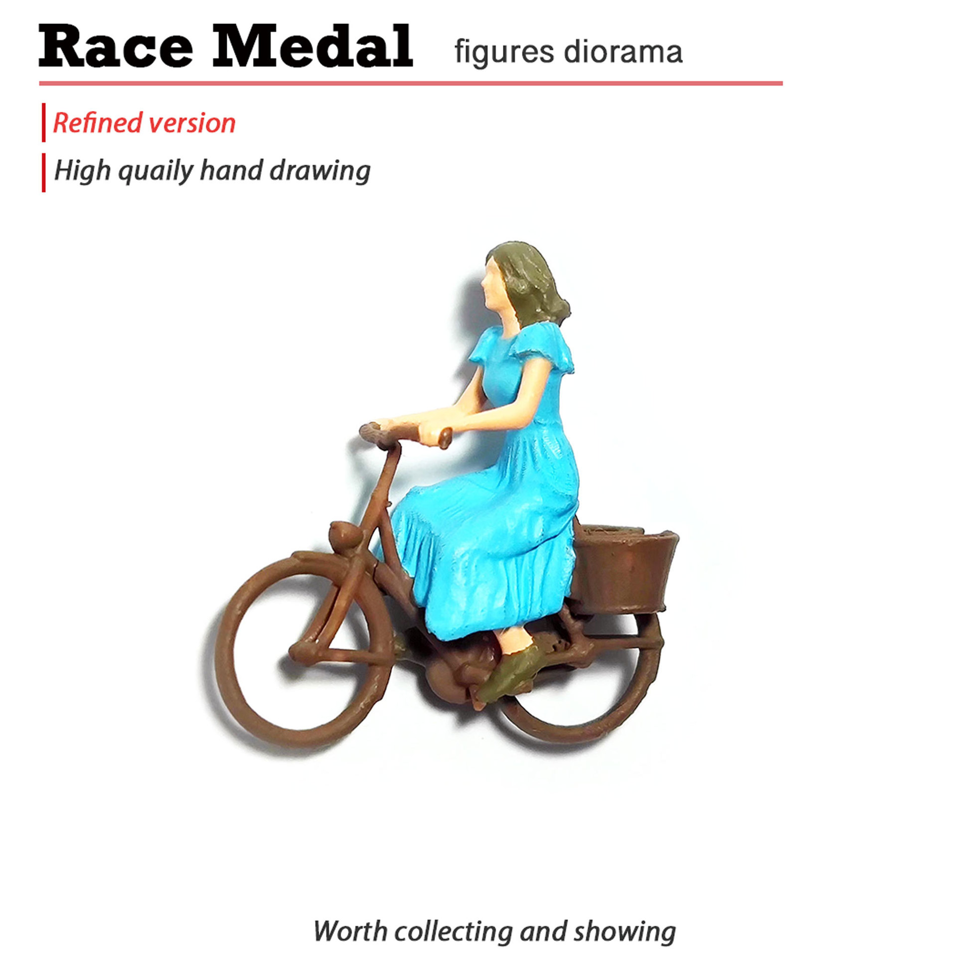 1:87HO 현미경 자전거 목가적 인 자매 사이클링 소년 프리저 현미경 장면 모델과 녹색 식물 풍경스토어 가기
