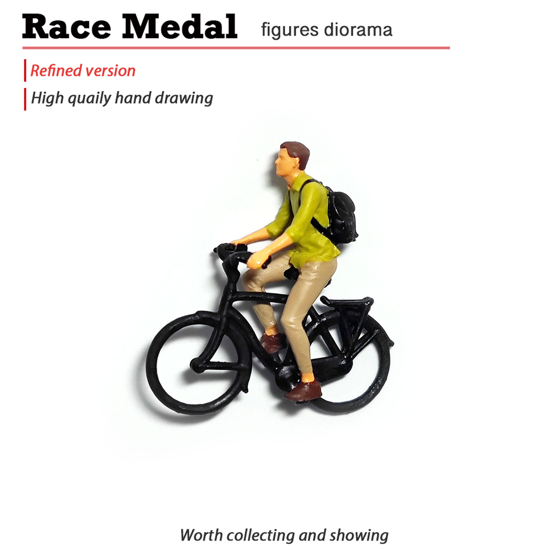 1:87HO 현미경 자전거 목가적 인 자매 사이클링 소년 프리저 현미경 장면 모델과 녹색 식물 풍경