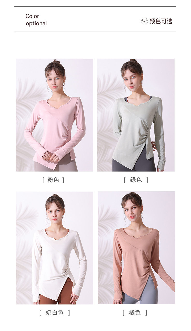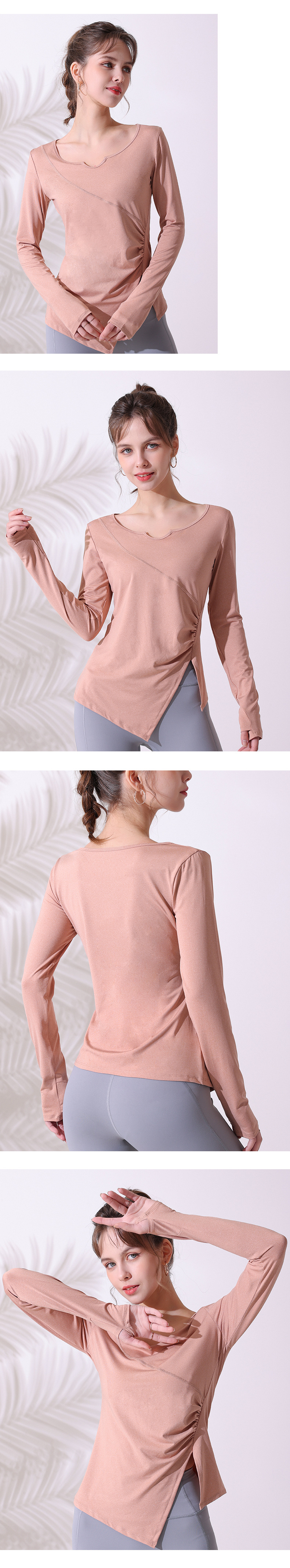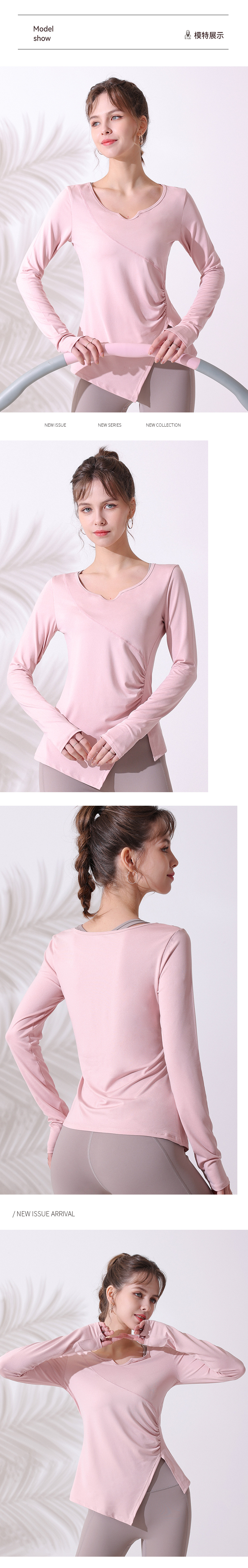 여성용 복지 신상 가을 겨울 누드 스포츠 요가복, 브이넥 주름 슬림 긴팔 런닝 티셔츠 피트니스 탑스토어 가기