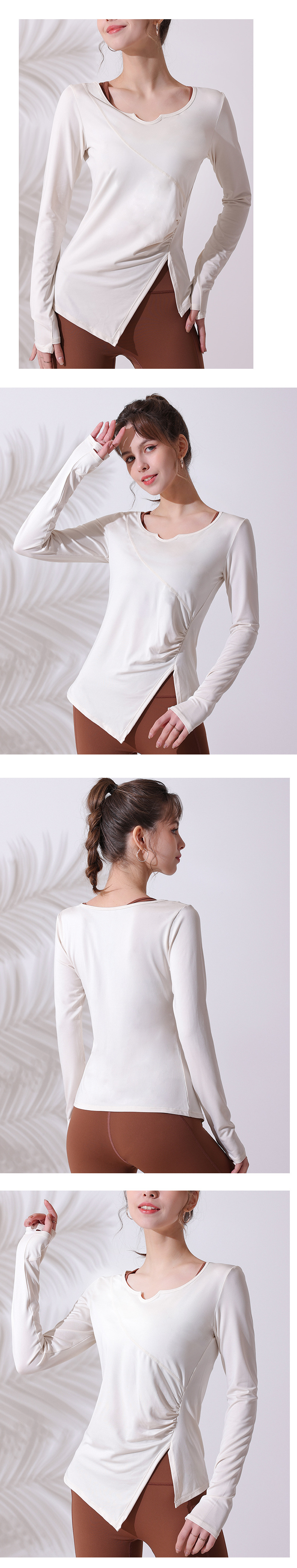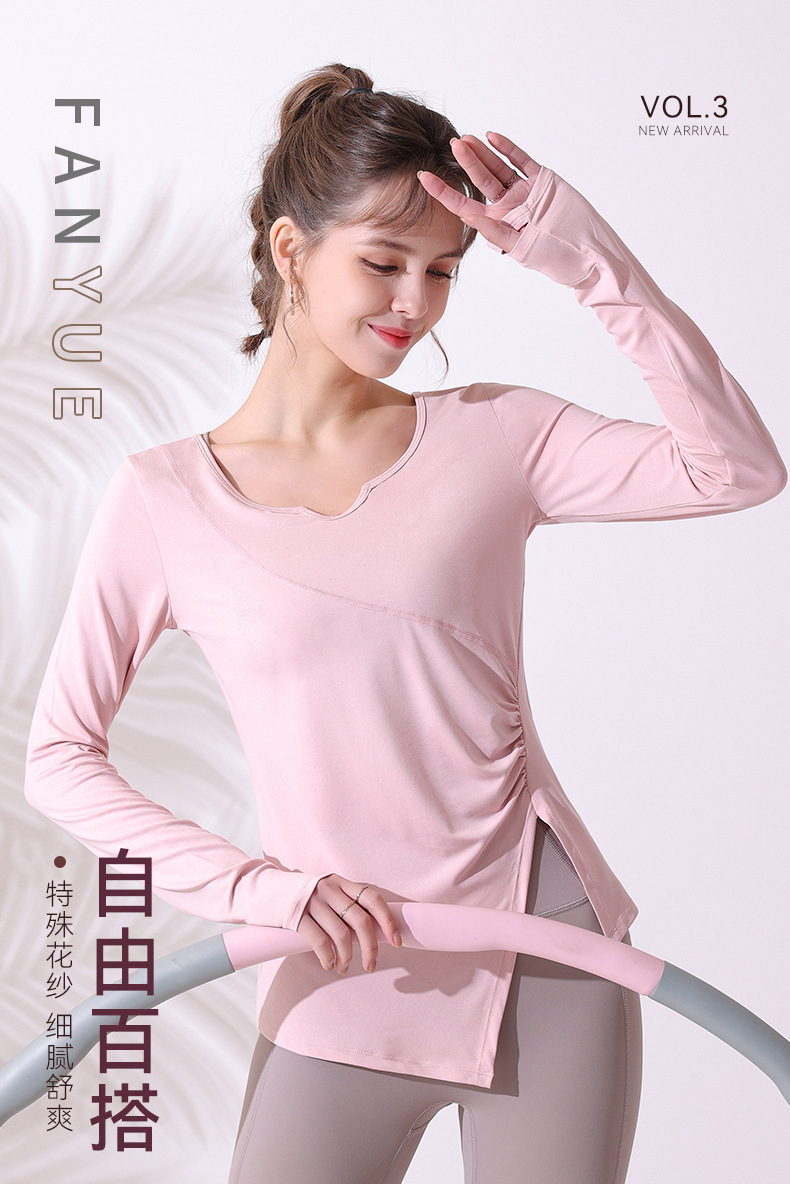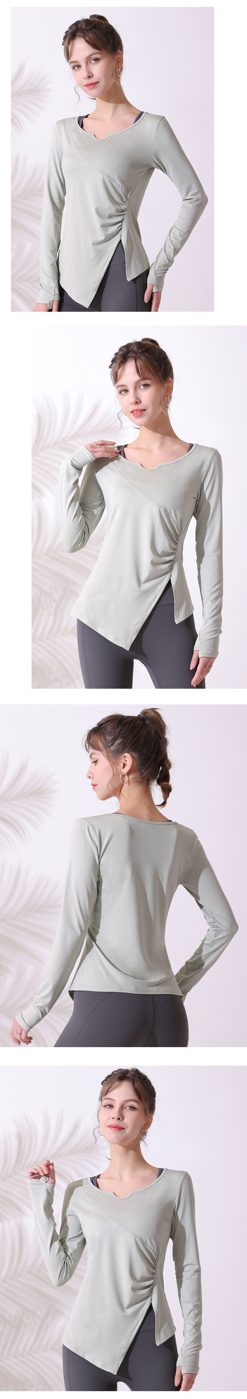 여성용 복지 신상 가을 겨울 누드 스포츠 요가복, 브이넥 주름 슬림 긴팔 런닝 티셔츠 피트니스 탑스토어 가기