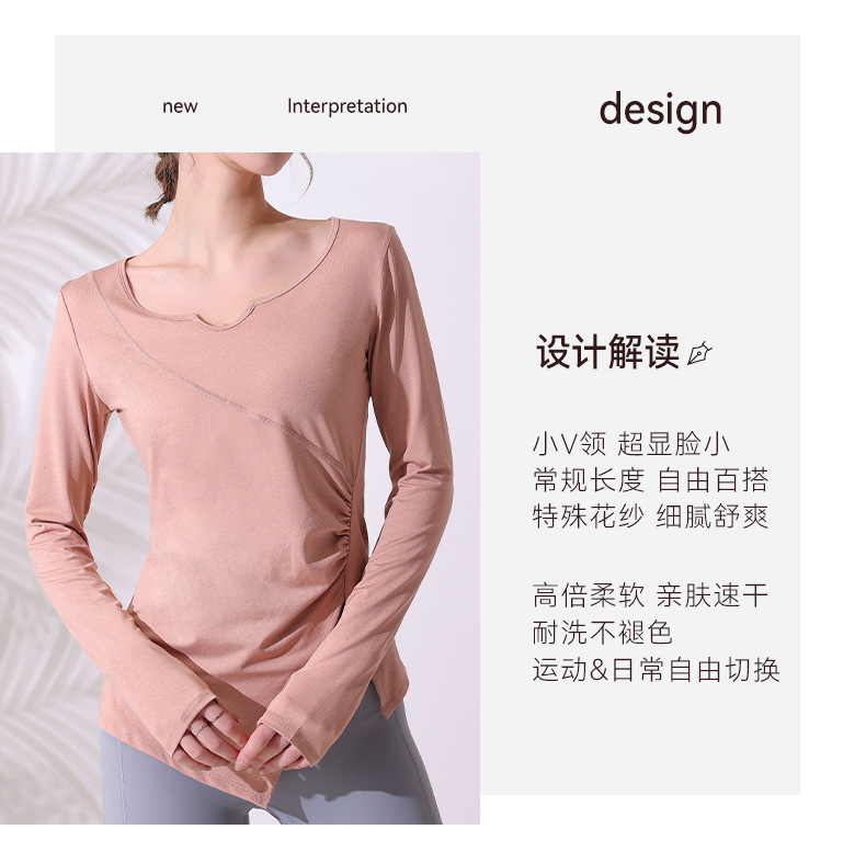 여성용 복지 신상 가을 겨울 누드 스포츠 요가복, 브이넥 주름 슬림 긴팔 런닝 티셔츠 피트니스 탑
