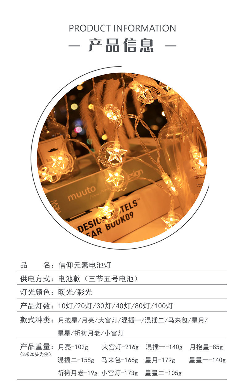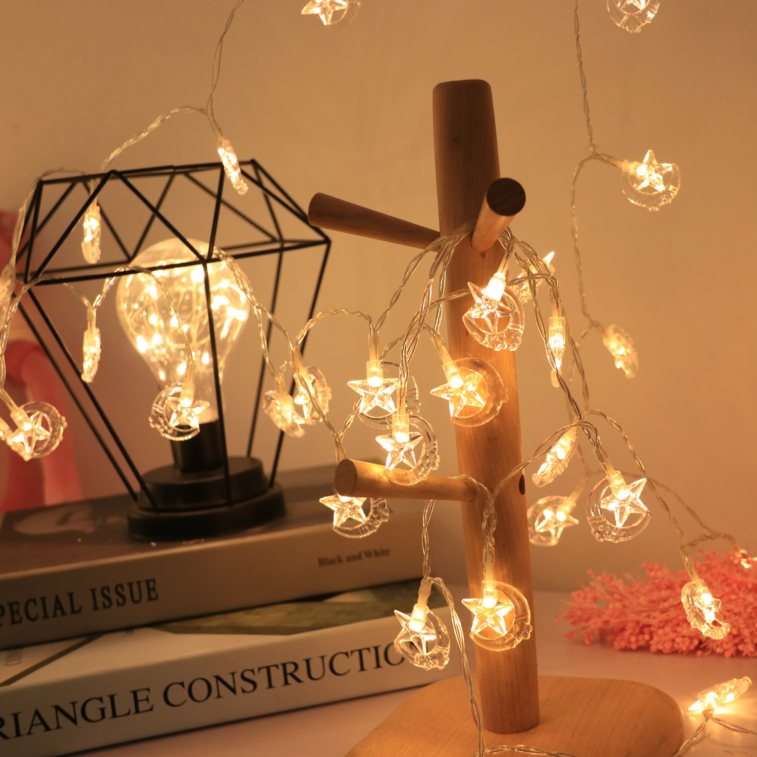 LED 스타 및 달 조명 문자열 달 별 색상 조명 룸 레이아웃 별 캠핑 조명 배터리 USB 원격 제어