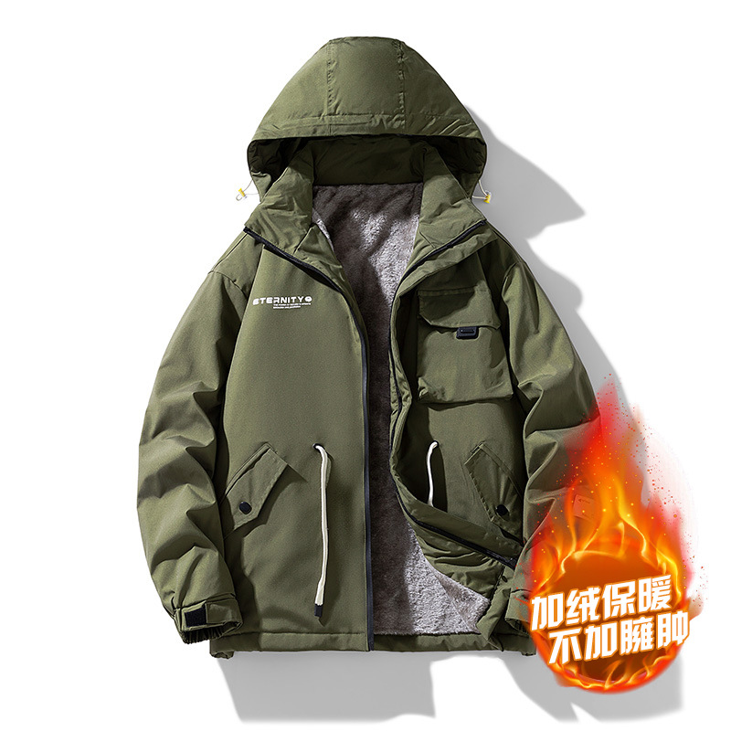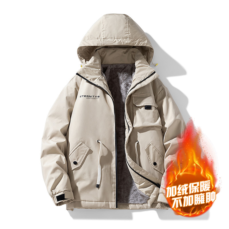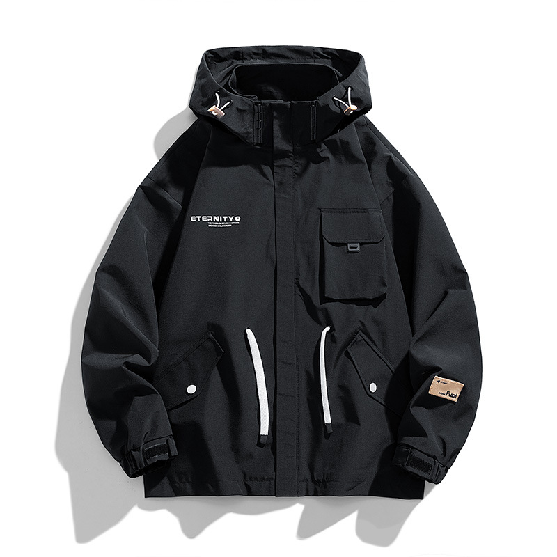 재킷 남성용 봄과 가을 멀티 포켓 루즈한 작업복 재킷 후드 홍콩 스타일 유스 트렌디 탑 올매치 솔리드 컬러 의류스토어 가기