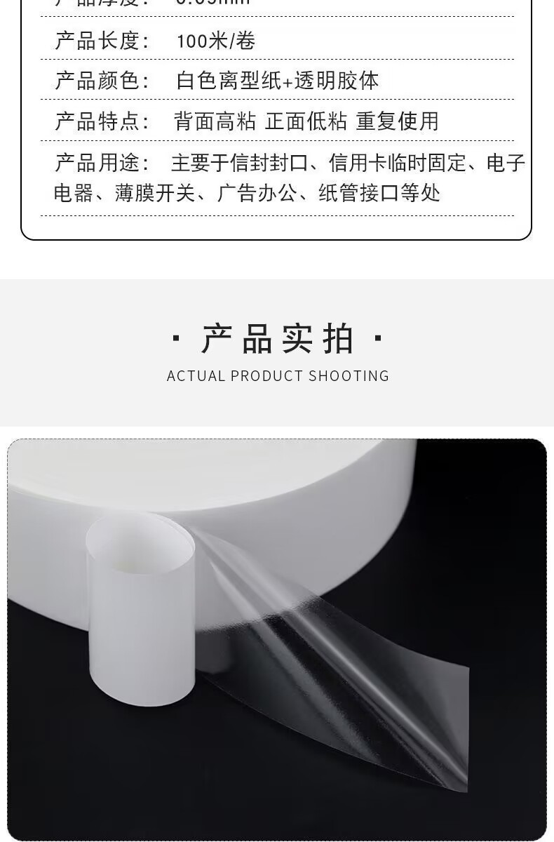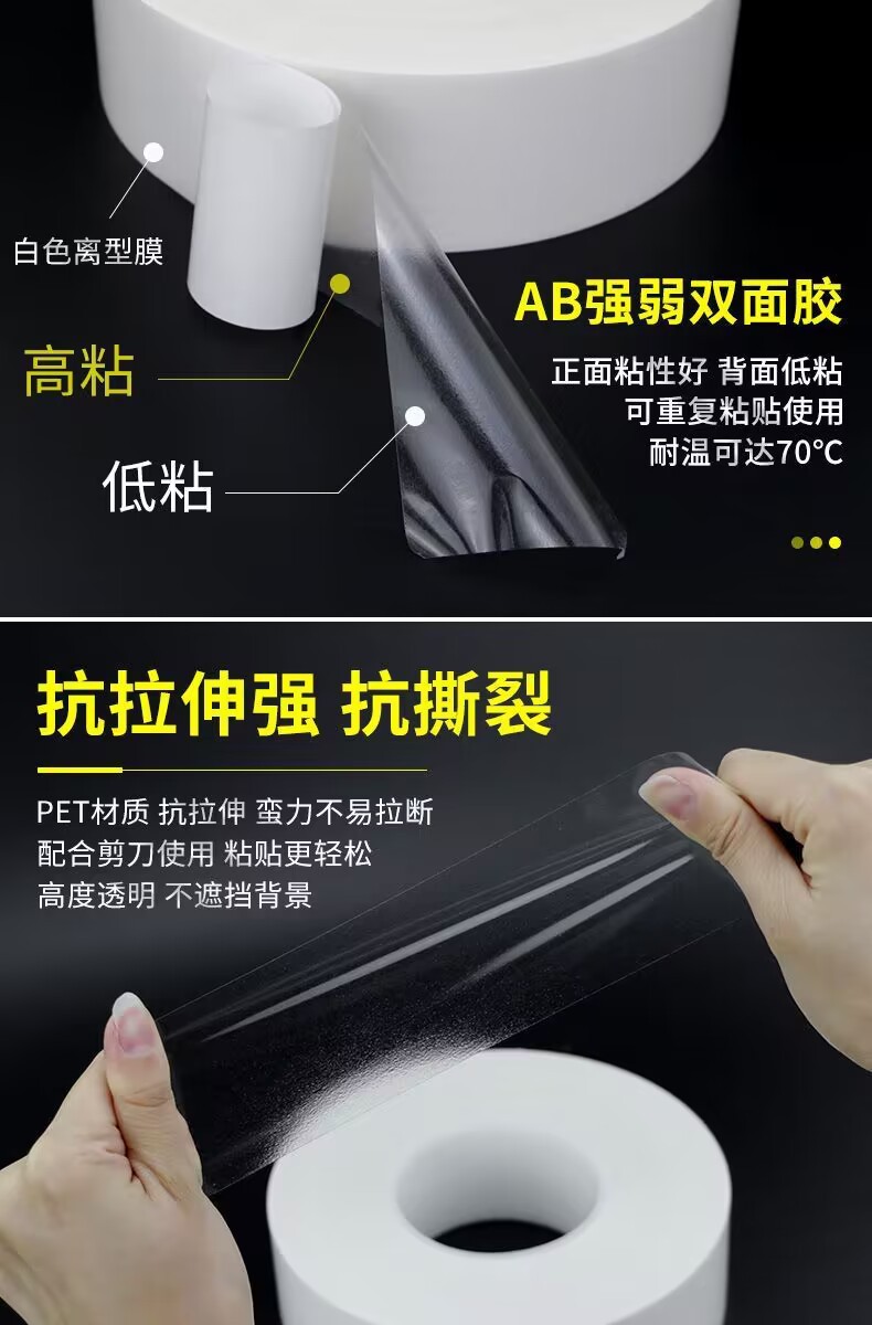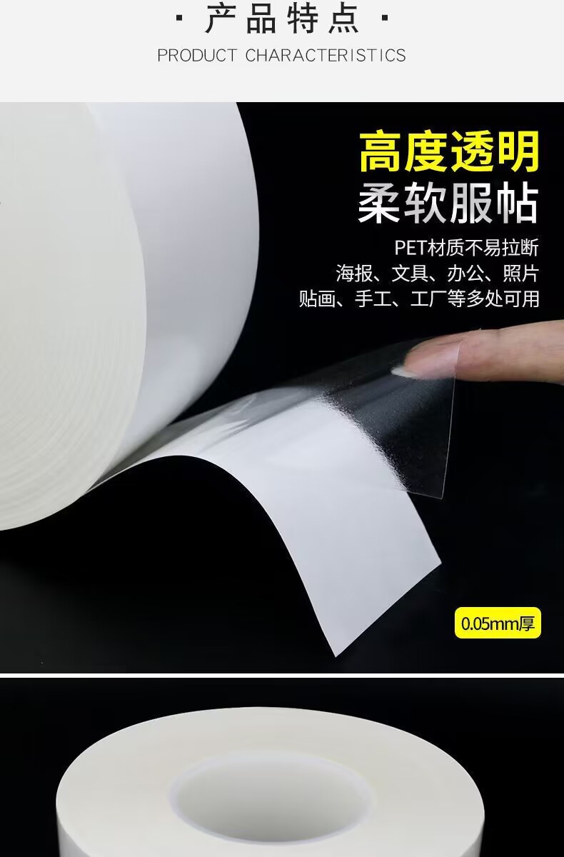 제조업체 판매 애완 동물 양면 테이프 투명 원활한 단면 접착 종이 초박형 고온 저항 강하고 약한 애완 동물 양면 접착 테이프