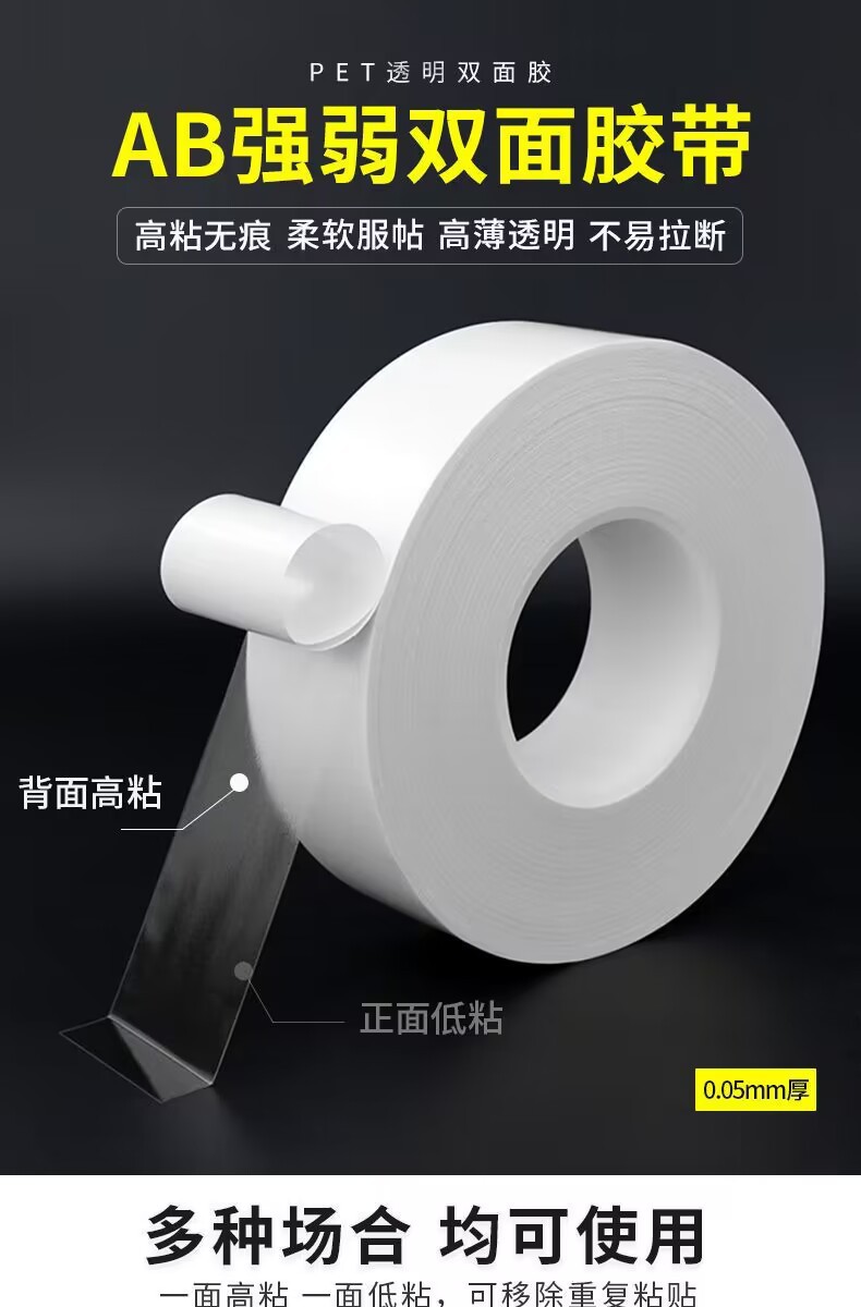 제조업체 판매 애완 동물 양면 테이프 투명 원활한 단면 접착 종이 초박형 고온 저항 강하고 약한 애완 동물 양면 접착 테이프스토어 가기