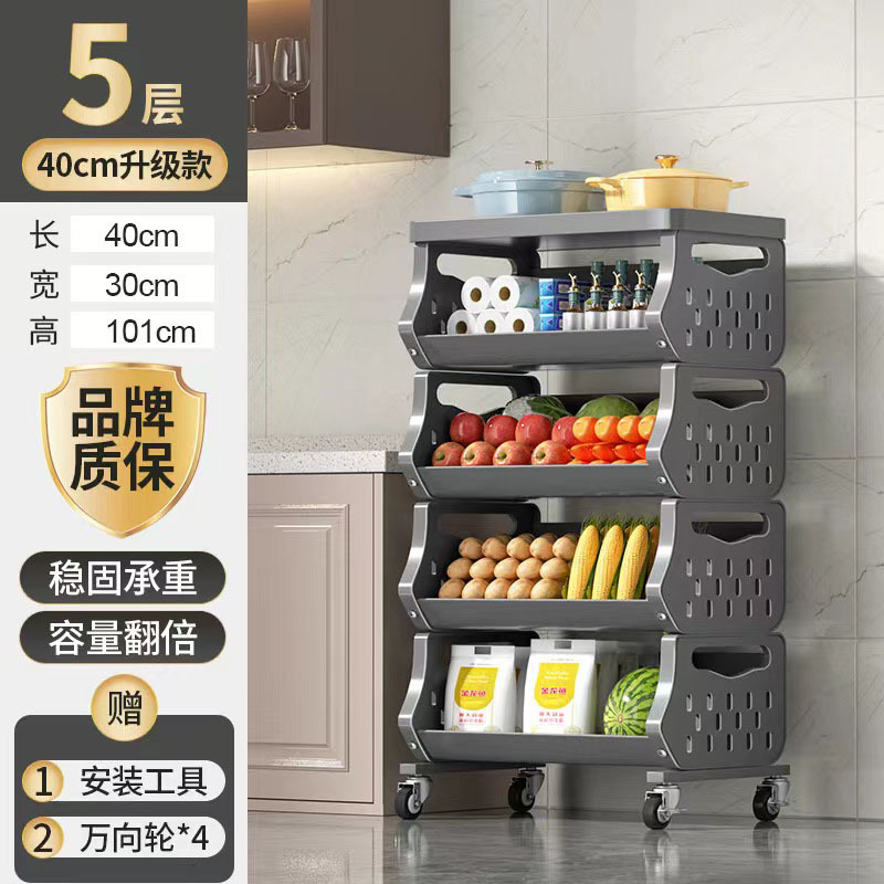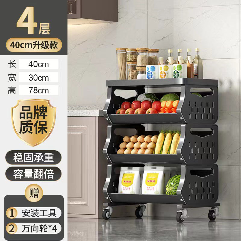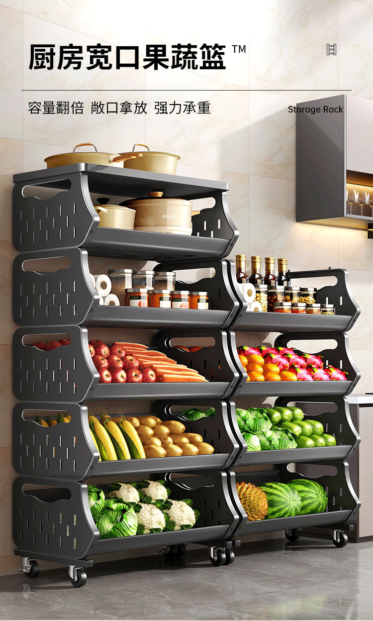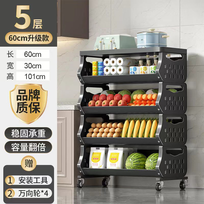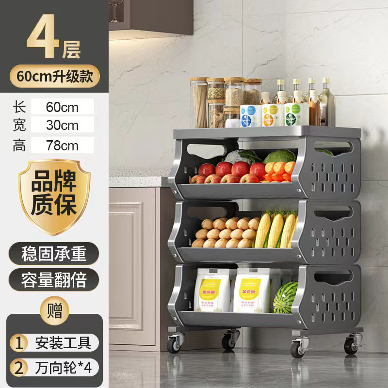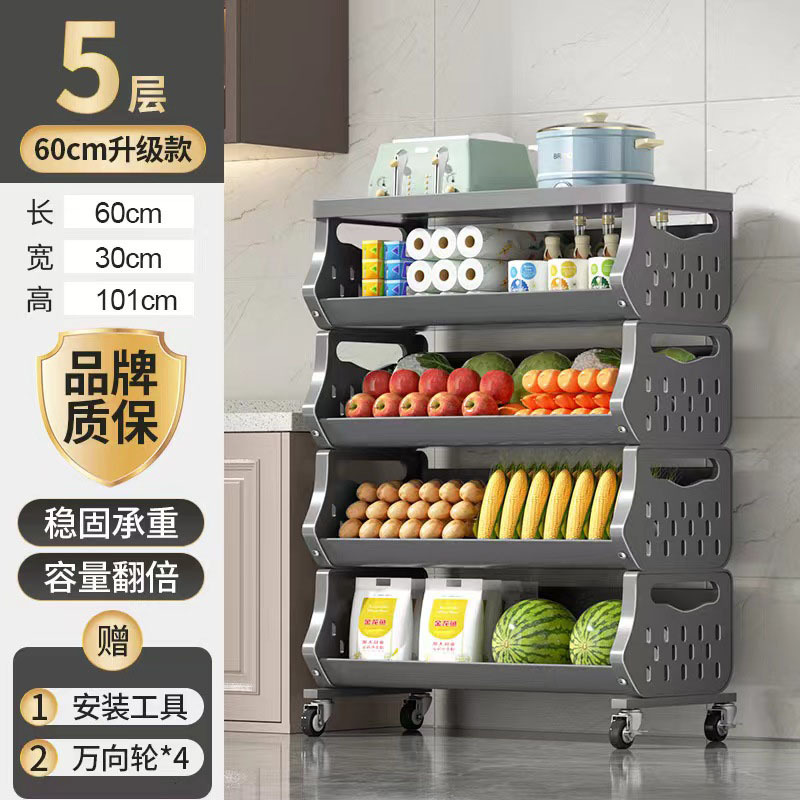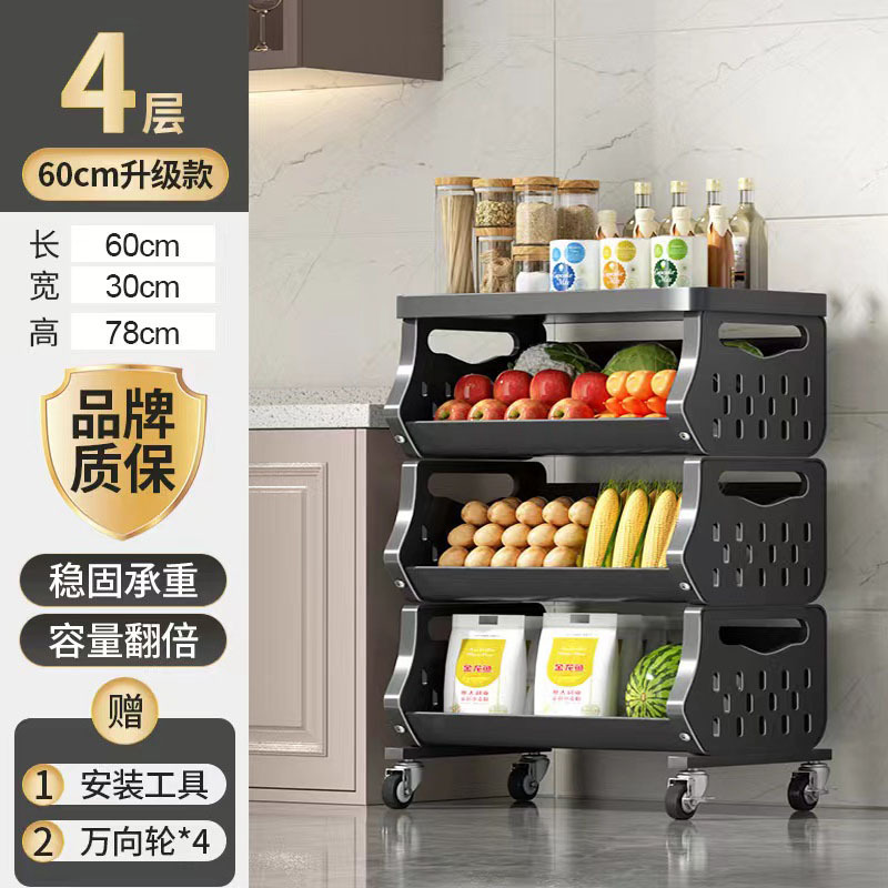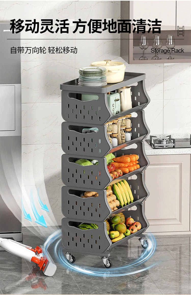 주방 야채 바구니 저장 선반 다층 바닥 움직일 수 있는 과일 및 야채 저장 유니버설 휠 트롤리