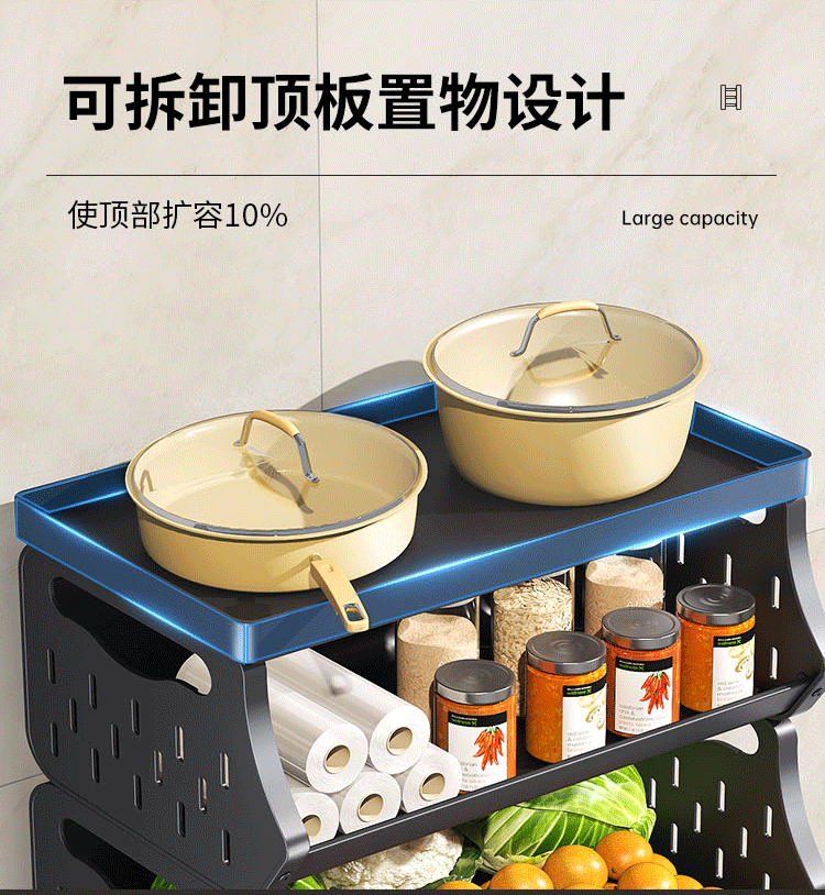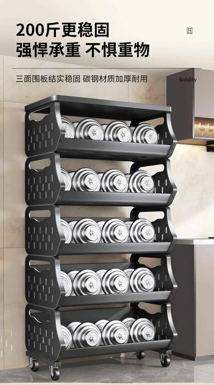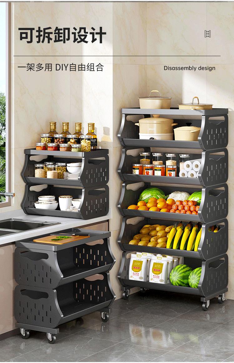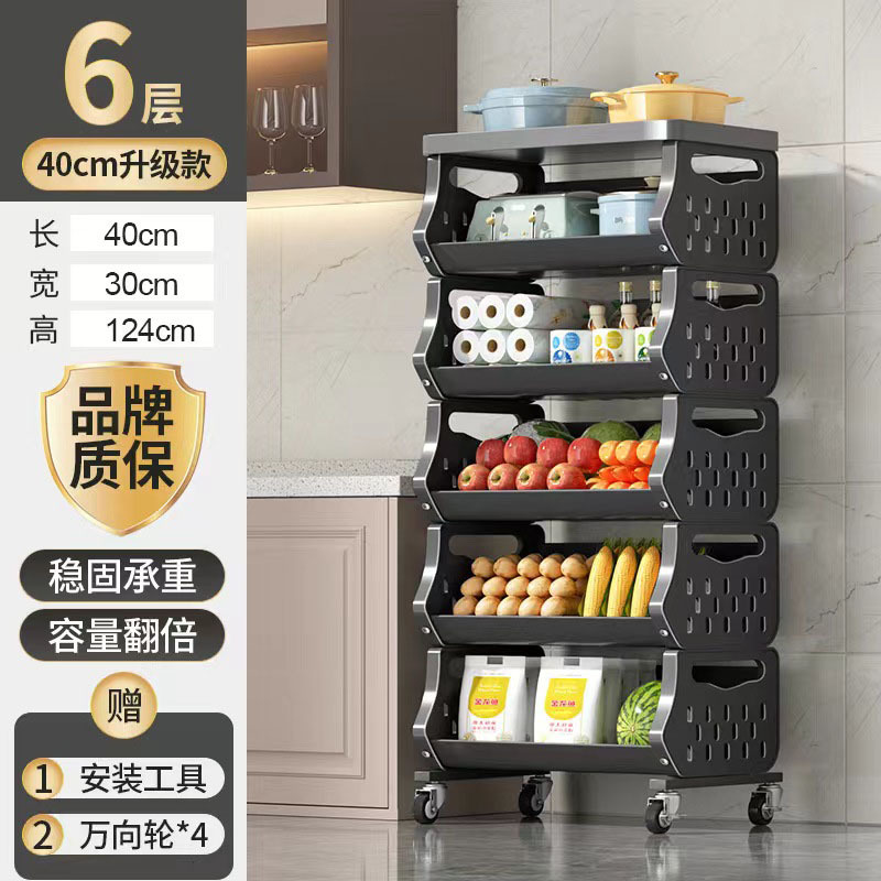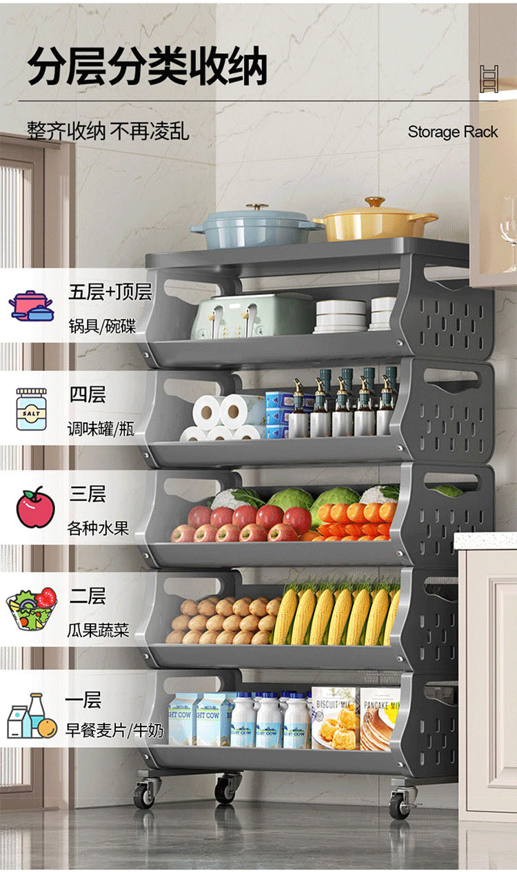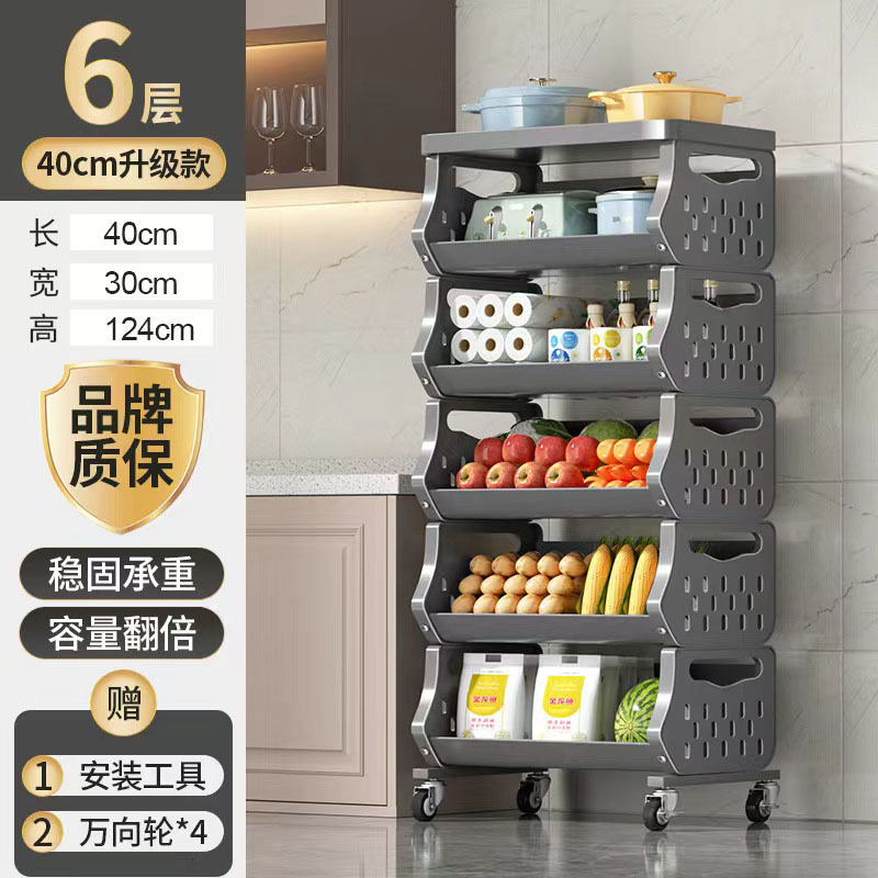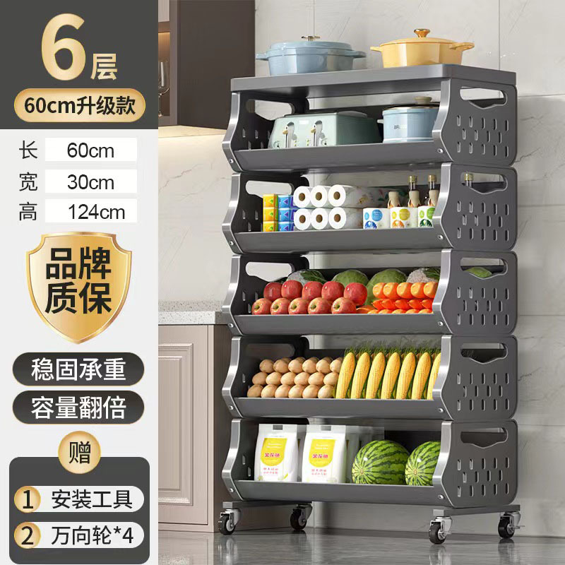 주방 야채 바구니 저장 선반 다층 바닥 움직일 수 있는 과일 및 야채 저장 유니버설 휠 트롤리