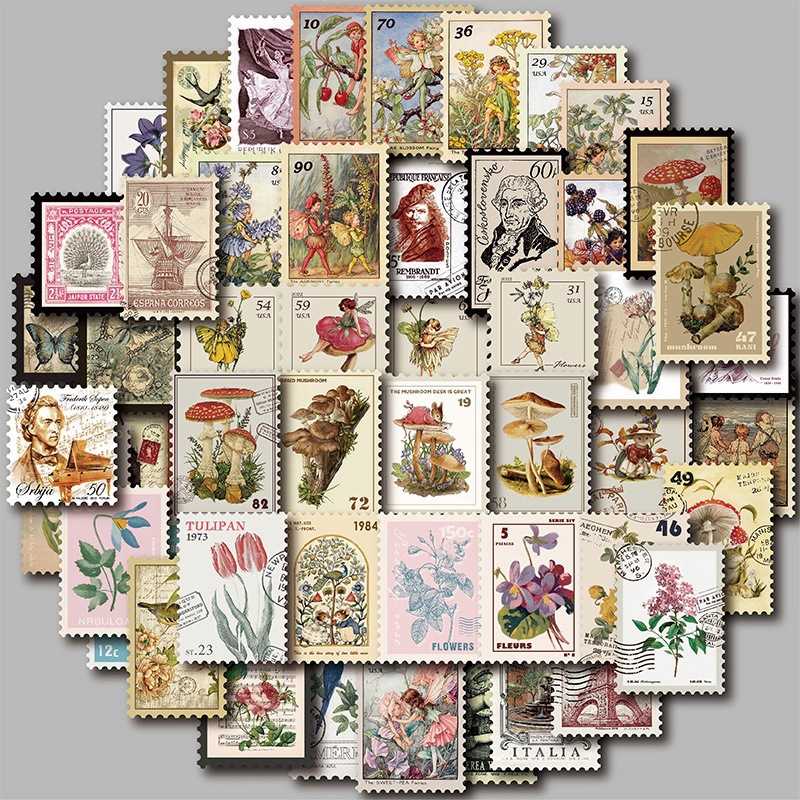 50 우표 효과 그리기 손 계정 스티커 복고풍 풍경 손으로 그린 유화 스타일 손 계정 스티커 소녀 지팡이 스티커스토어 가기