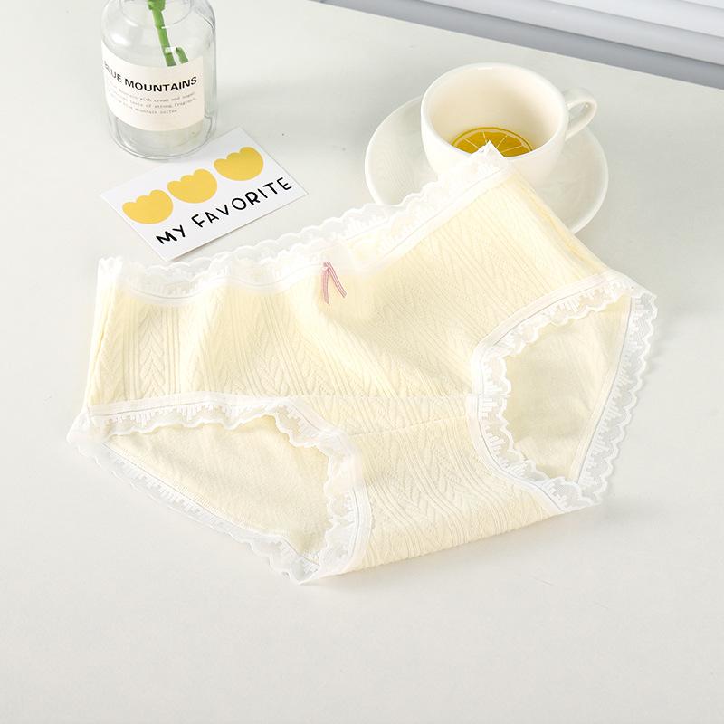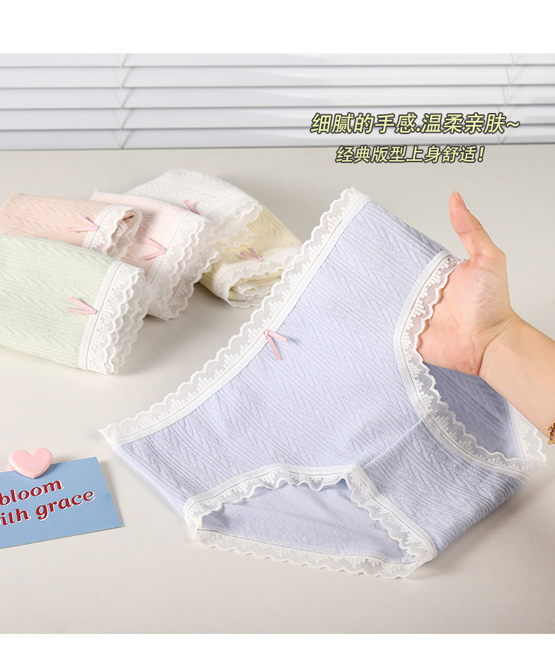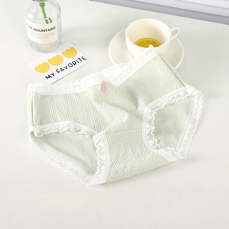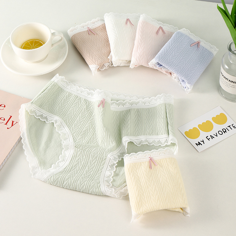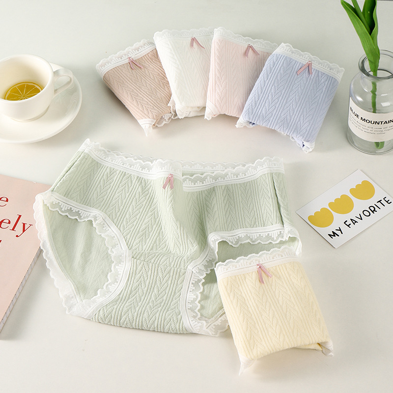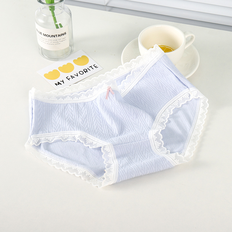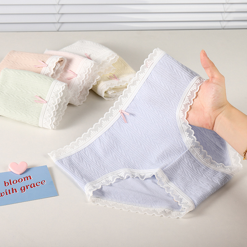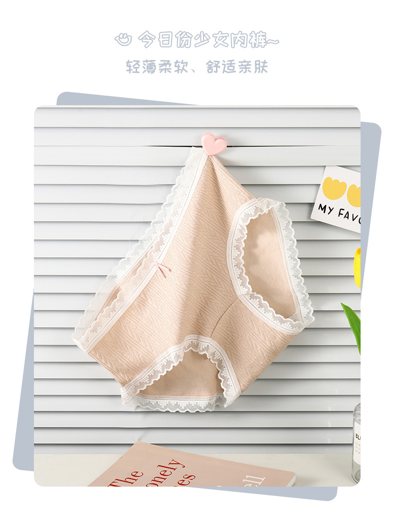 여성 속옷 여성용 순면 항균 가랑이 중간 허리 일본 소녀의 통기성 레이스 새로운 봄 팬티