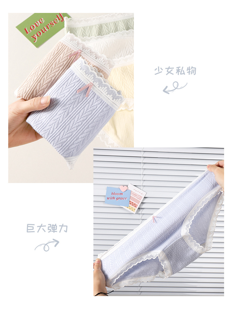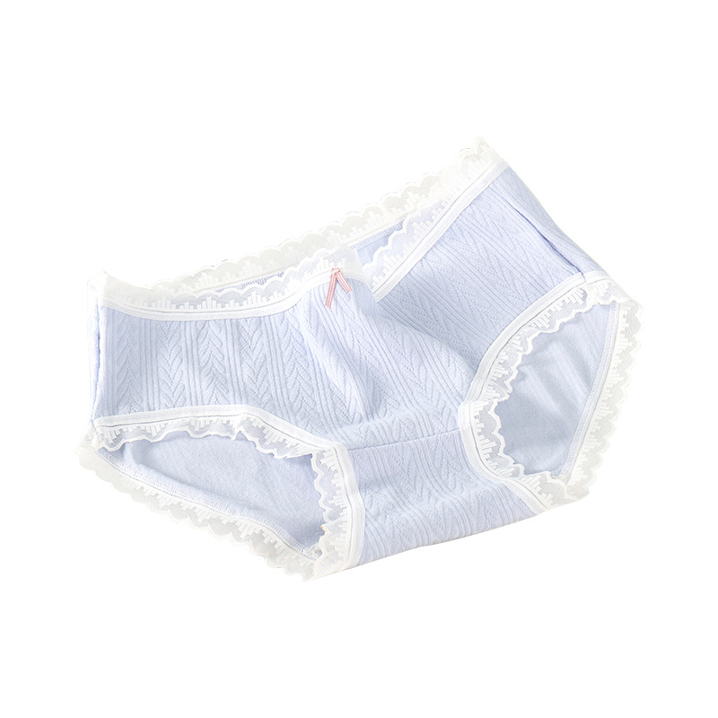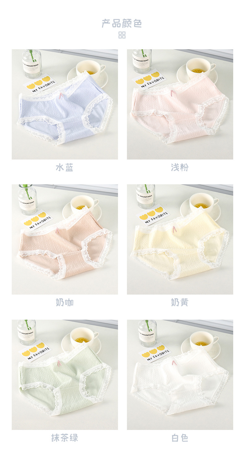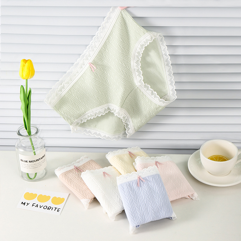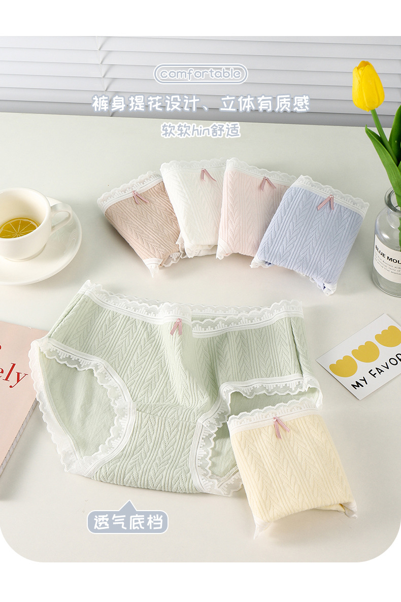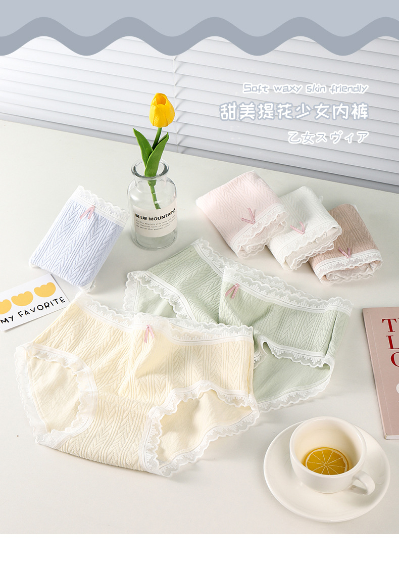 여성 속옷 여성용 순면 항균 가랑이 중간 허리 일본 소녀의 통기성 레이스 새로운 봄 팬티