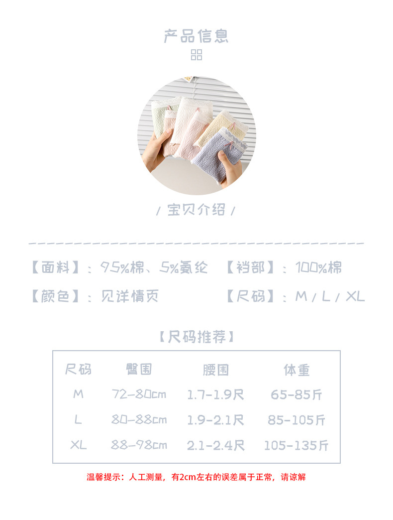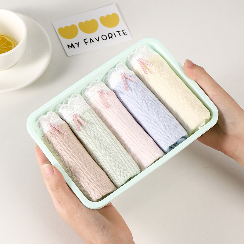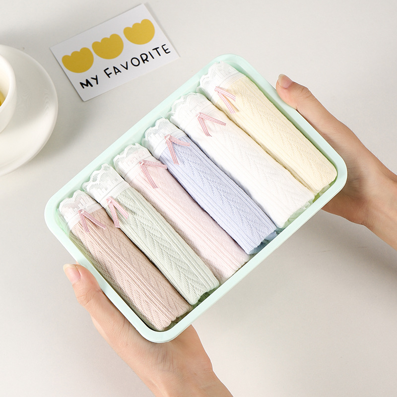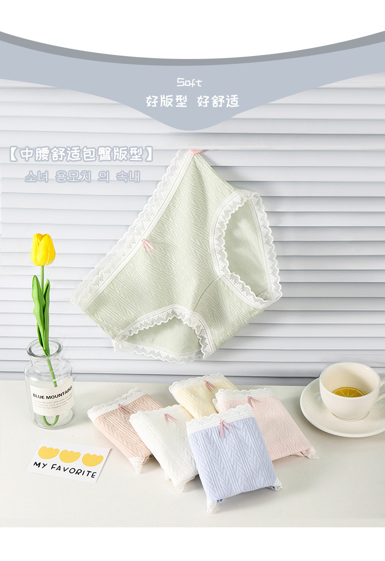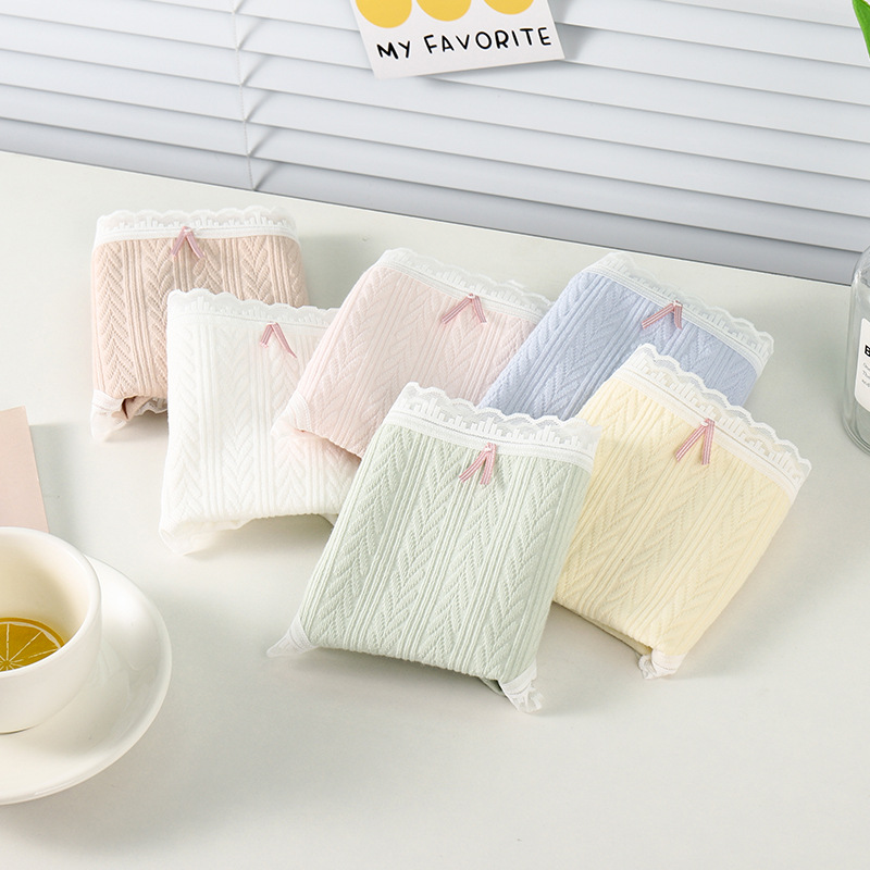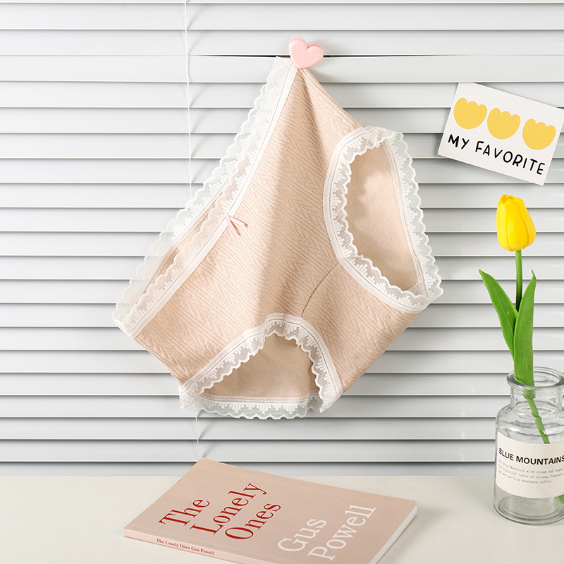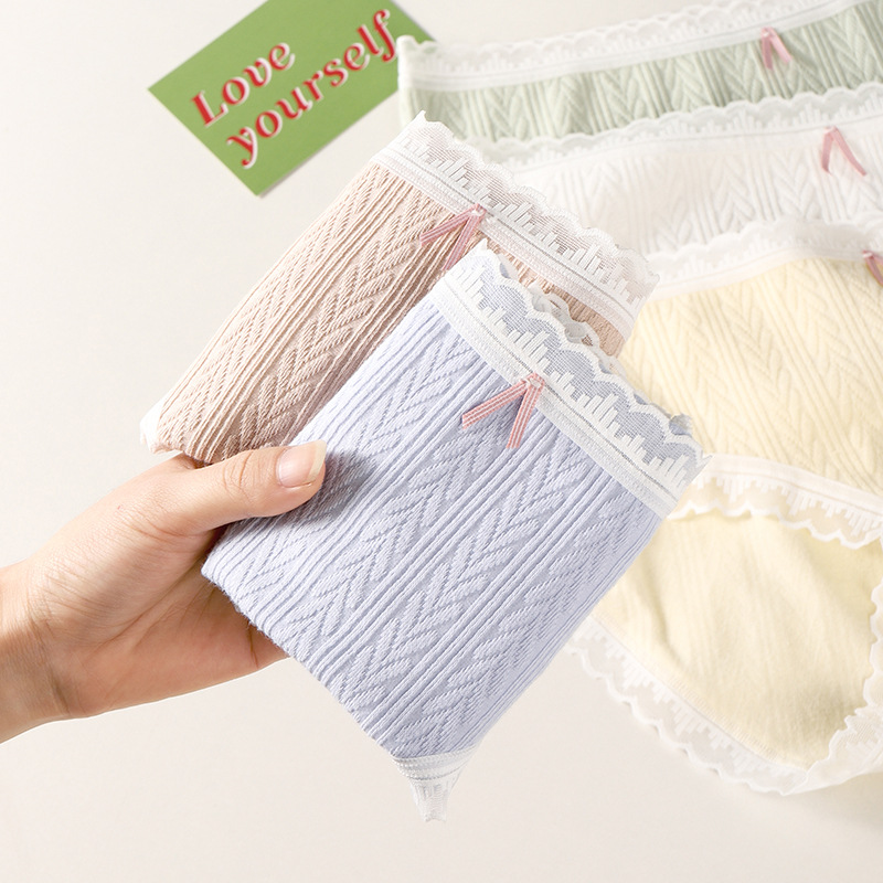 여성 속옷 여성용 순면 항균 가랑이 중간 허리 일본 소녀의 통기성 레이스 새로운 봄 팬티