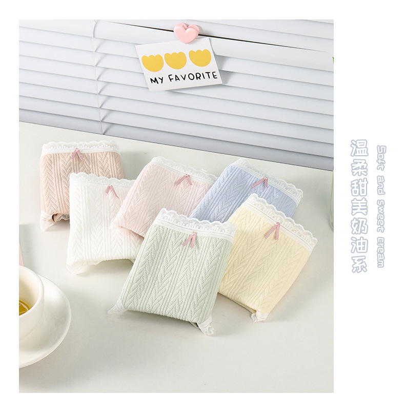 여성 속옷 여성용 순면 항균 가랑이 중간 허리 일본 소녀의 통기성 레이스 새로운 봄 팬티스토어 가기