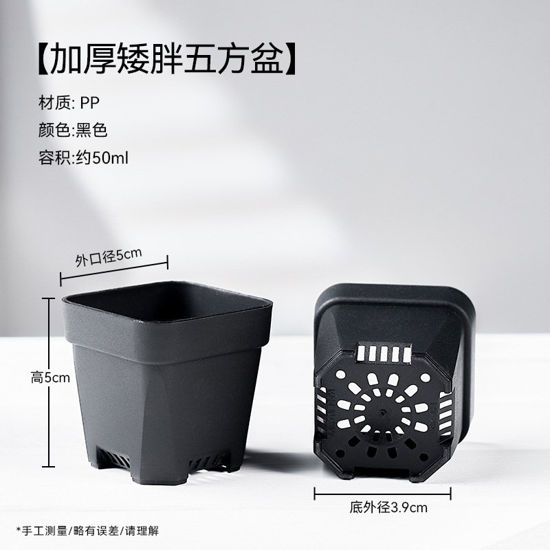 뜨거운 판매 물 투과 통기성 팔각형 분지 작은 흰색 사각형 다육 꽃 냄비 플라스틱 사각형 식물 잎 삽입 묘목 냄비 검은 사각형 냄비
