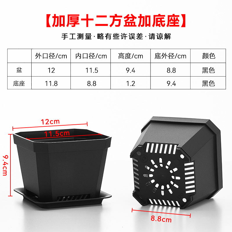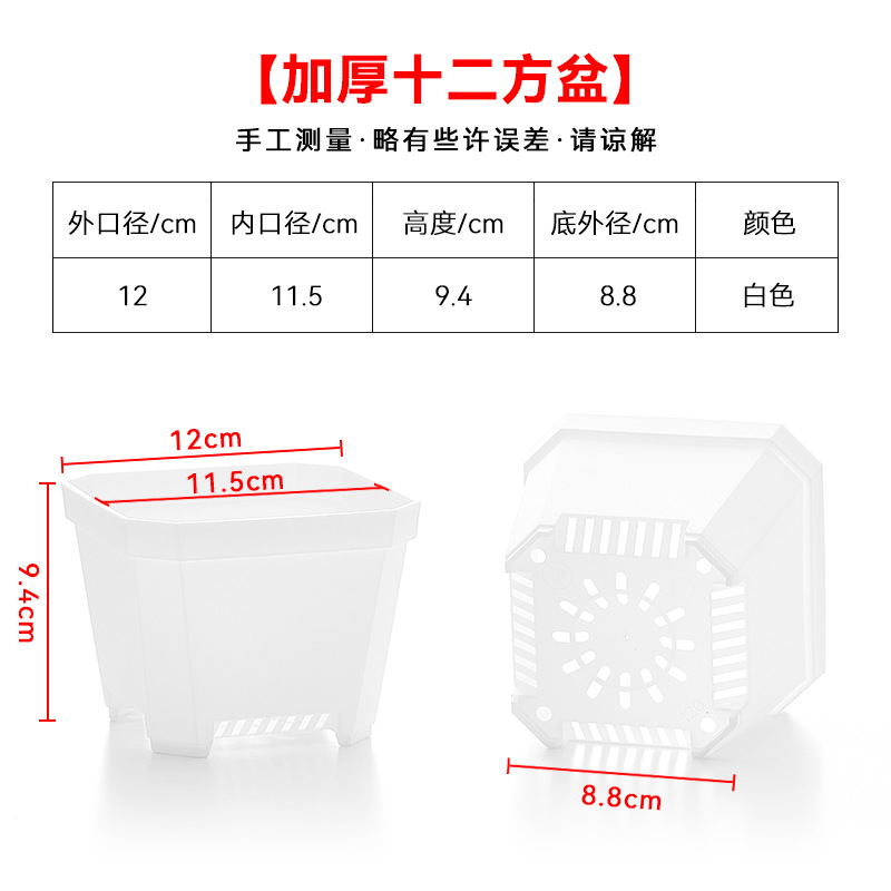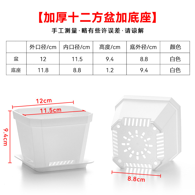 뜨거운 판매 물 투과 통기성 팔각형 분지 작은 흰색 사각형 다육 꽃 냄비 플라스틱 사각형 식물 잎 삽입 묘목 냄비 검은 사각형 냄비스토어 가기