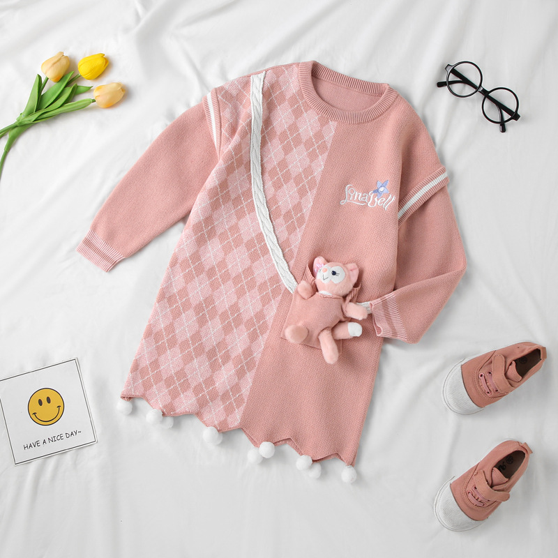 어린이 스웨터 도매 겨울 새로운 어린이 원피스 달콤한 자매 링나 벨 링지 색상 일치 여아 스웨터 원피스스토어 가기