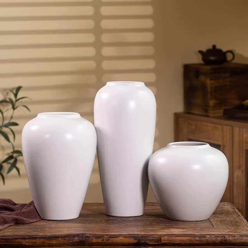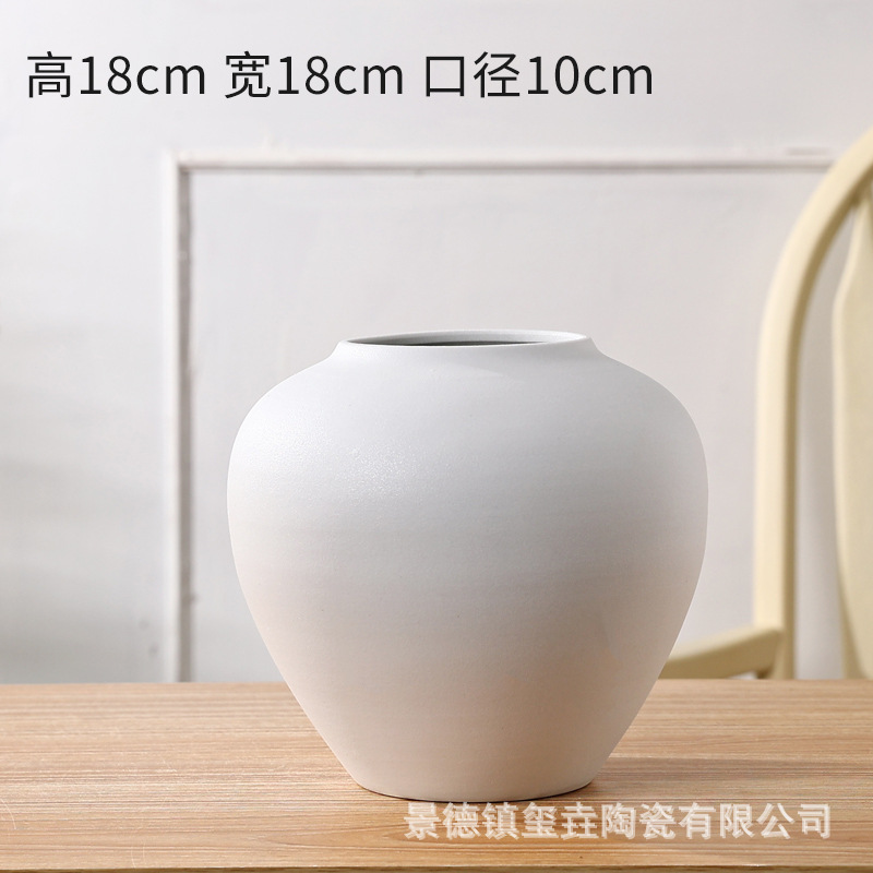 Jingdezhen 세라믹 꽃병 간단한 흰색 젖빛 창조적 인 꽃병 장식품 데스크탑 거실 입구 도자기 냄비 꽃스토어 가기
