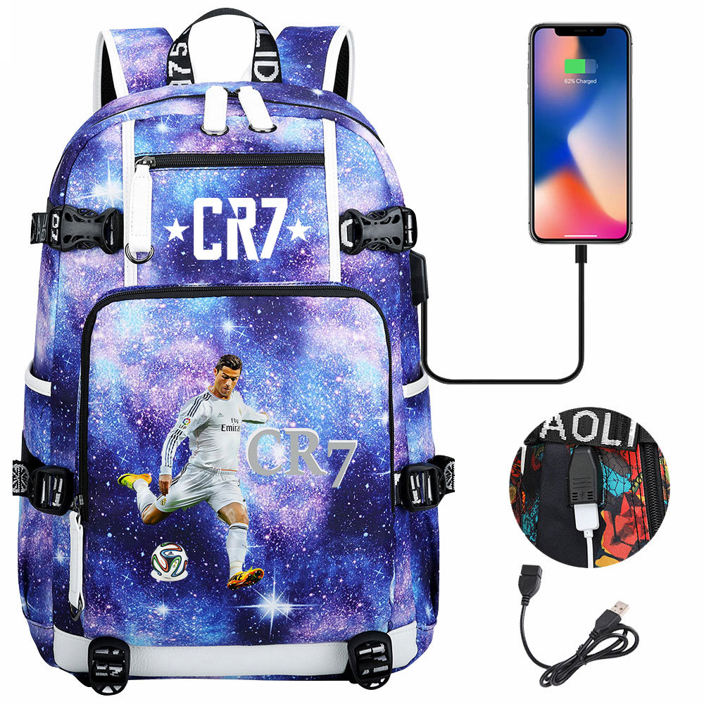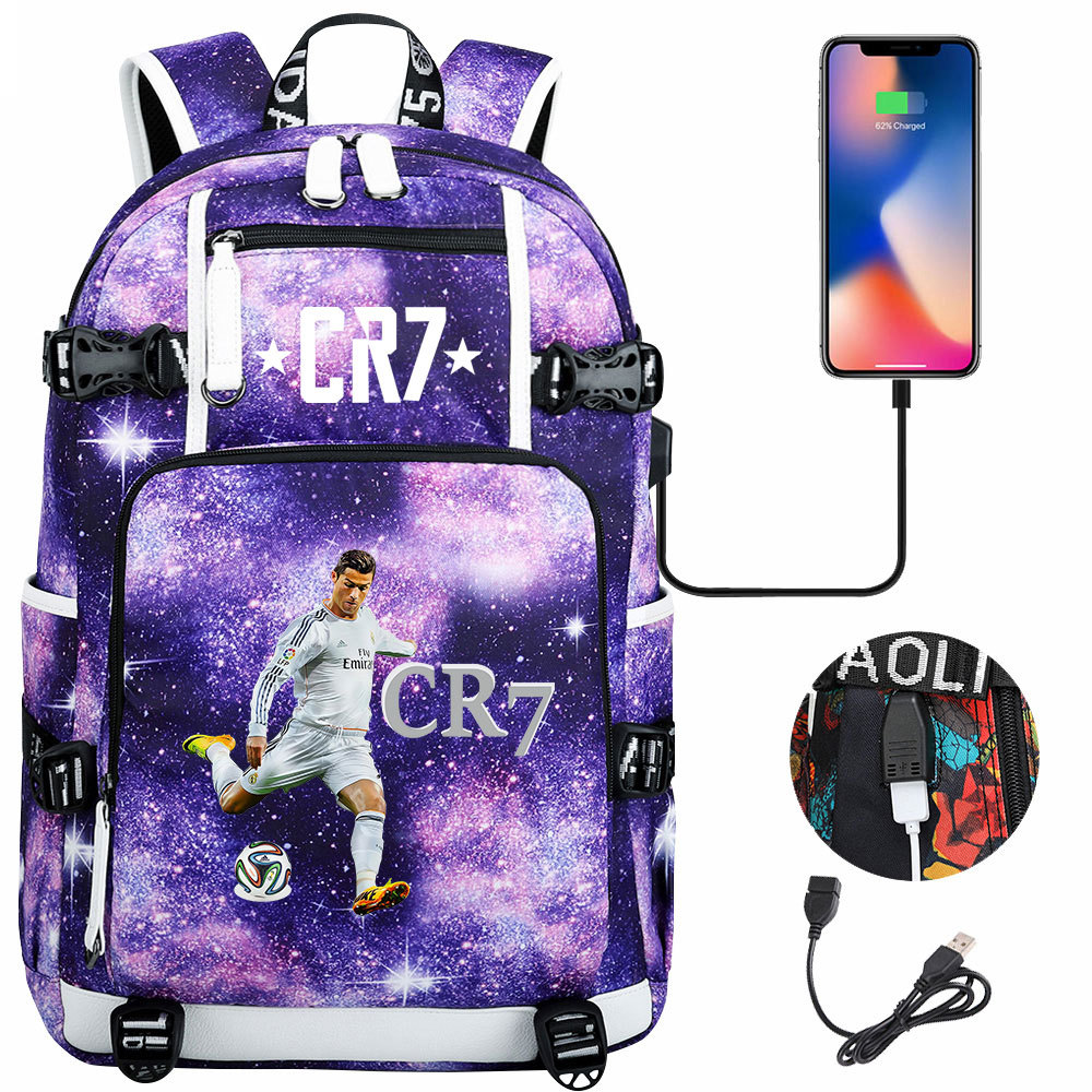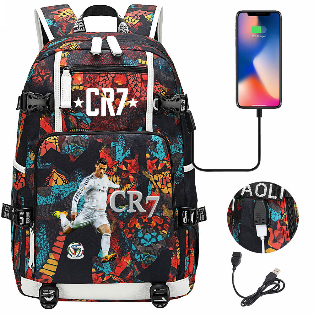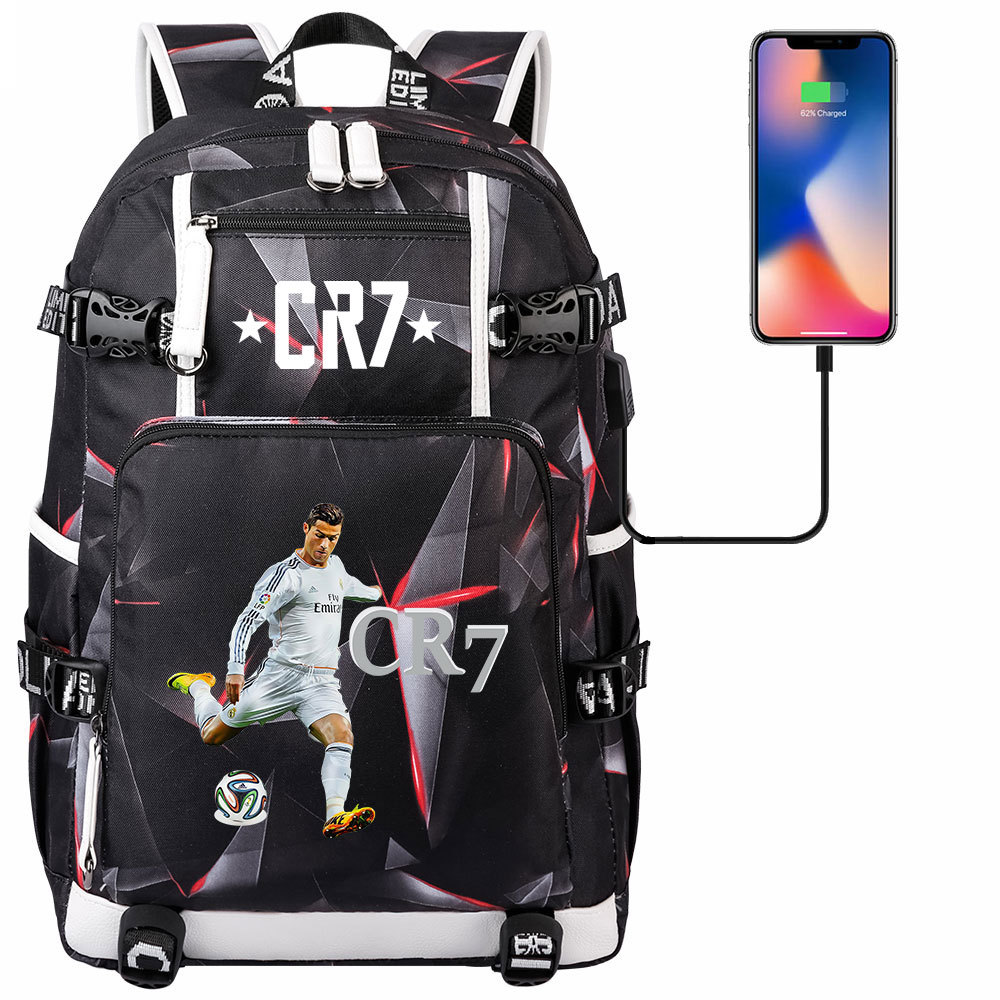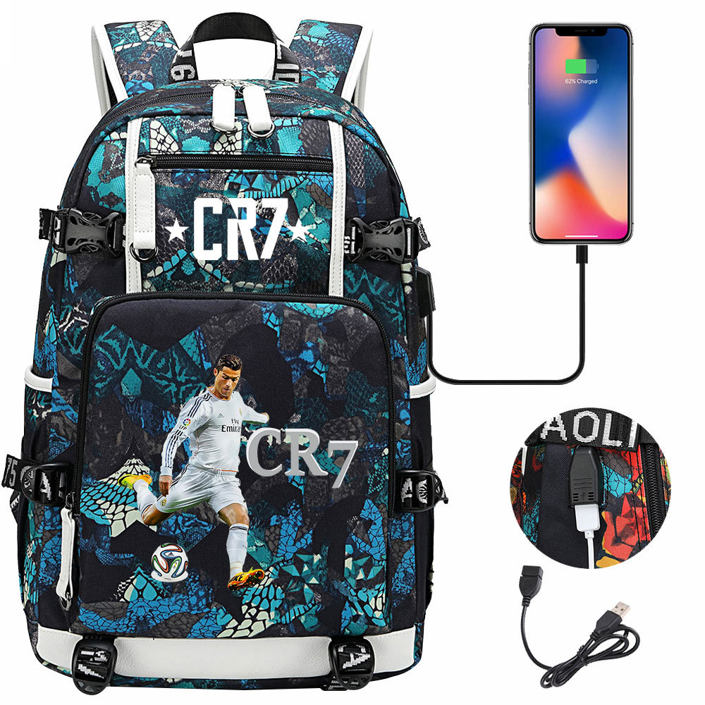 17 축구 스타 크리스티아누 호날두 인쇄 청소년 학생 책가방 남성 및 여성 배낭 레저 여행 배낭