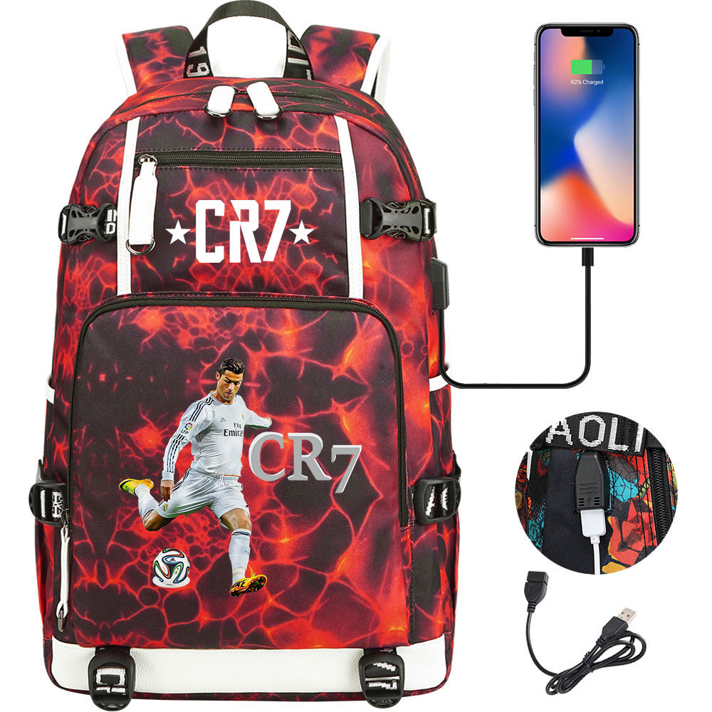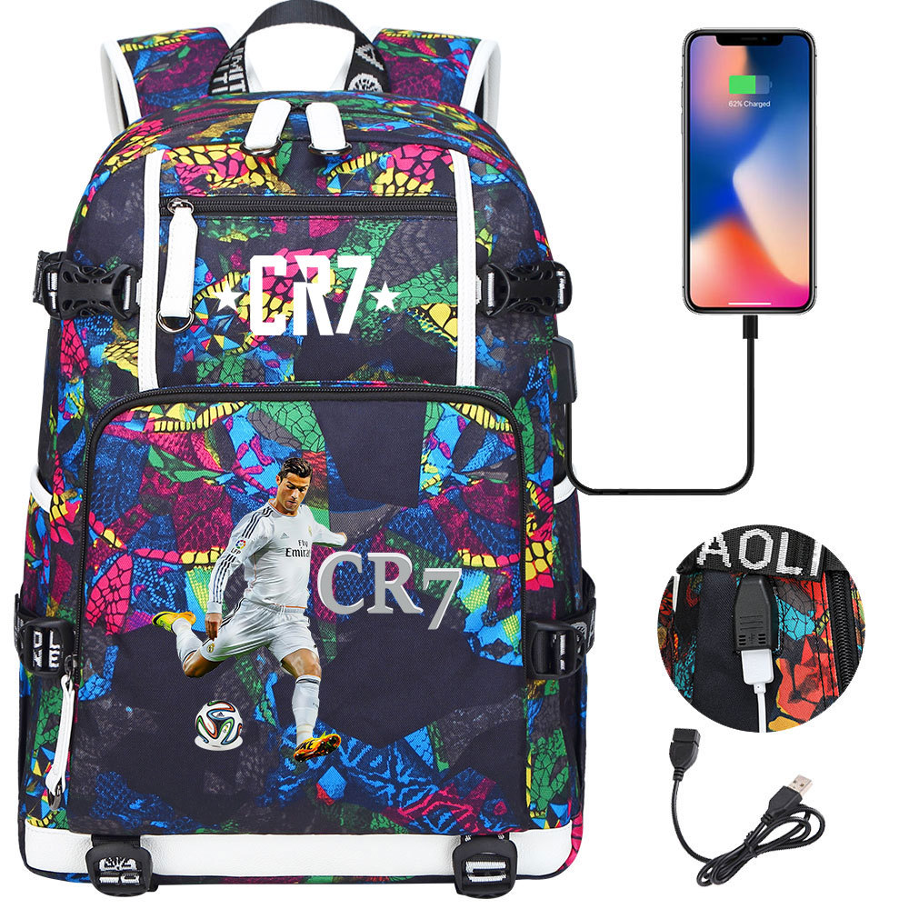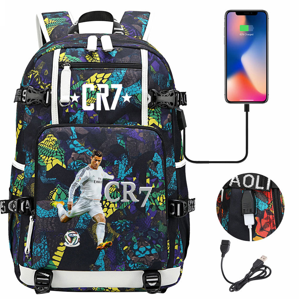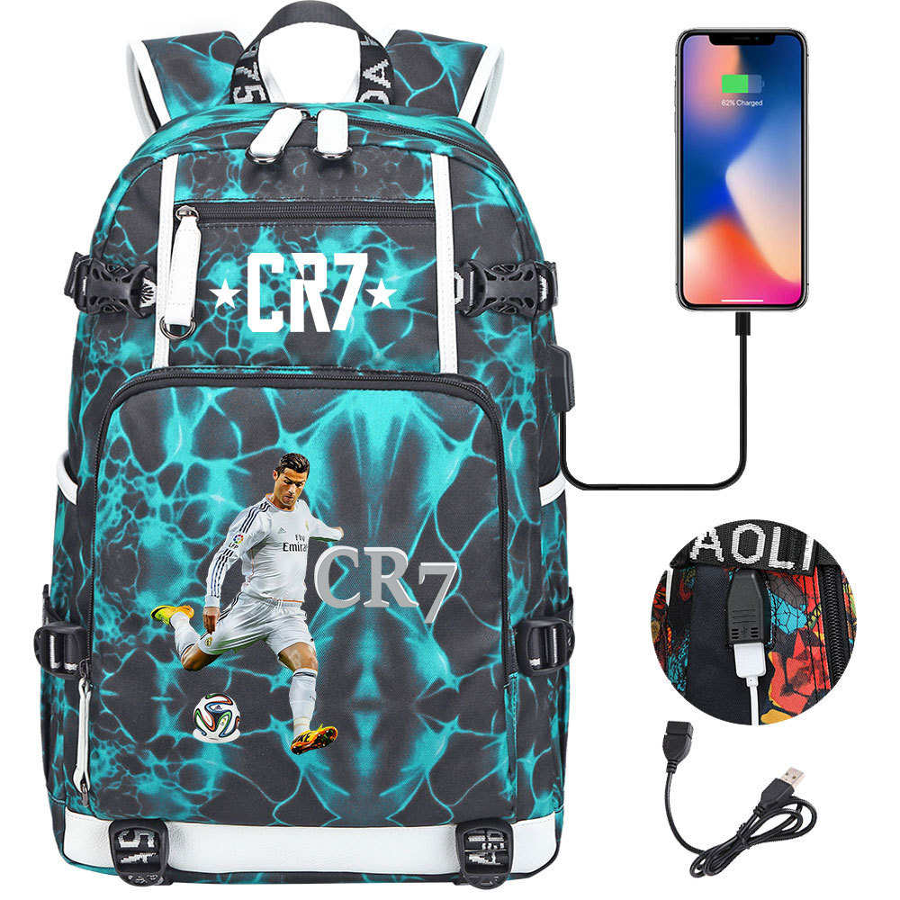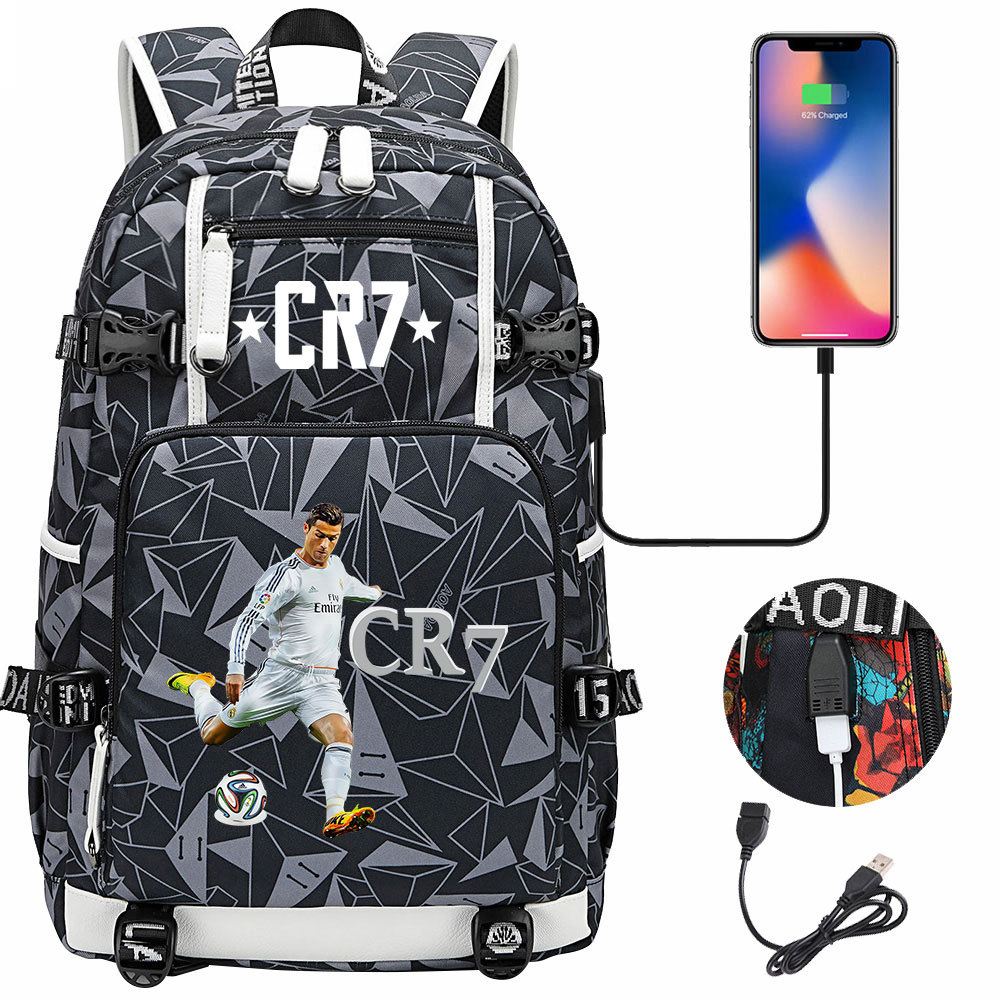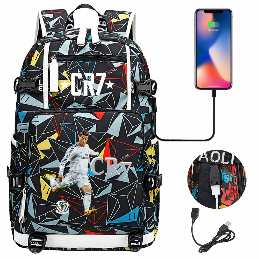 17 축구 스타 크리스티아누 호날두 인쇄 청소년 학생 책가방 남성 및 여성 배낭 레저 여행 배낭