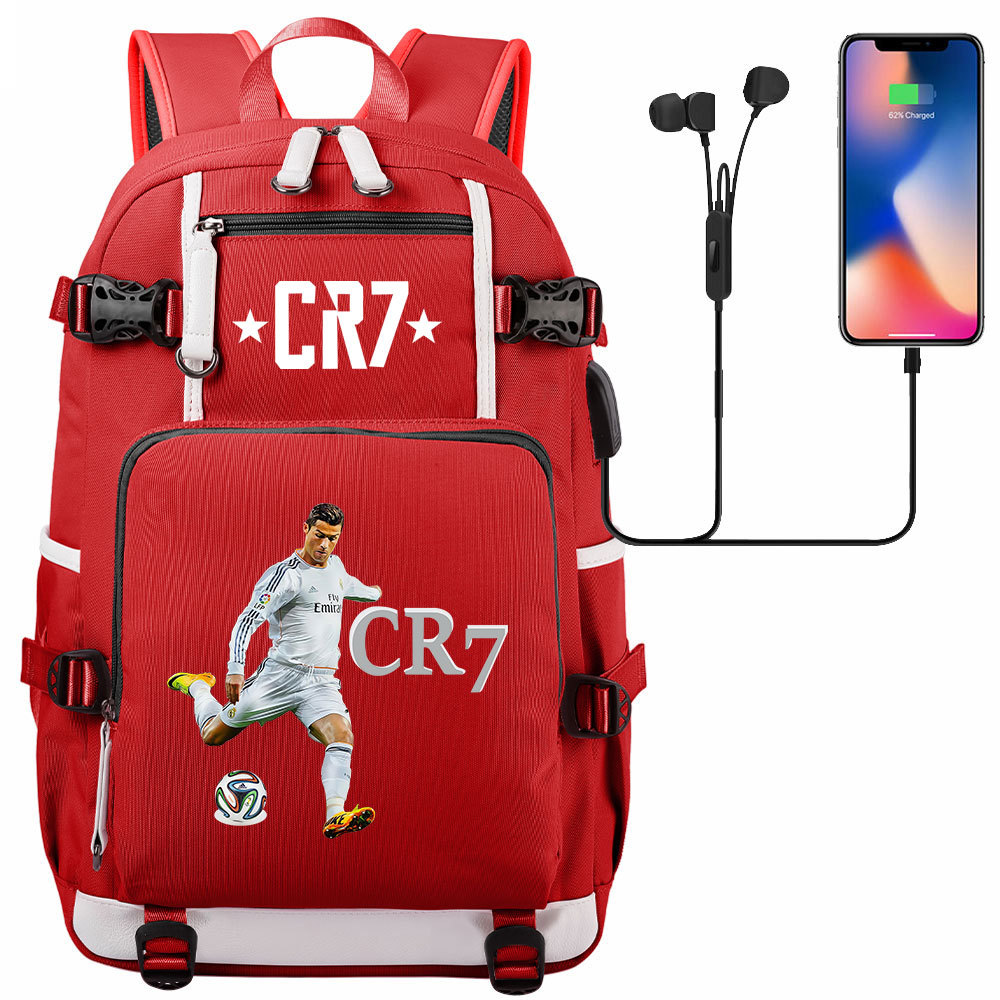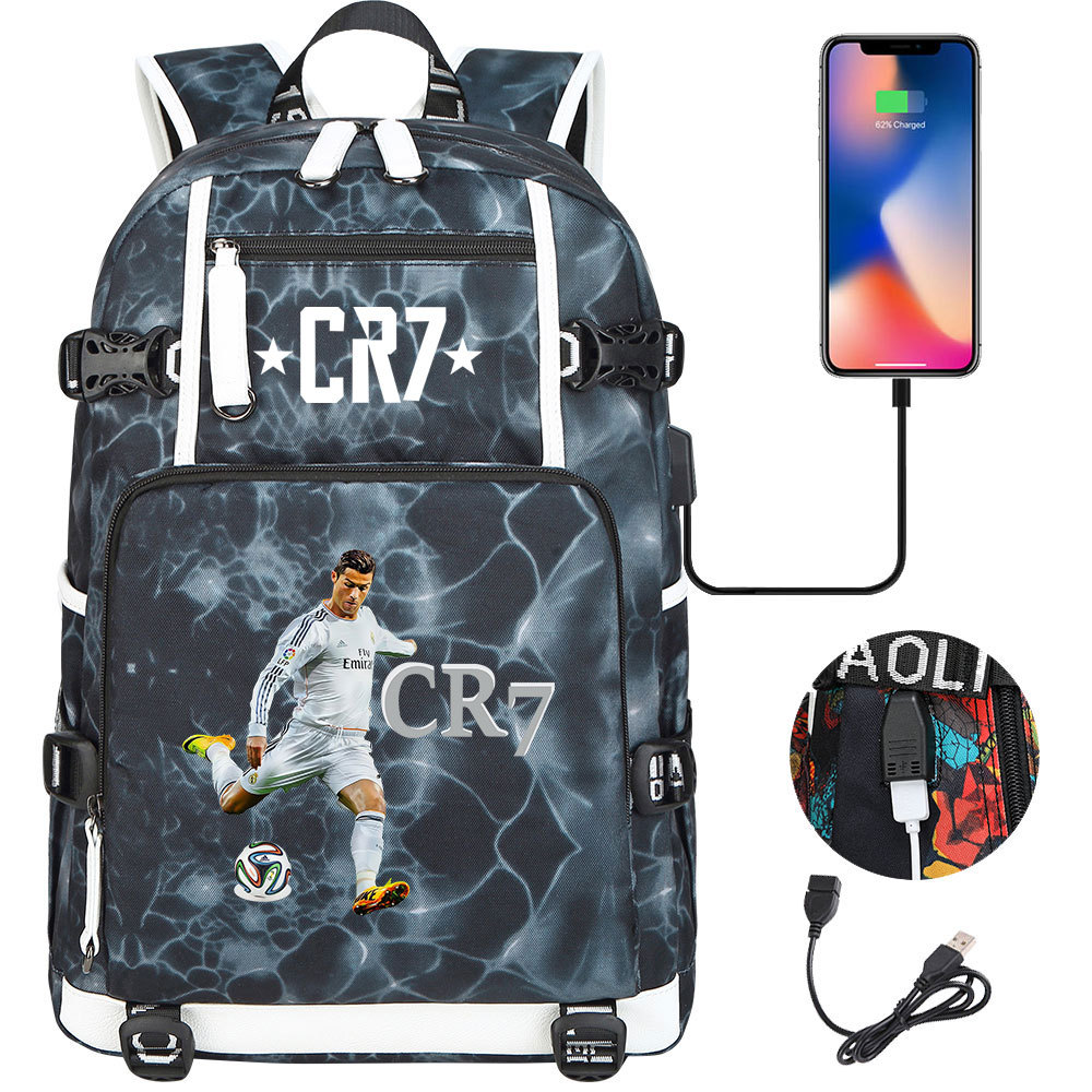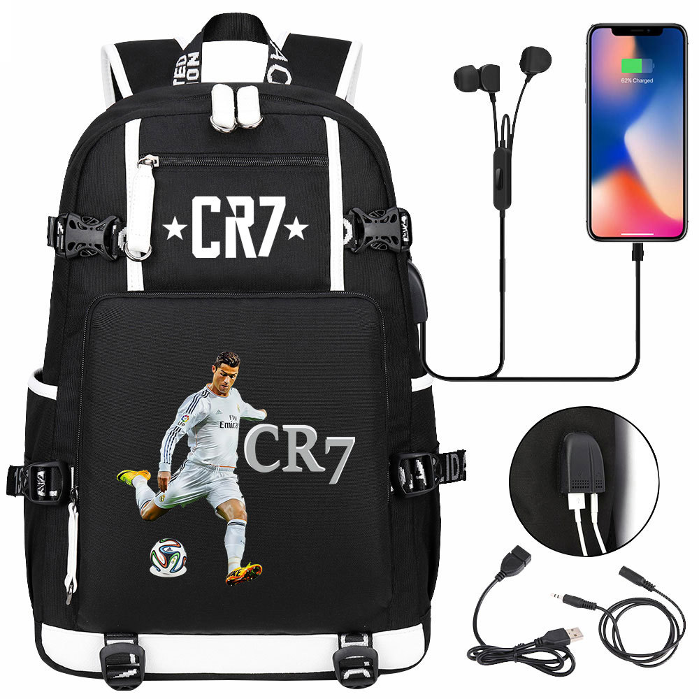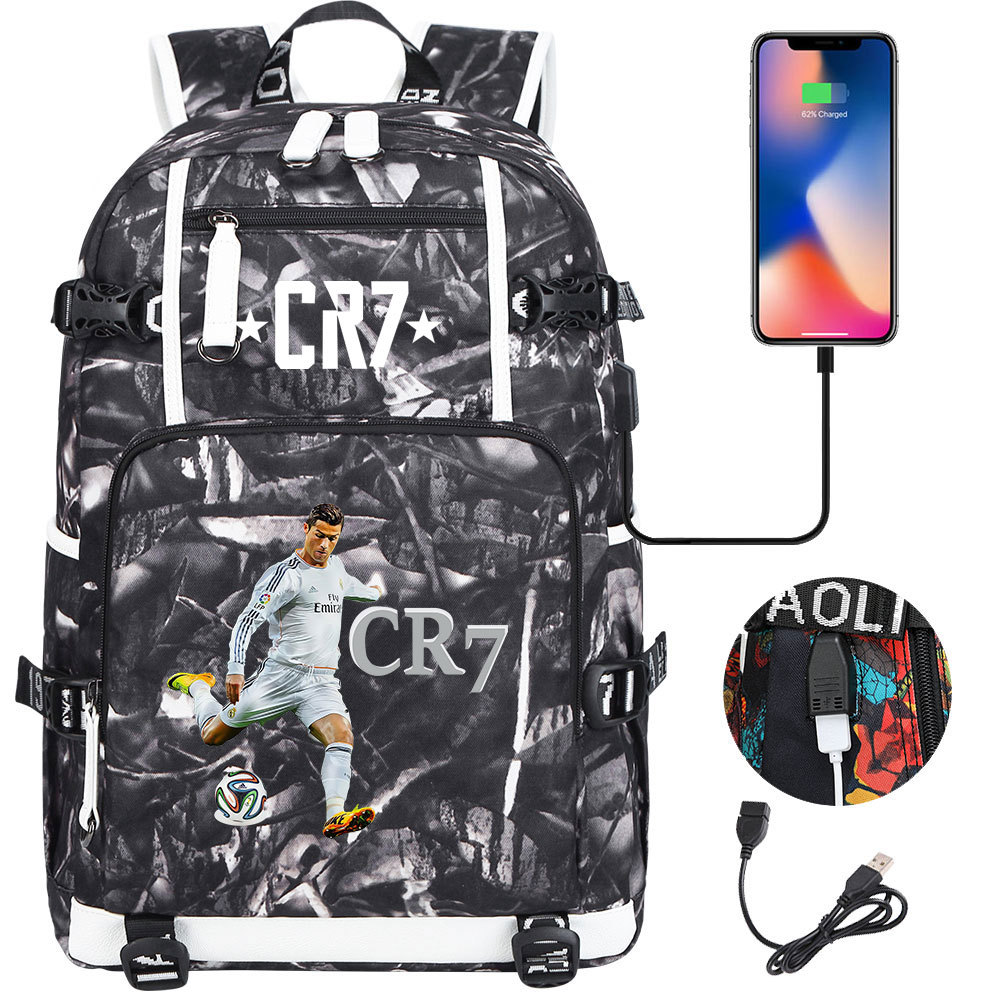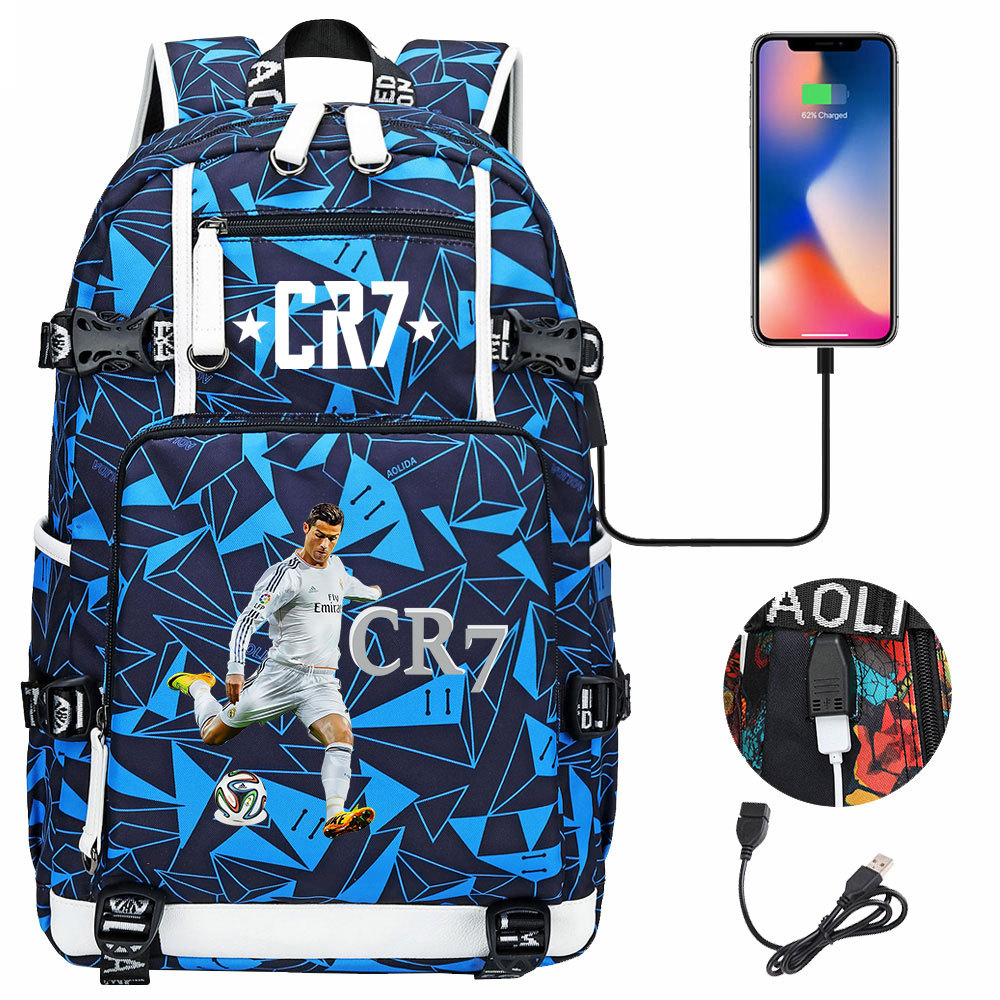 17 축구 스타 크리스티아누 호날두 인쇄 청소년 학생 책가방 남성 및 여성 배낭 레저 여행 배낭