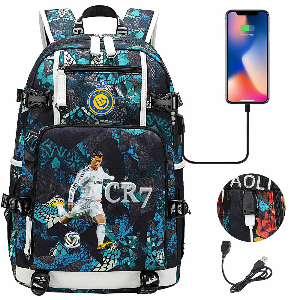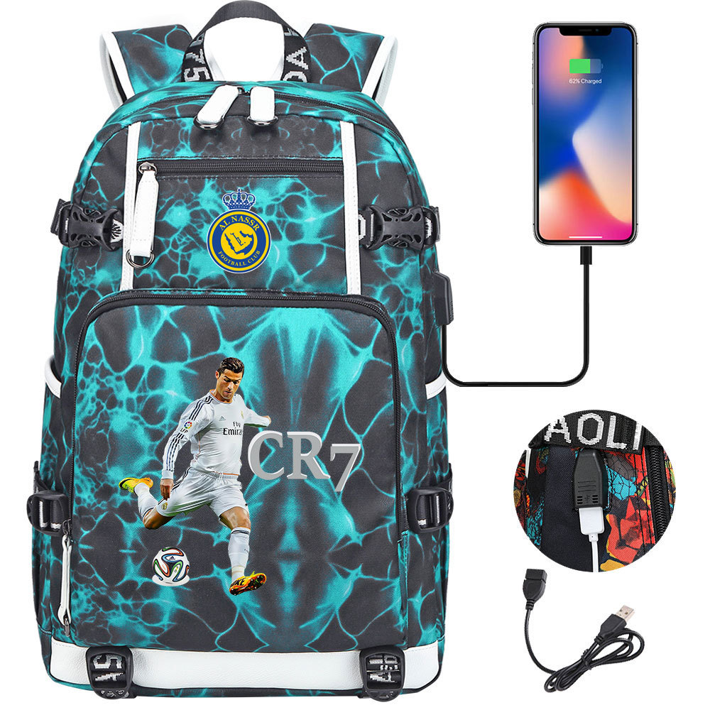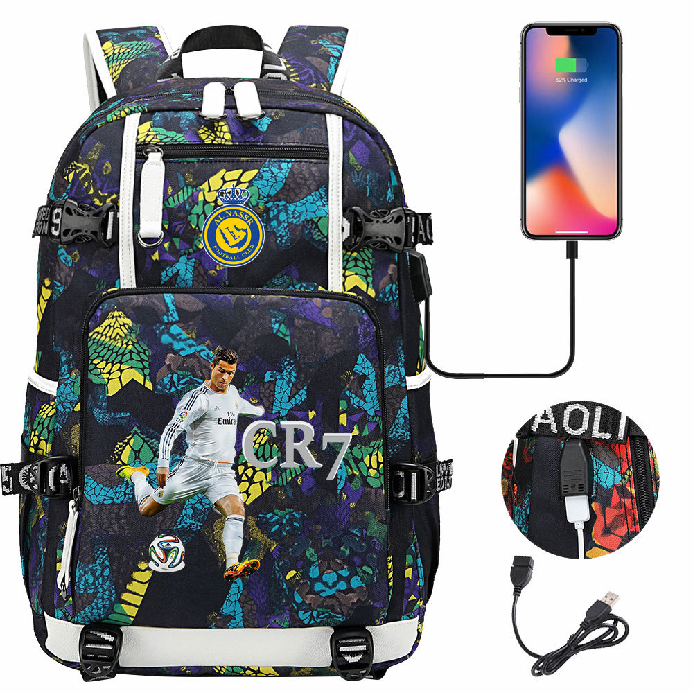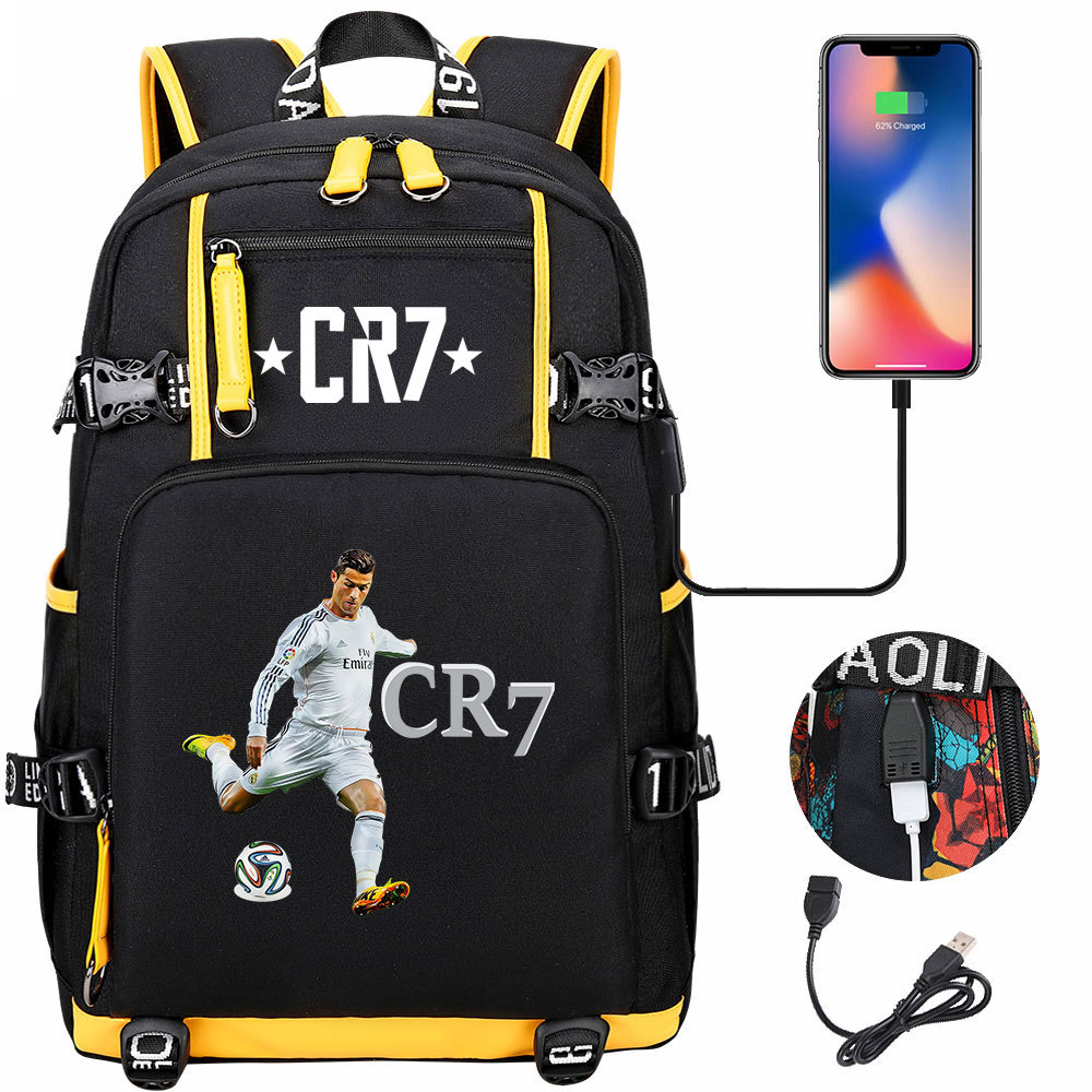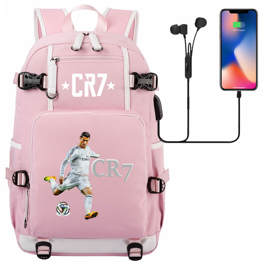 17 축구 스타 크리스티아누 호날두 인쇄 청소년 학생 책가방 남성 및 여성 배낭 레저 여행 배낭