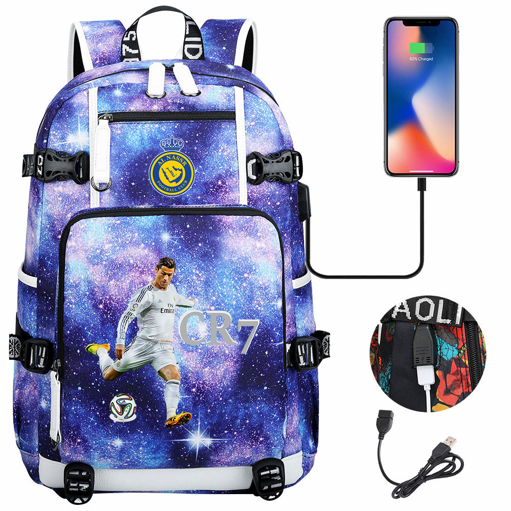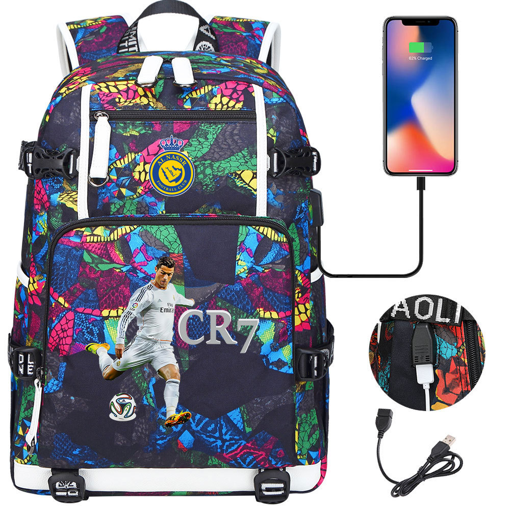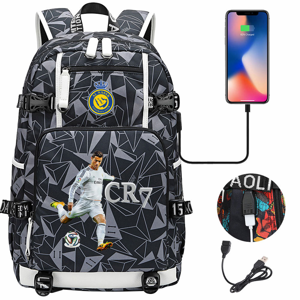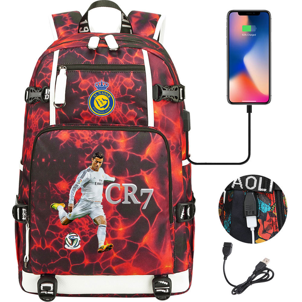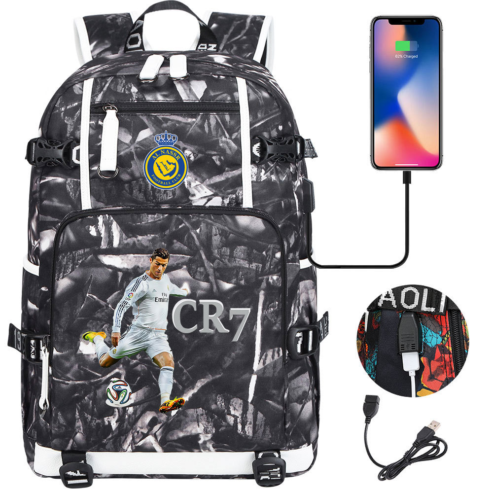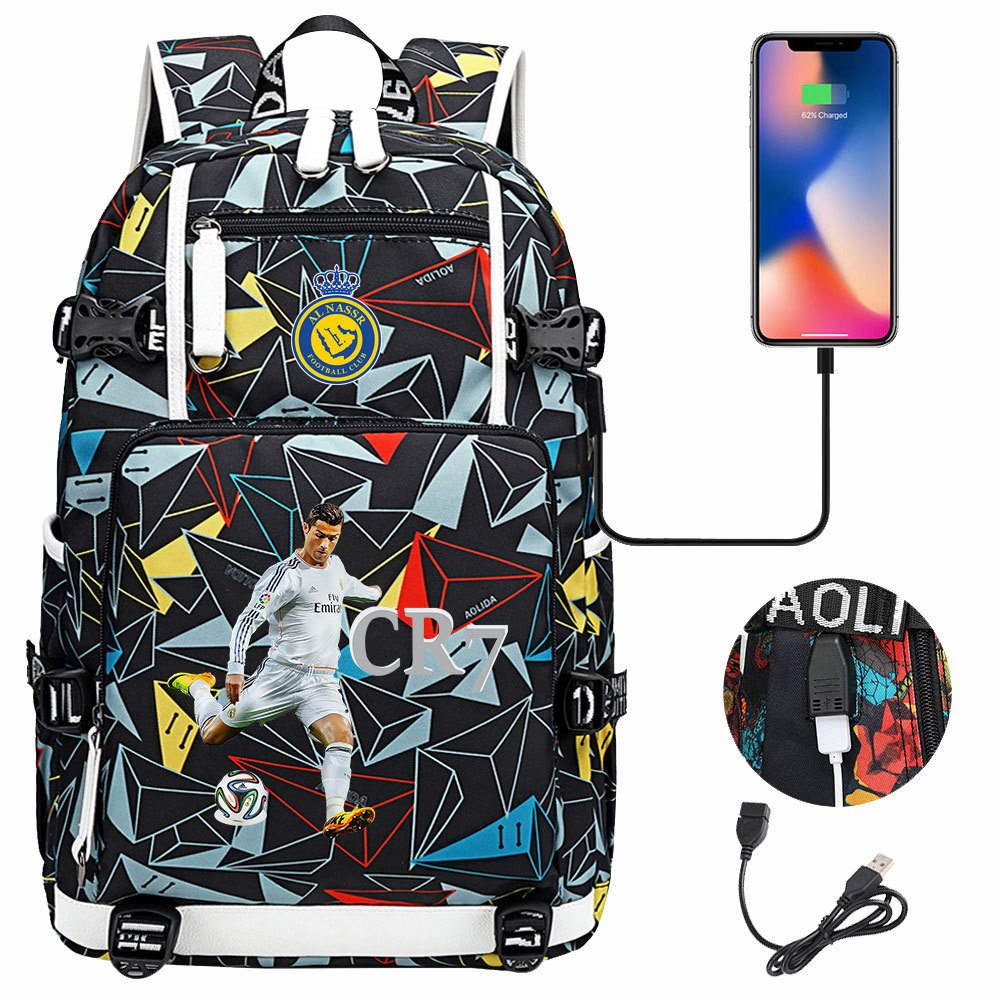 17 축구 스타 크리스티아누 호날두 인쇄 청소년 학생 책가방 남성 및 여성 배낭 레저 여행 배낭