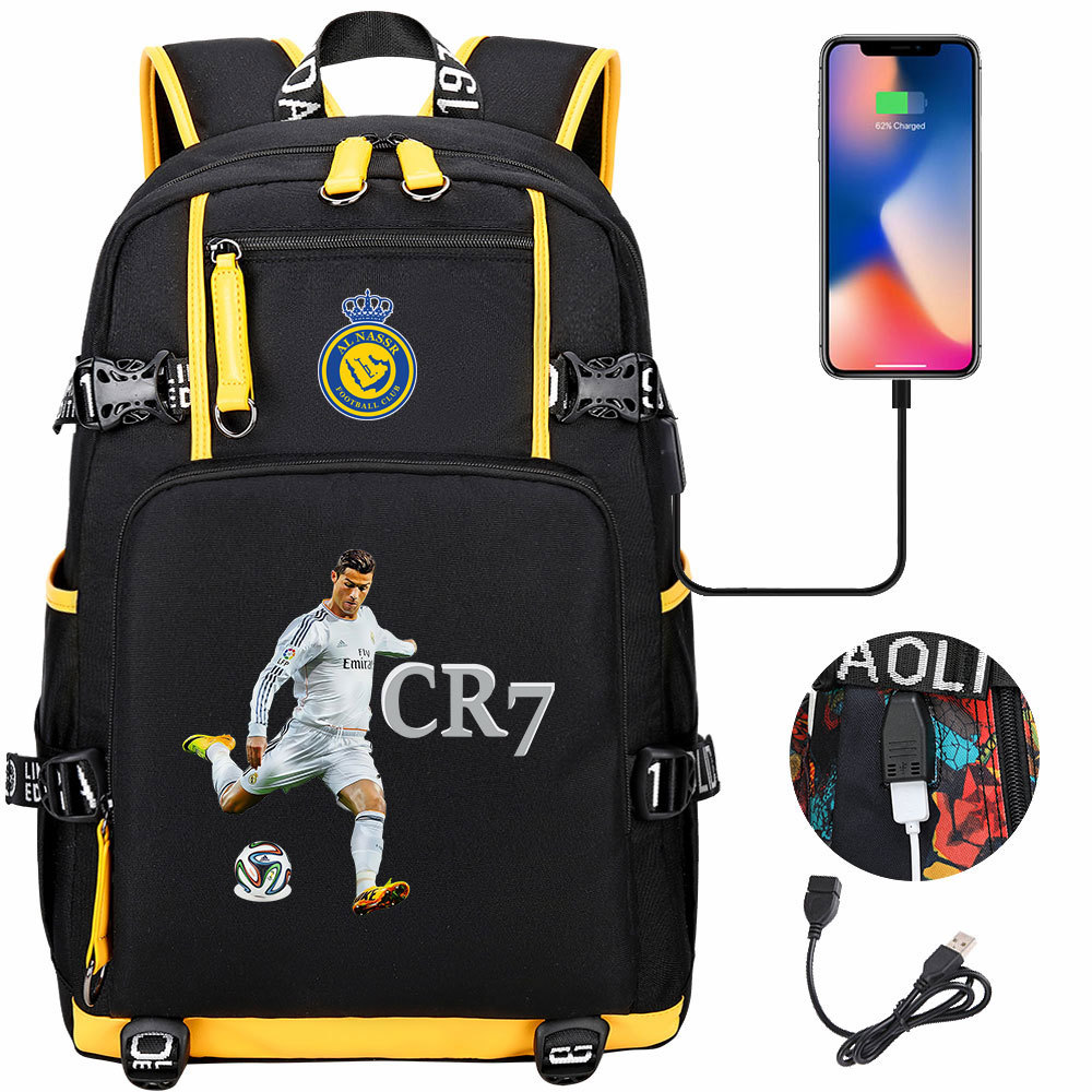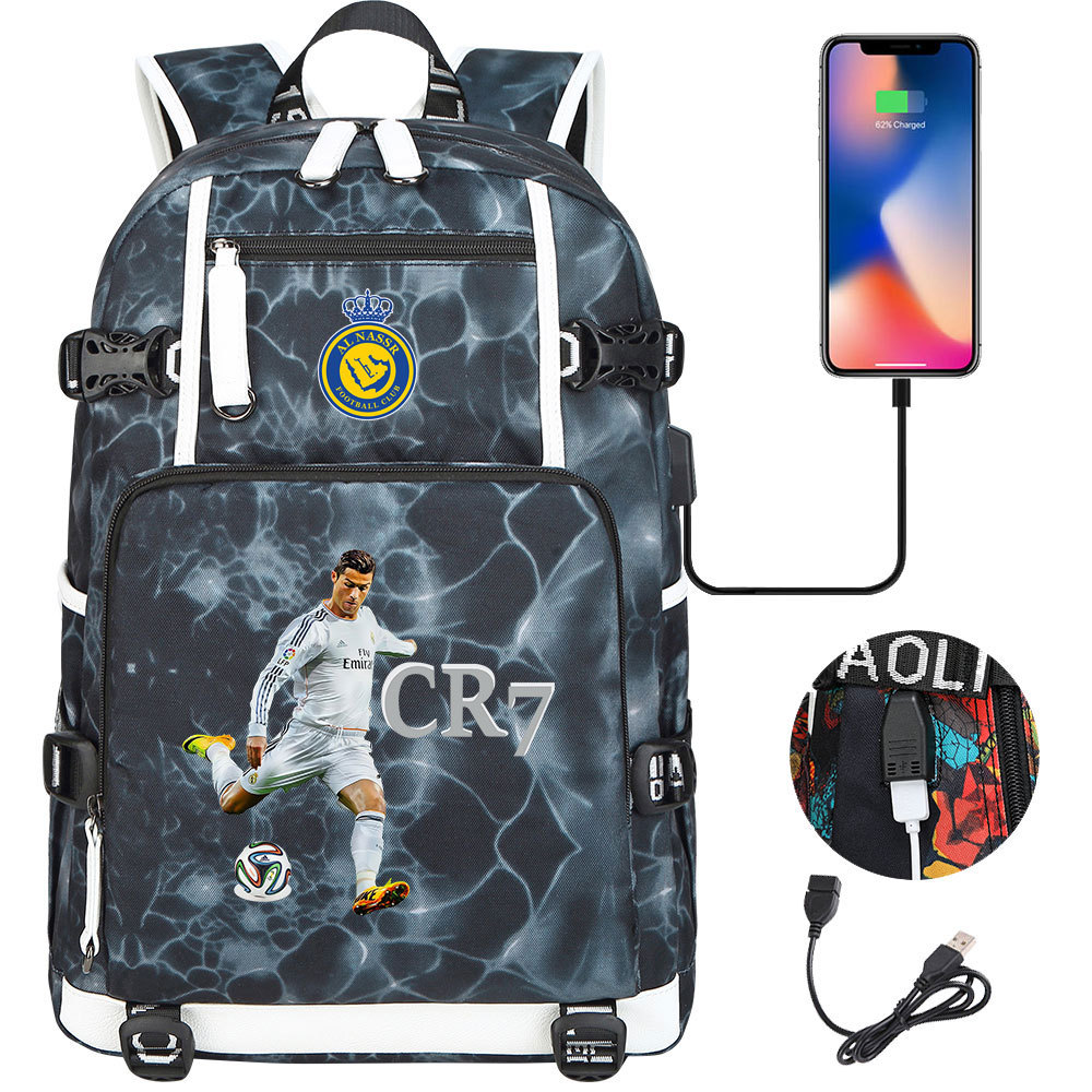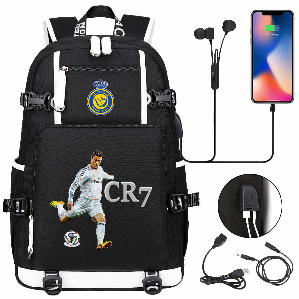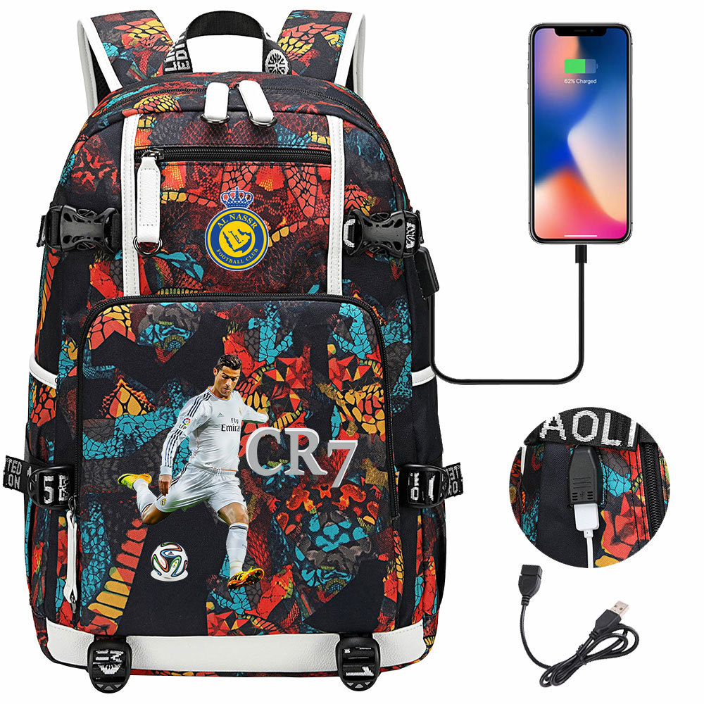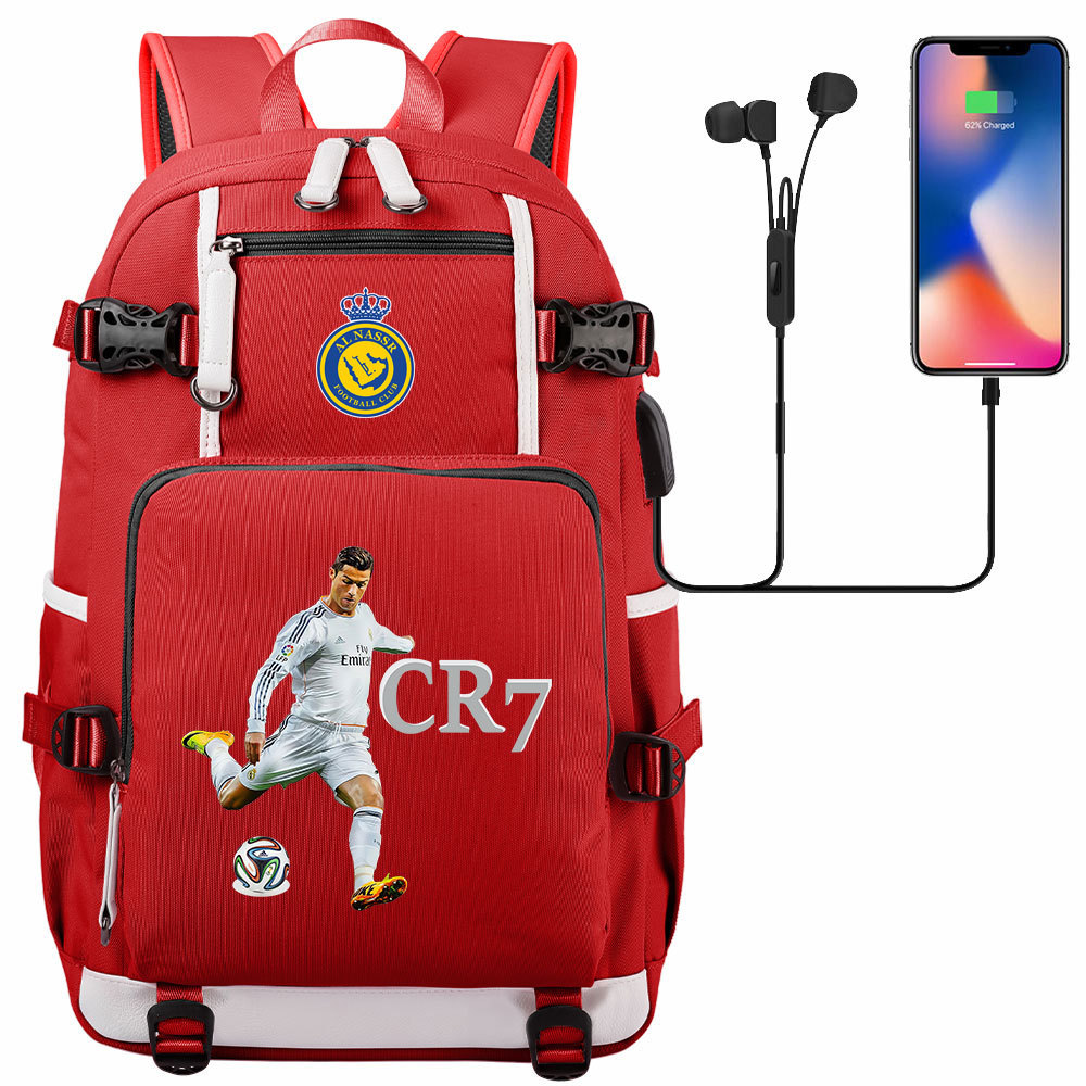 17 축구 스타 크리스티아누 호날두 인쇄 청소년 학생 책가방 남성 및 여성 배낭 레저 여행 배낭