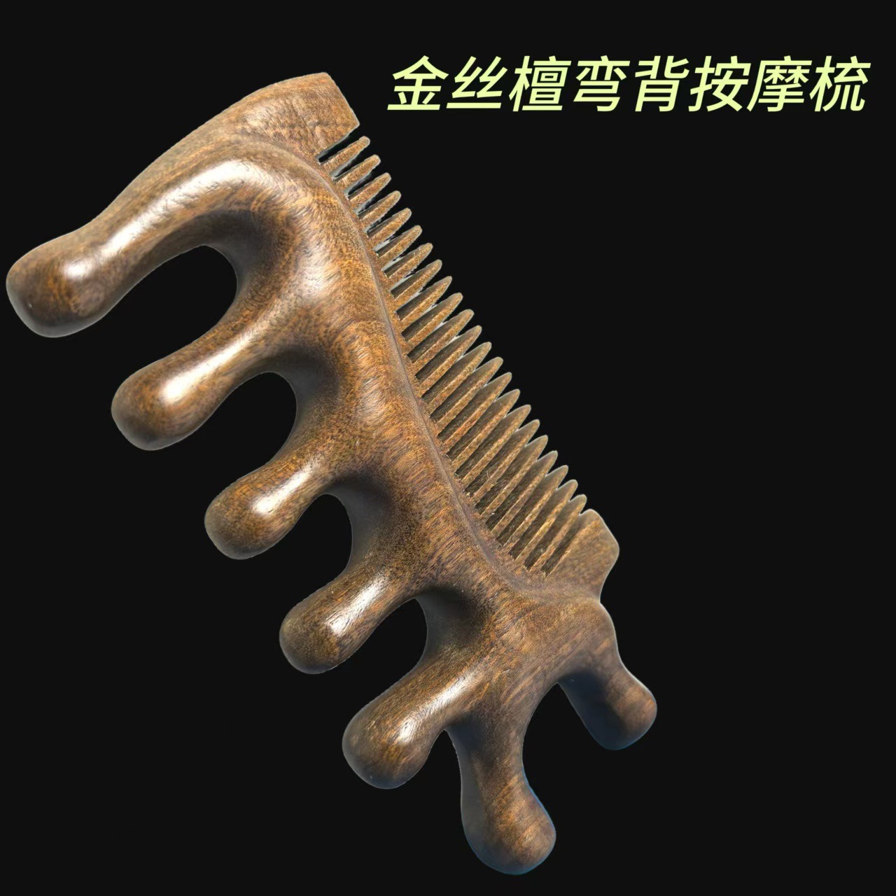 • 이중 목적 마사지 빗을 긁는 황금 실크 샌달 우드 코