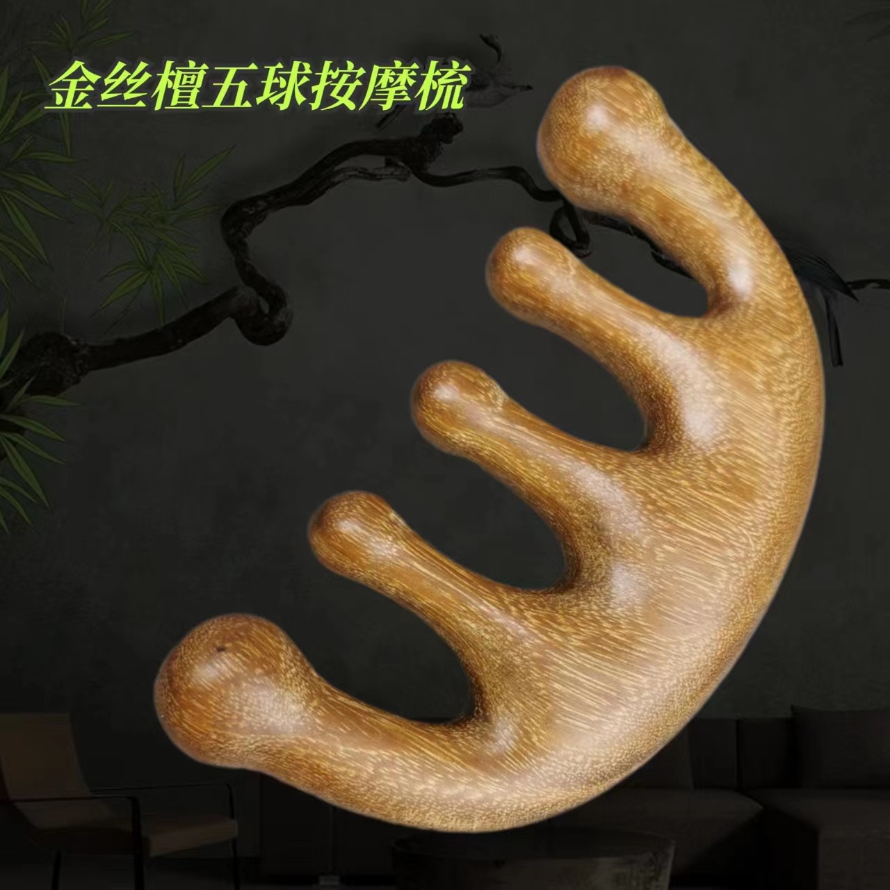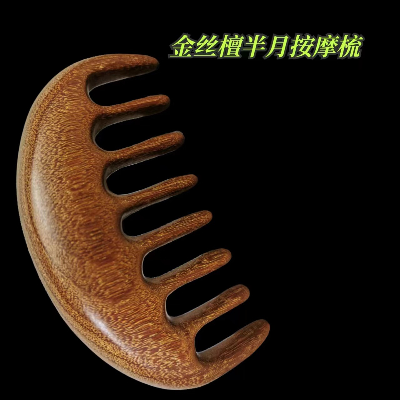 • 황금 실크 백단 반 달 마사지 빗