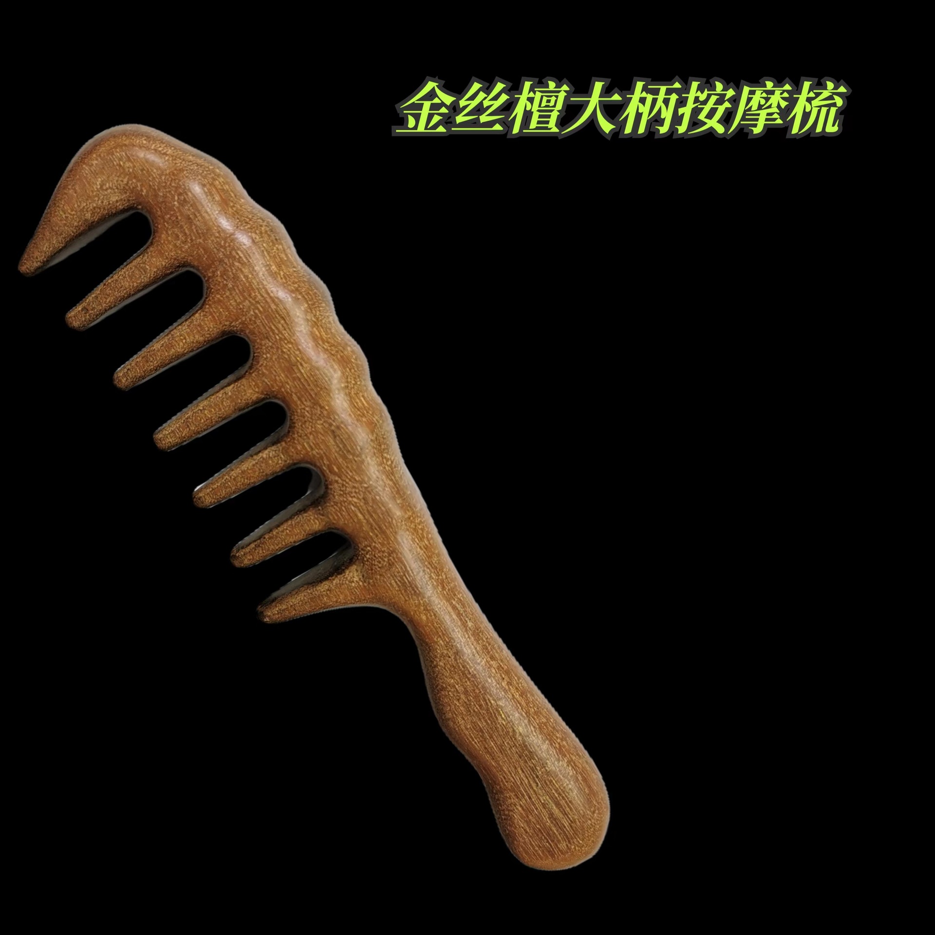 • 황금 실크 백단향 큰 손잡이 마사지 빗