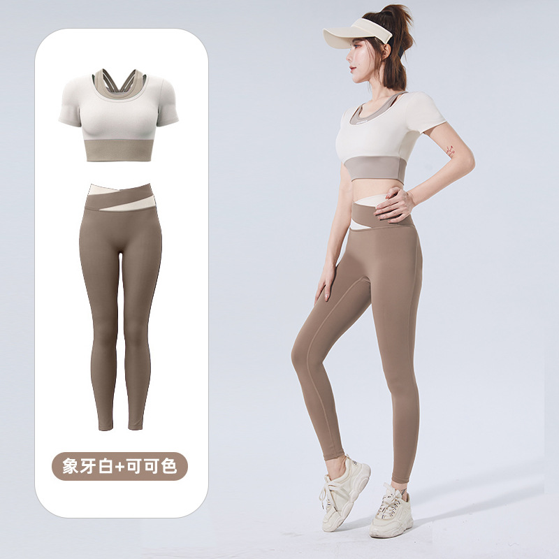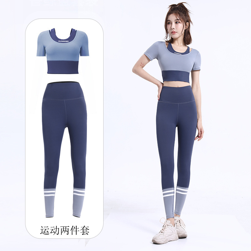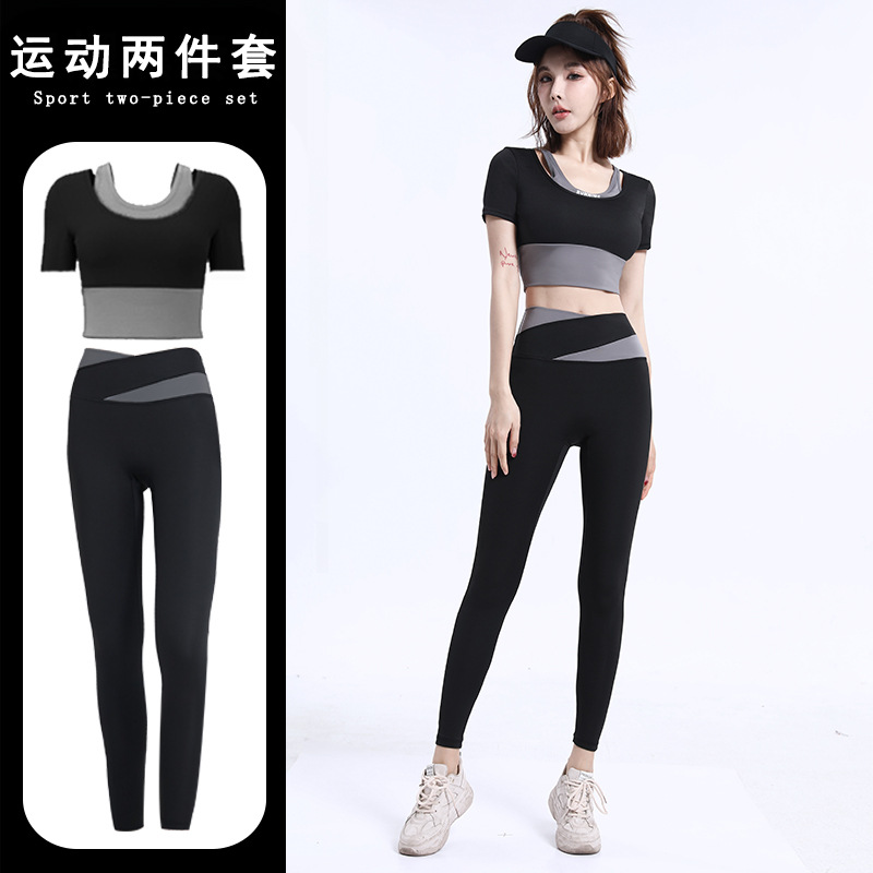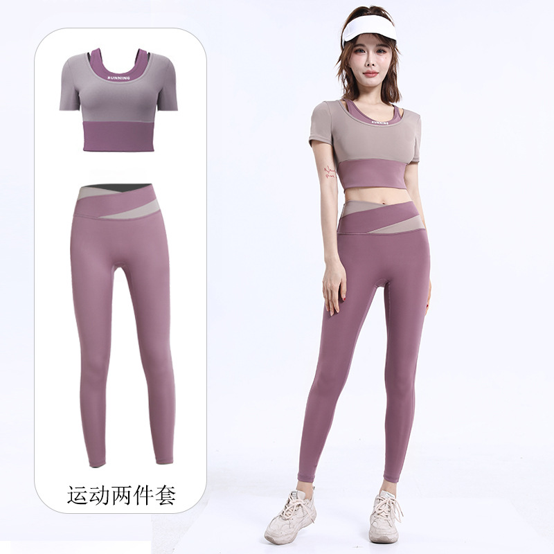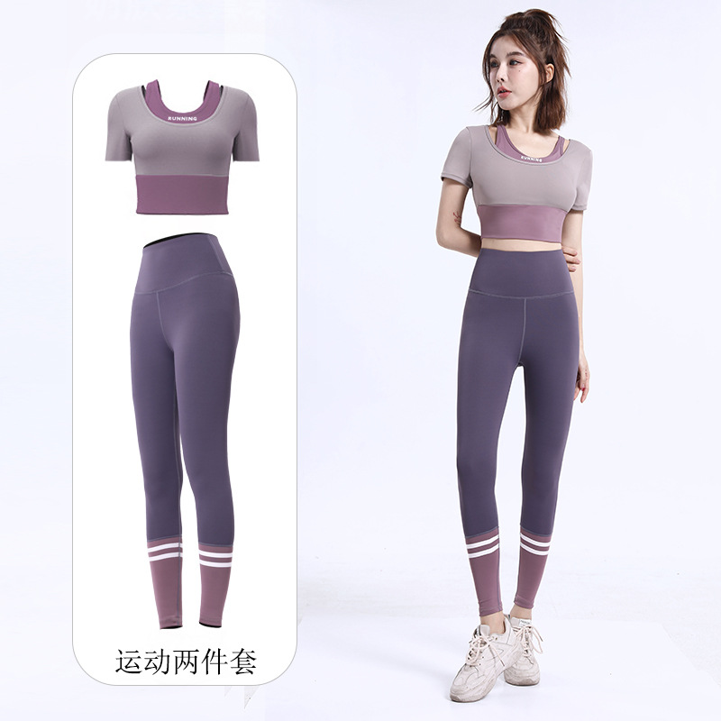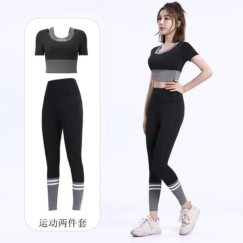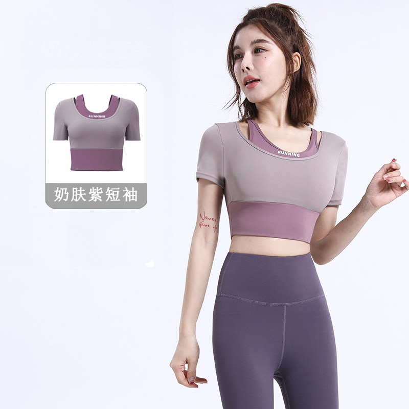 여성용 요가복 2026년 신상품 가슴 패드가 있는 런닝용 슬리밍 속건 스포츠 요가탑 세트 반팔 피트니스복