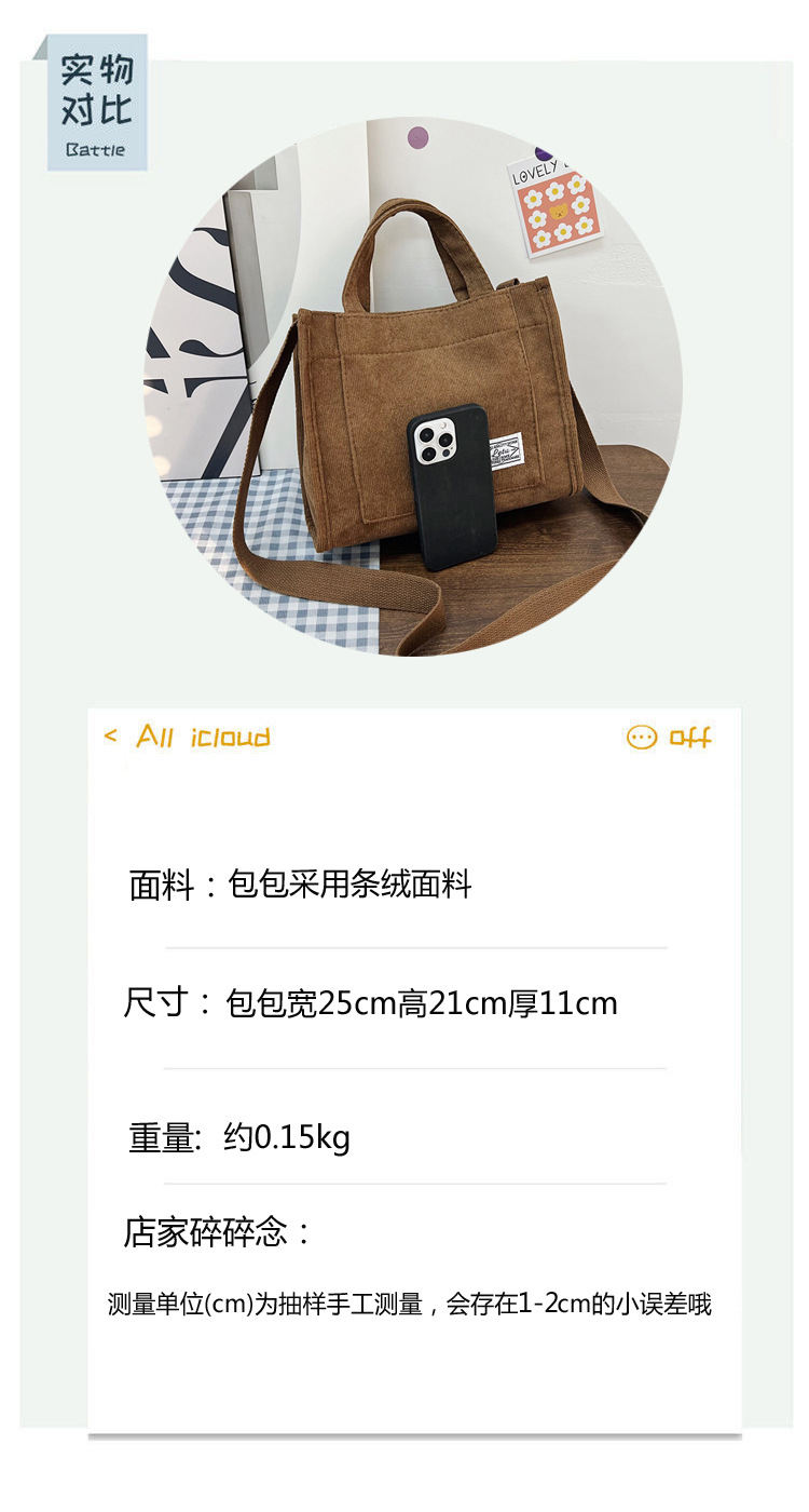 2022 새로운 코듀로이 숄더 도시락 가방 간단한 대각선 가방의 한국어 버전 헤어 세대의 국경 트렌드스토어 가기
