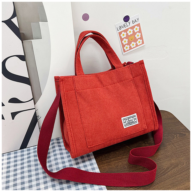 2022 새로운 코듀로이 숄더 도시락 가방 간단한 대각선 가방의 한국어 버전 헤어 세대의 국경 트렌드