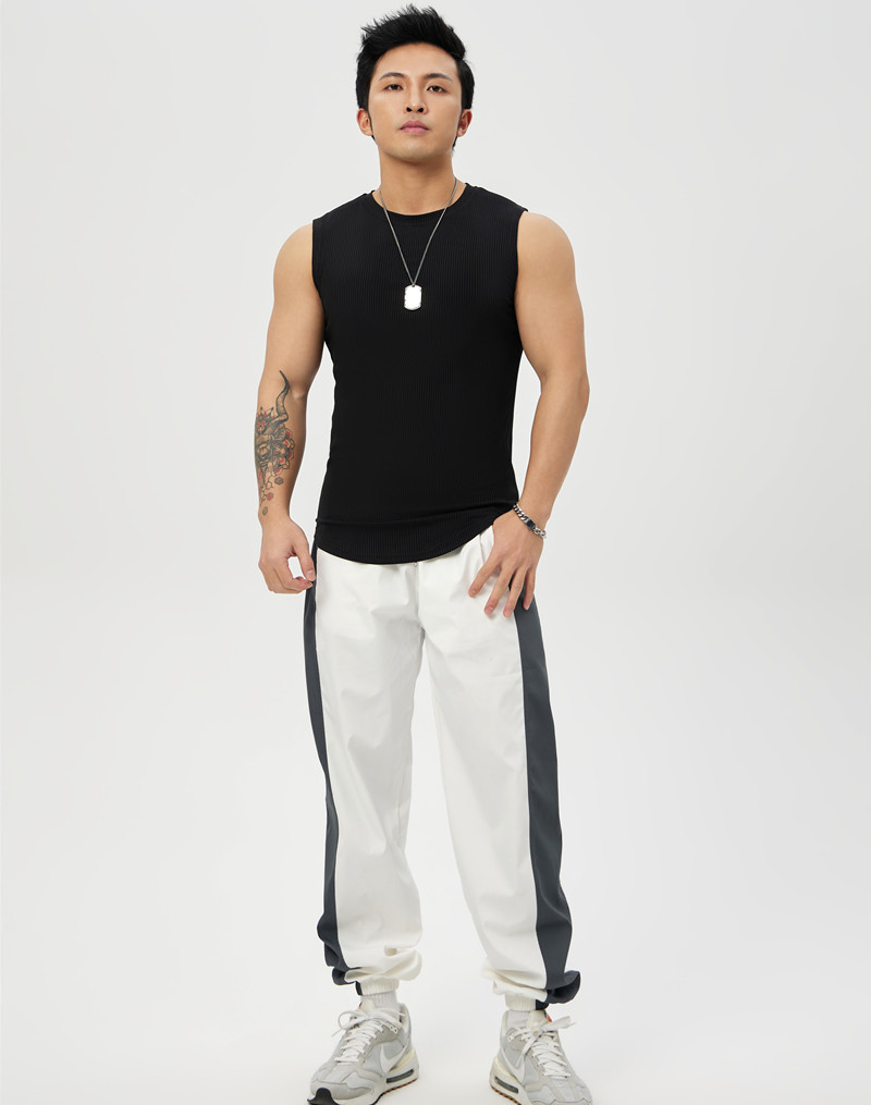 스포츠 조끼 남성용 속건 민소매 조끼 스트라이프 피트니스 티셔츠 스트레치 러닝 트레이닝 농구 슬림핏 베이스 셔츠스토어 가기