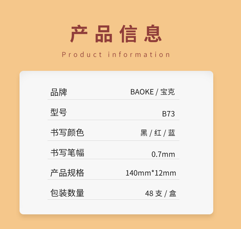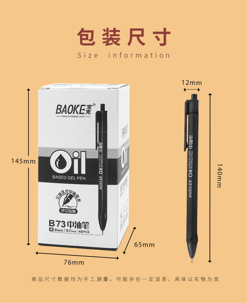 Baoke B73 중유 펜 0.7mm 프레스 반 니들 튜브 볼펜 학생 볼펜 비즈니스 프레스 볼펜스토어 가기
