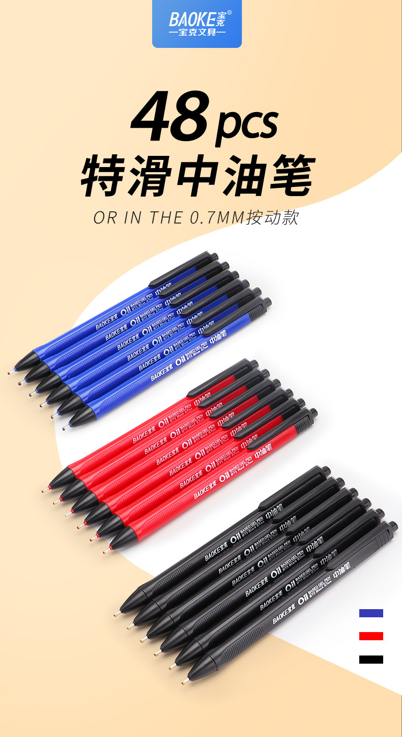 Baoke B73 중유 펜 0.7mm 프레스 반 니들 튜브 볼펜 학생 볼펜 비즈니스 프레스 볼펜