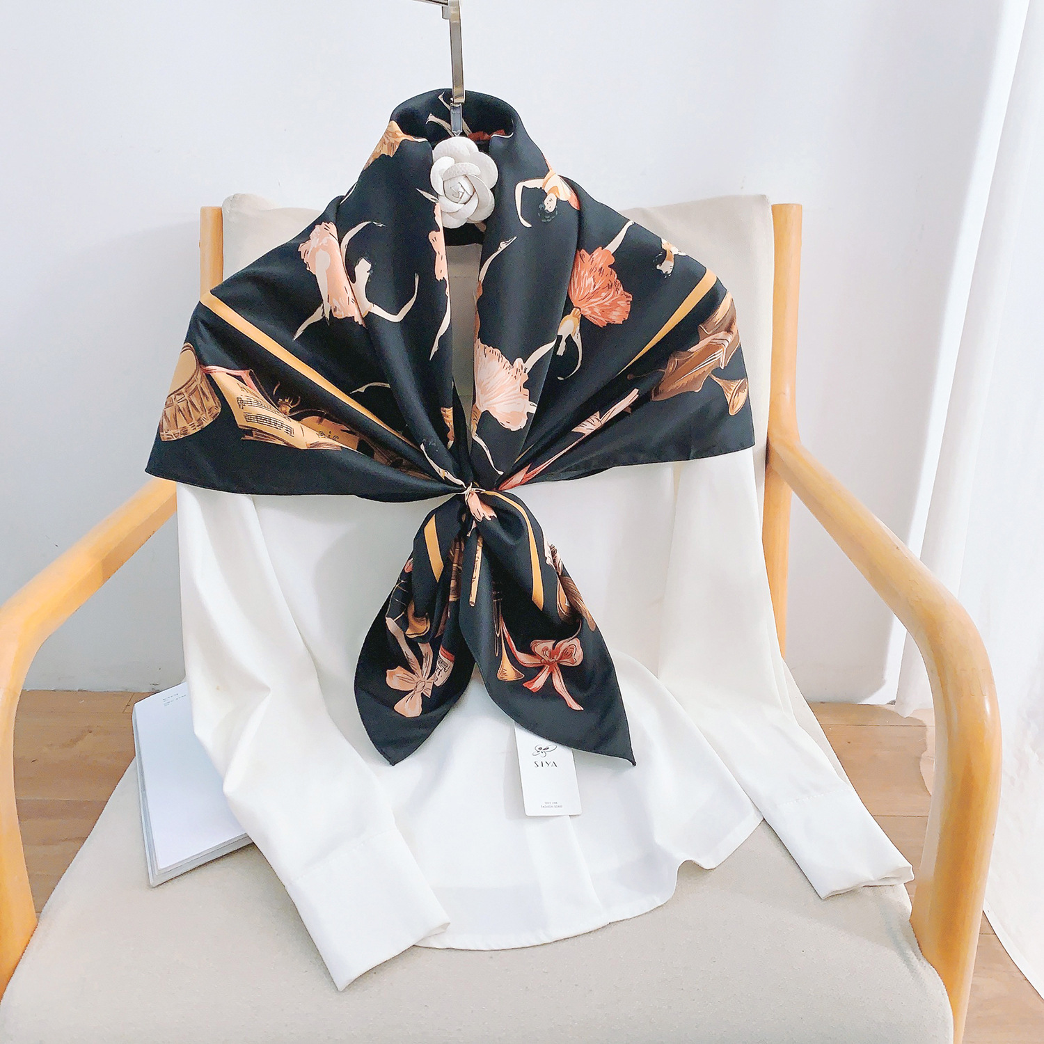 댄서 그림 유럽과 미국의 새로운 능직 실크 인쇄 스카프 여성의 90cm 대형 사각 스카프 외국 무역 자외선 차단제 숄 스카프 도매
