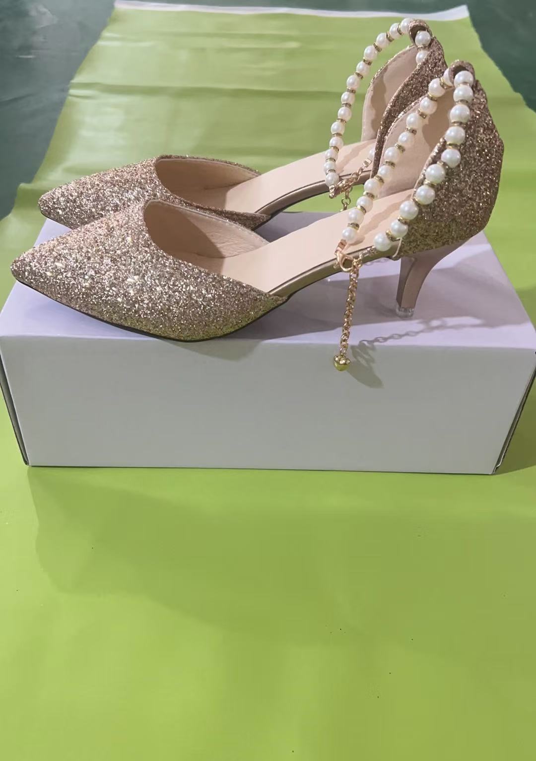 韩版细跟尖头高跟鞋珍珠凉鞋