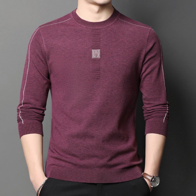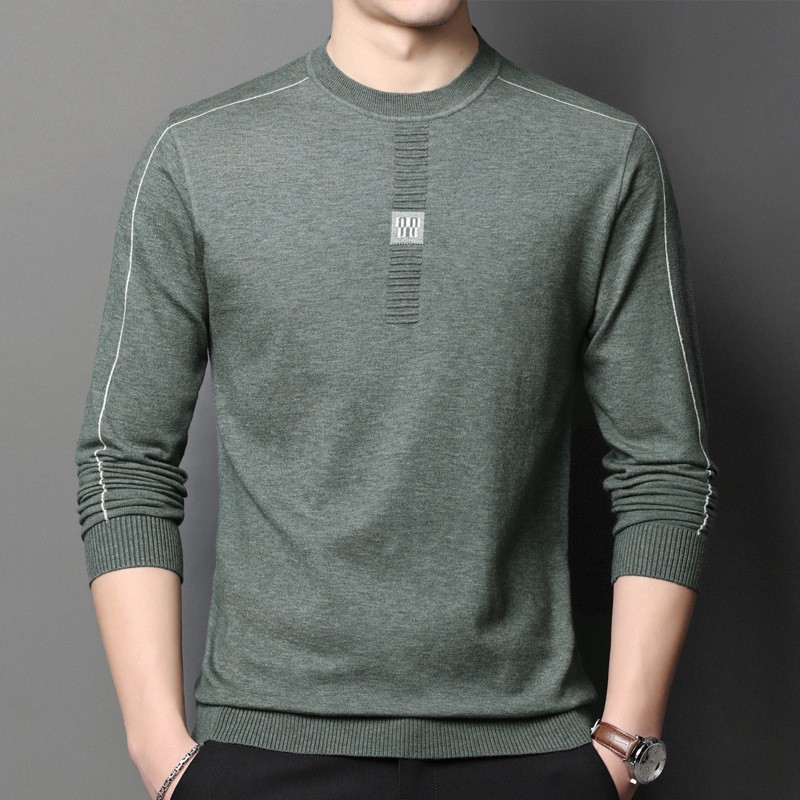 공장 직접 긴 소매 니트 티셔츠 남성용 봄과 가을 새로운베이스 셔츠 단색 스웨터 얇은 울 스웨터 라운드 넥