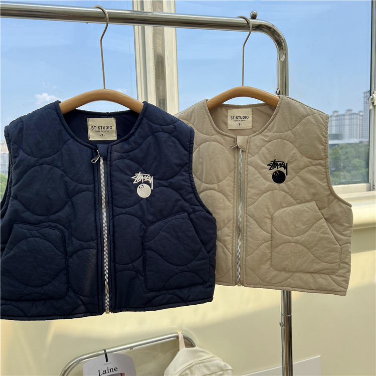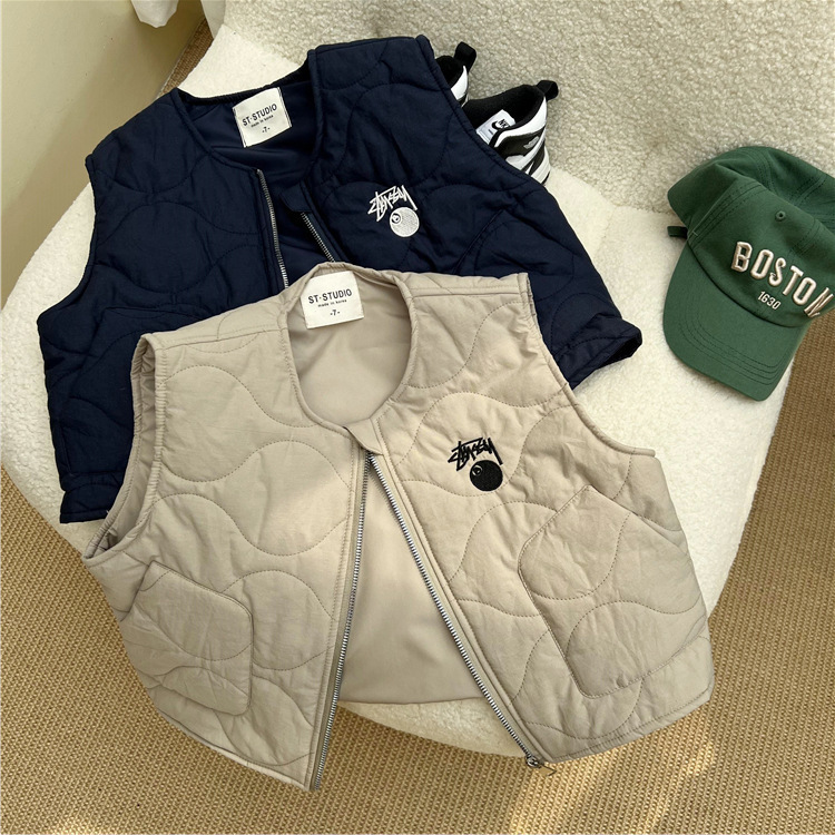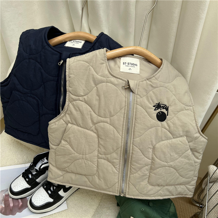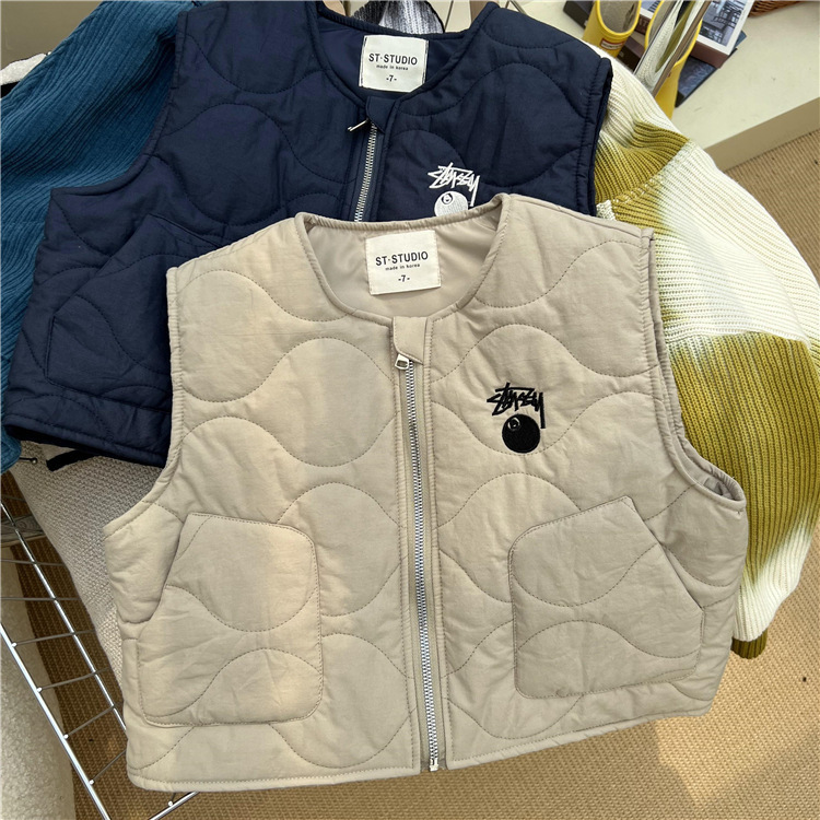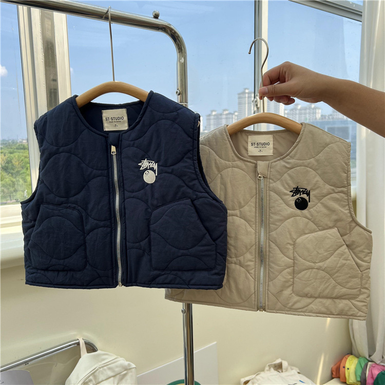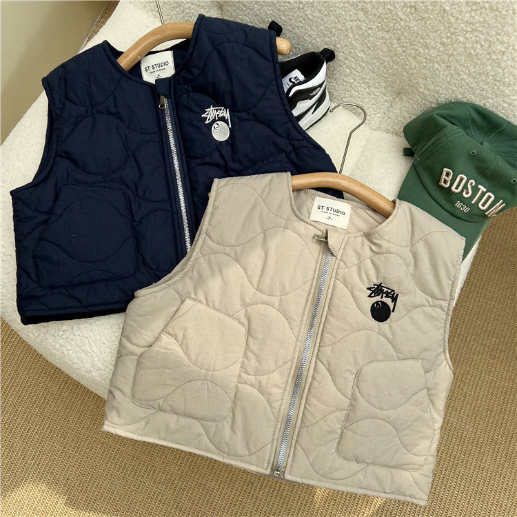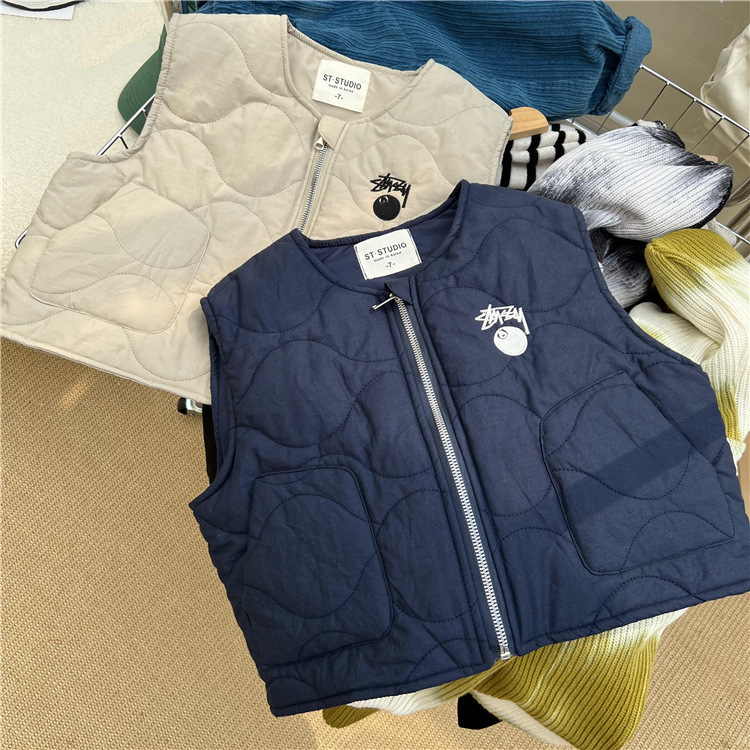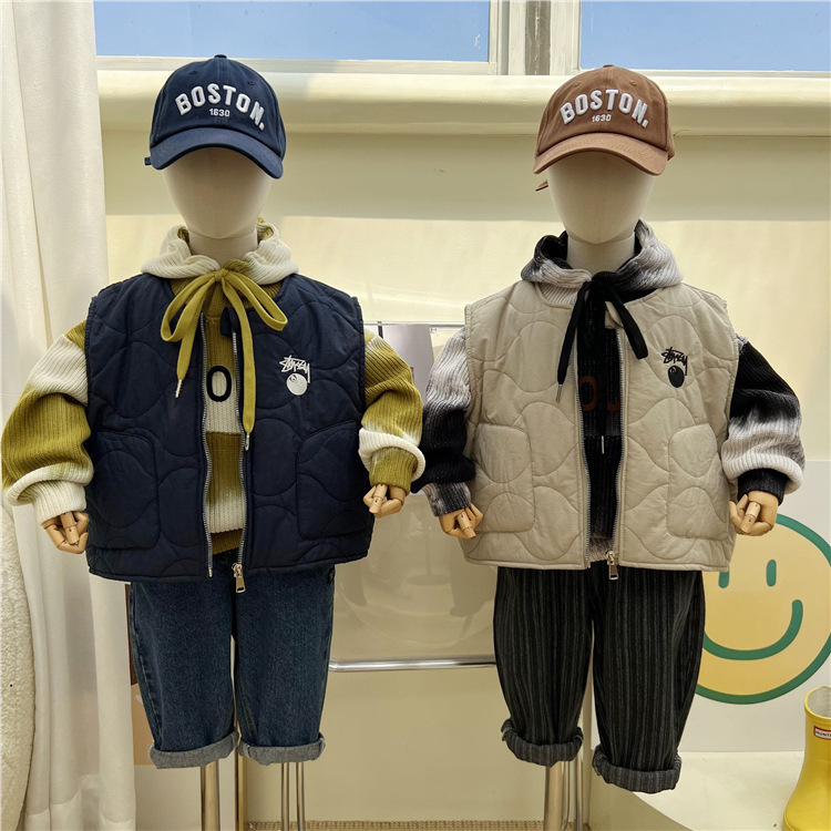 한국 스타일 아동복 2022 늦은 가을 어린이 면 조끼 남아 여아 작업복 바람 얇은 면 조끼 따뜻한 양복 조끼 유행