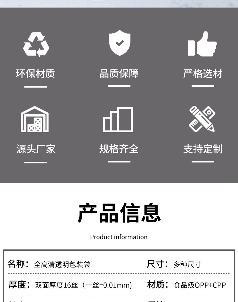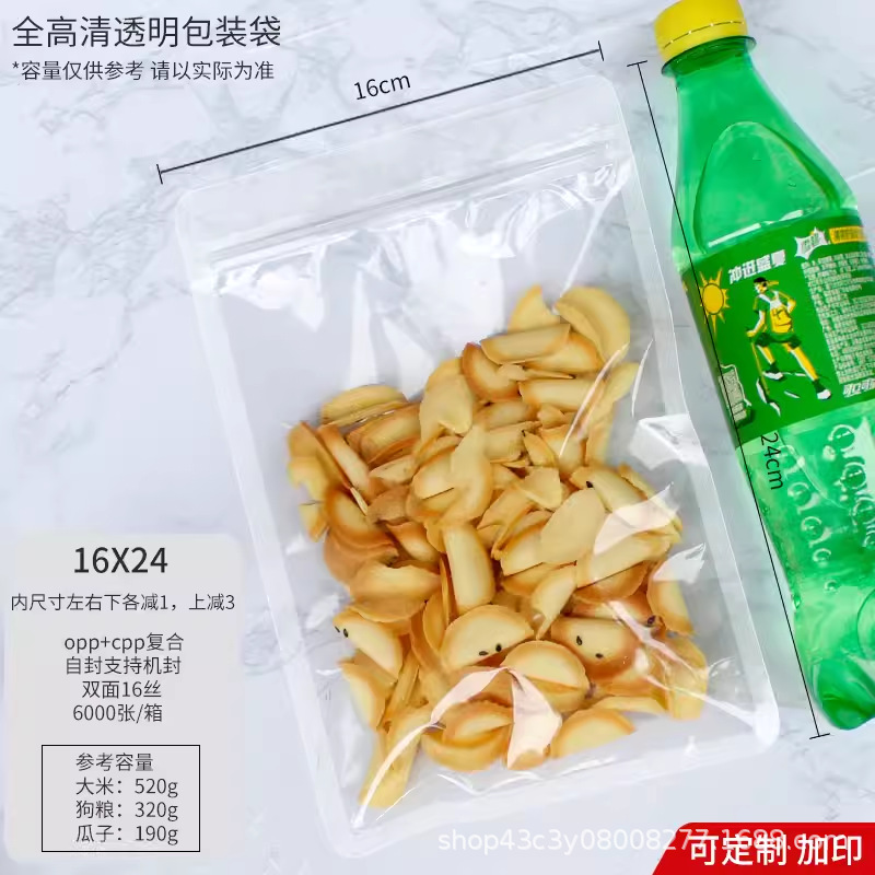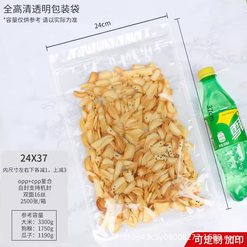 • 24x37 고화질 투명 비스탠딩 두꺼운 16 실크, 식품 등급 CPP+OPP, 기본 품목